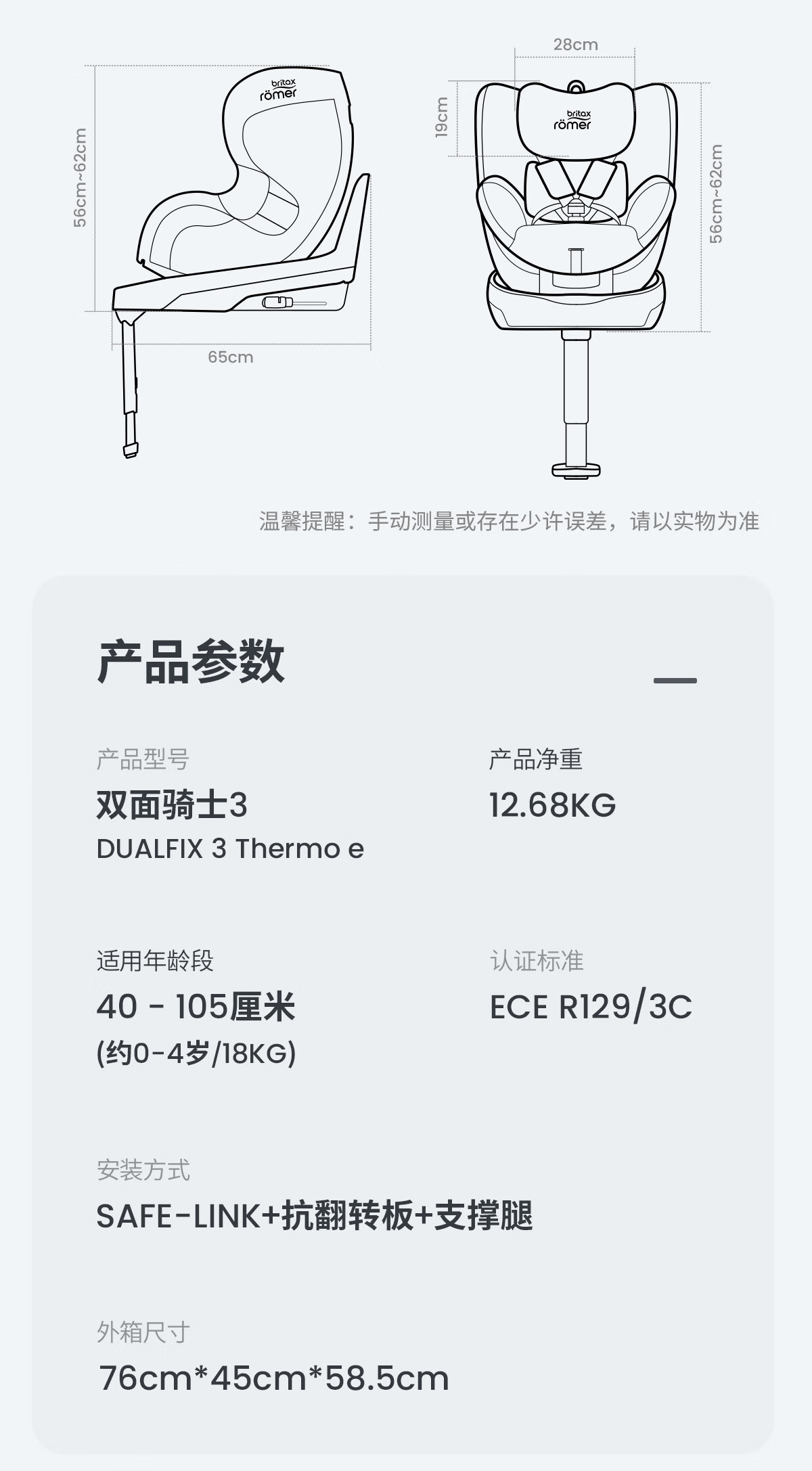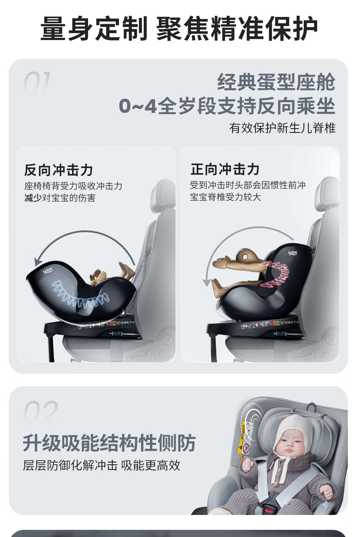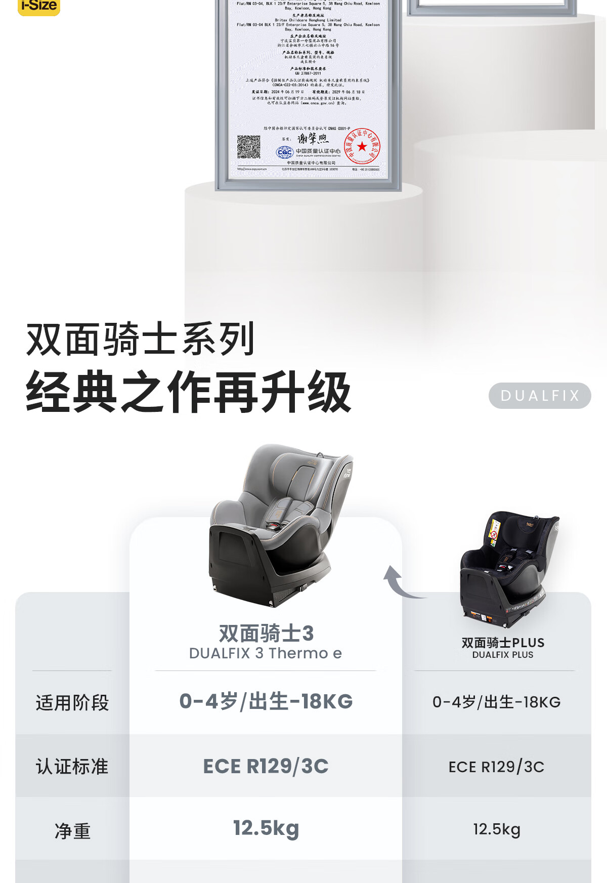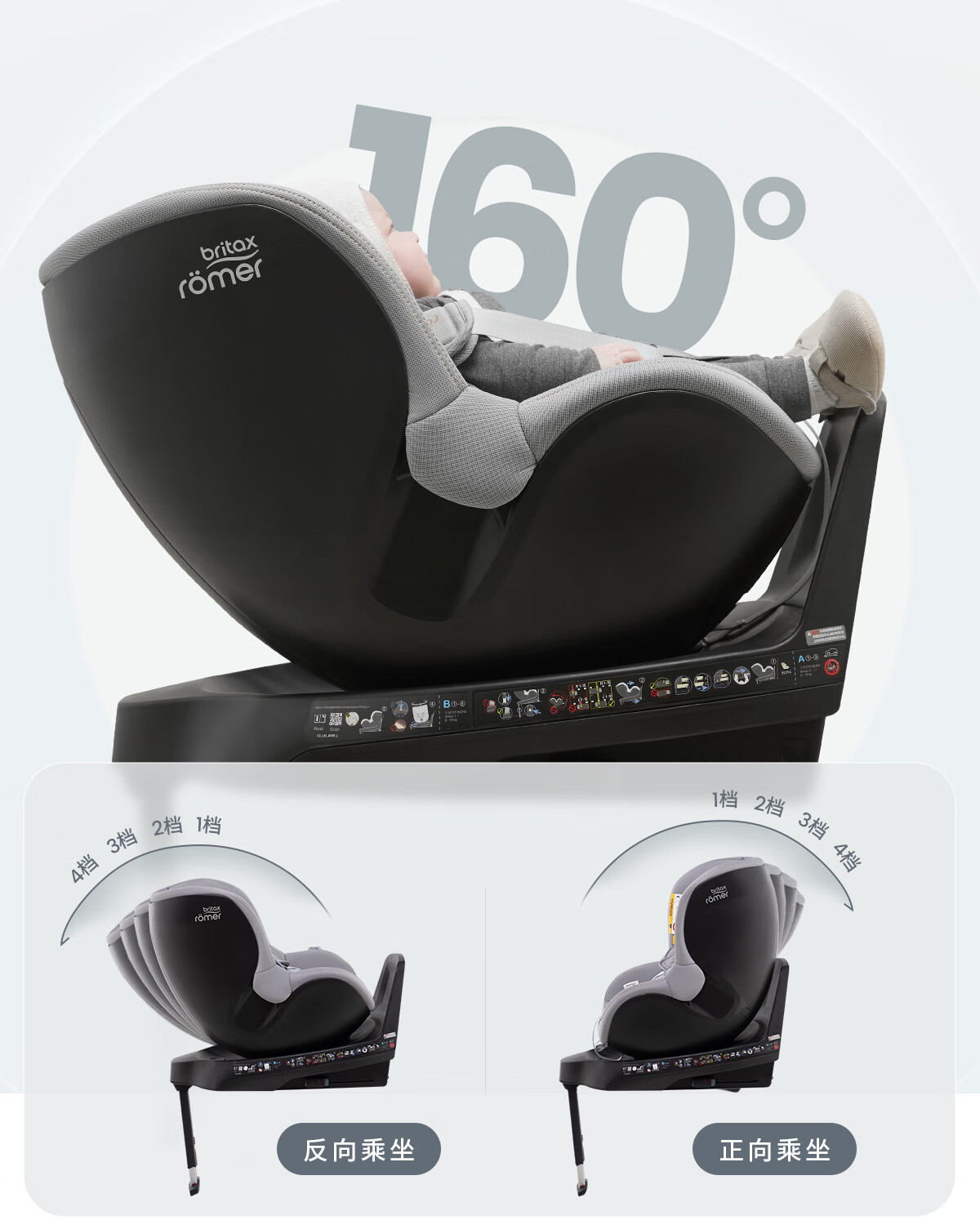 【6F】宝得适(BRITAX)儿童安全座椅0-4岁360度旋转i-Size车载坐椅双面骑士PLUS 【推荐】精致蓝