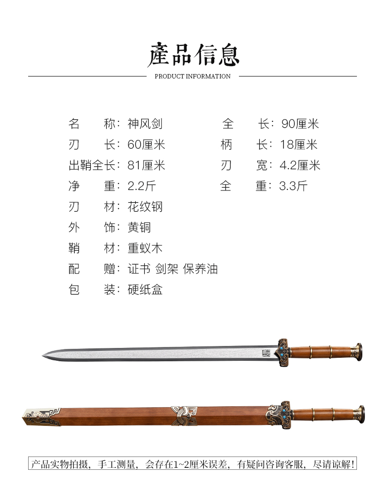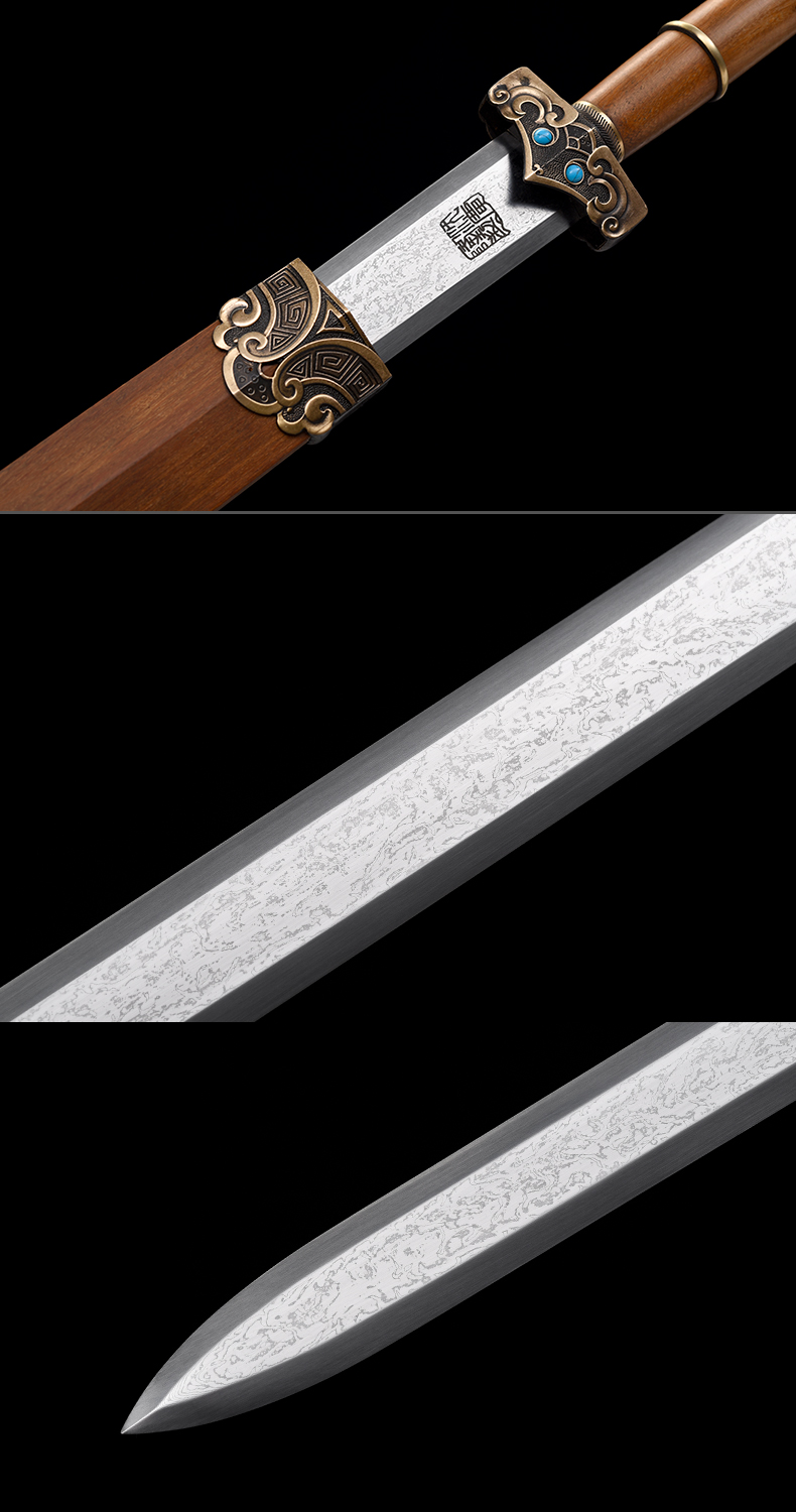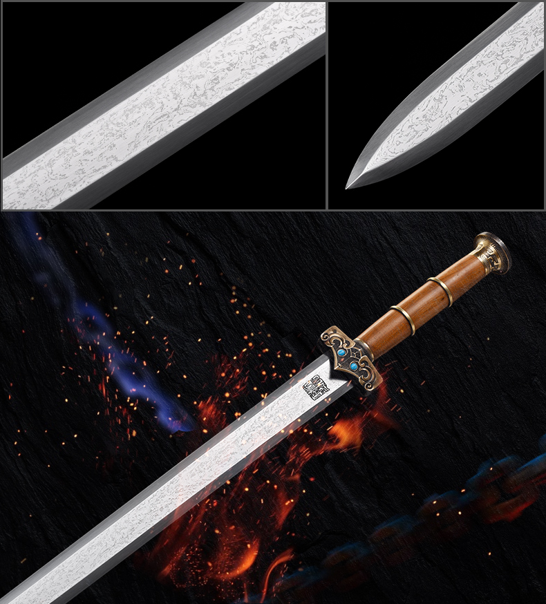 神风剑 汉剑唐剑 花纹钢 硬刀剑一体 龙泉沈广隆传统宝剑 未开刃