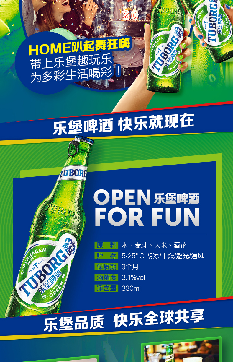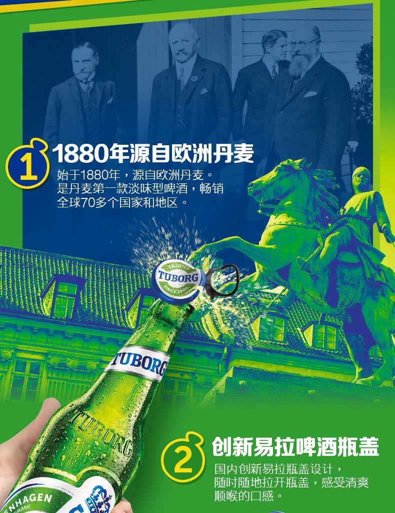 Tuborg/乐堡啤酒 嘉士伯啤酒易拉环盖瓶装495ml/瓶