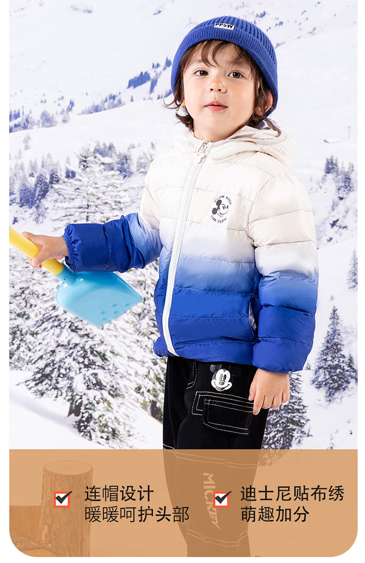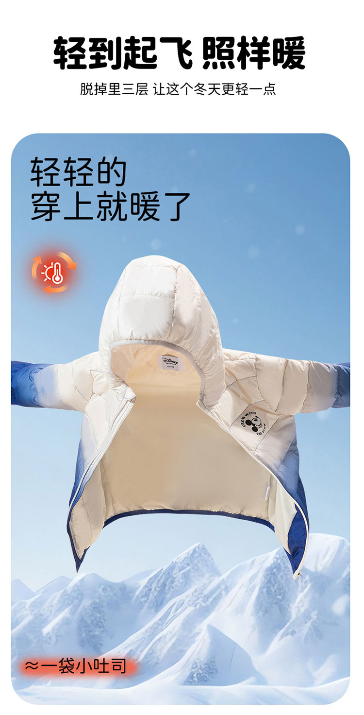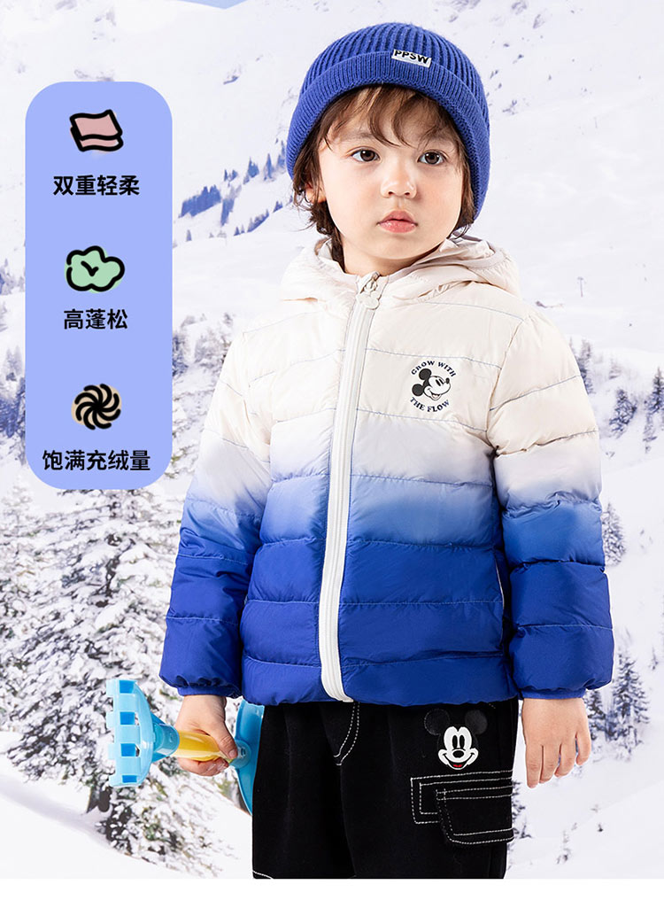 迪士尼【轻暖羽绒】24秋冬新款男童轻薄冬羽绒服防风保暖撞色羽绒外套ZD4DS006