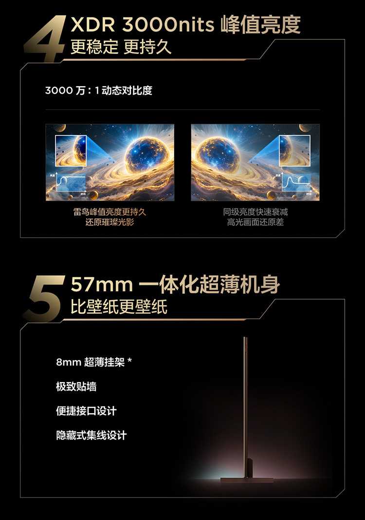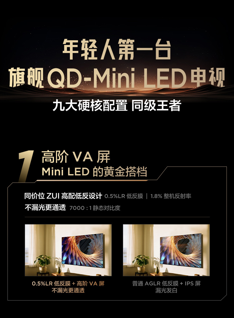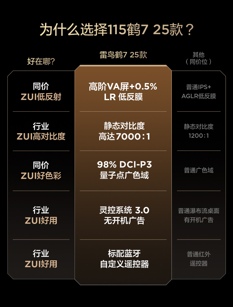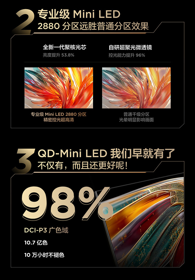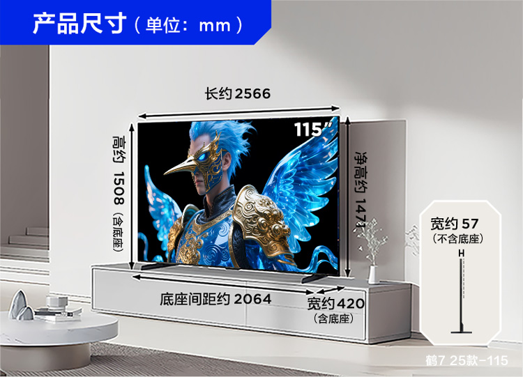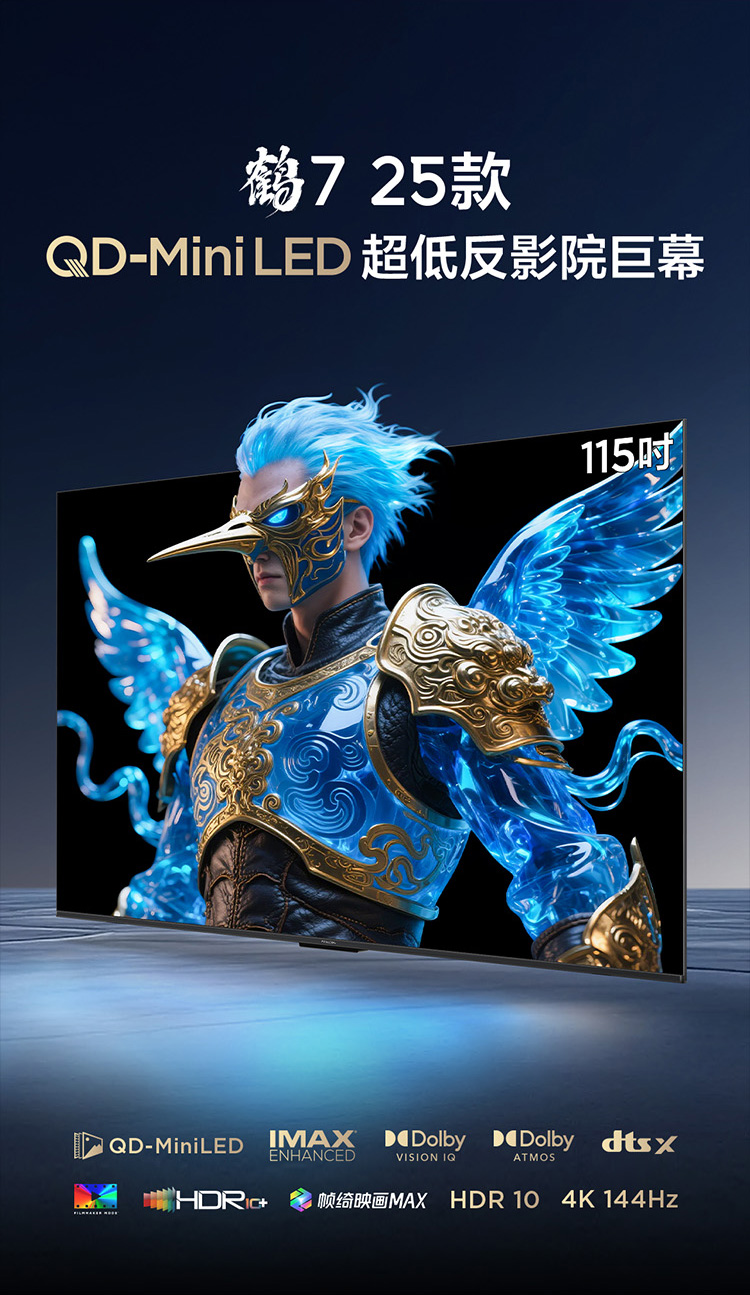 【FFALCON雷鸟】鹤7 25款115英寸 0.5%LR低反膜 QD-MiniLED HVA屏TSR AI画质芯片 电视巨幕115R695C