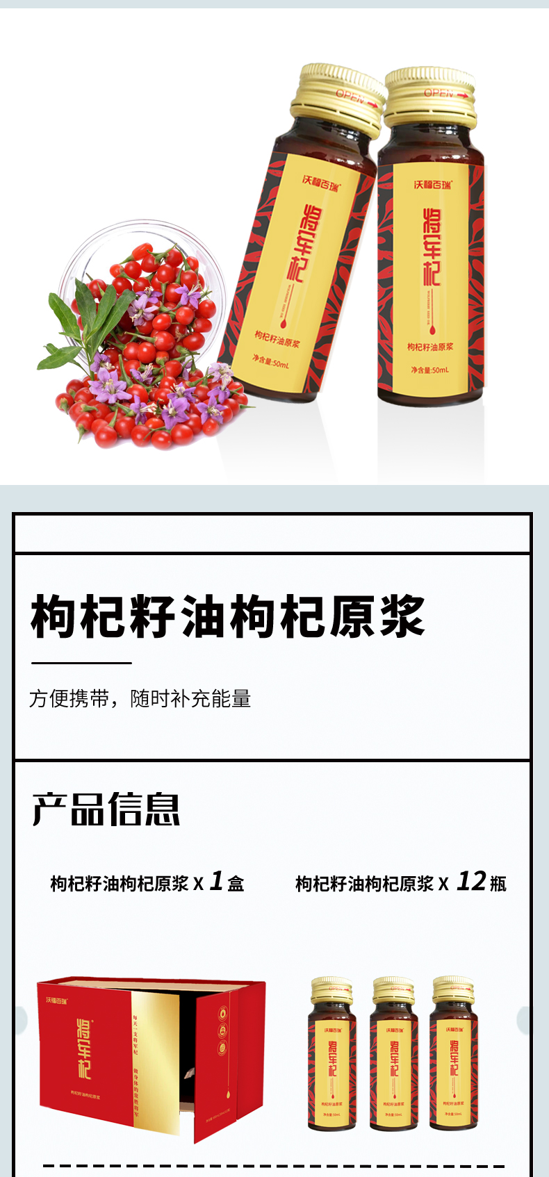 沃福百瑞 将军杞枸杞籽油枸杞原浆 50ml*12瓶