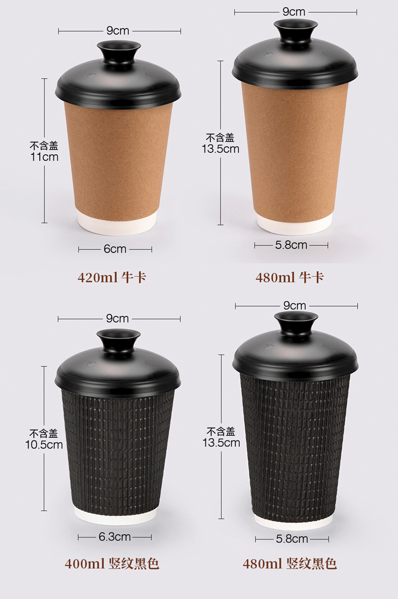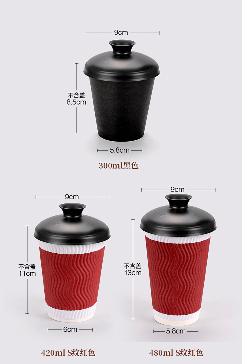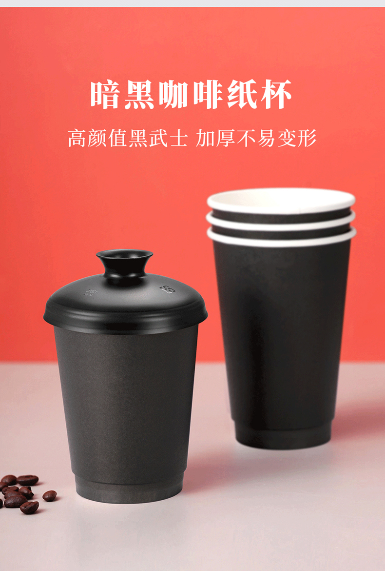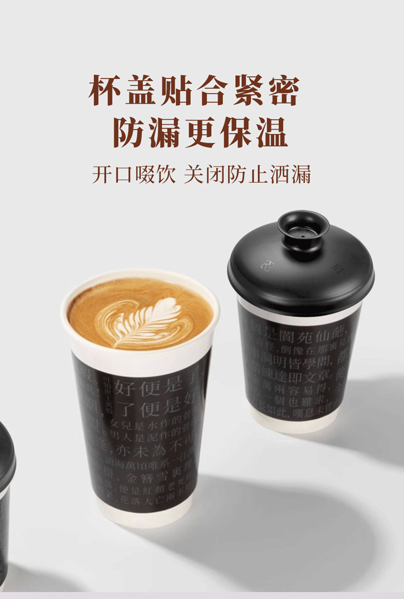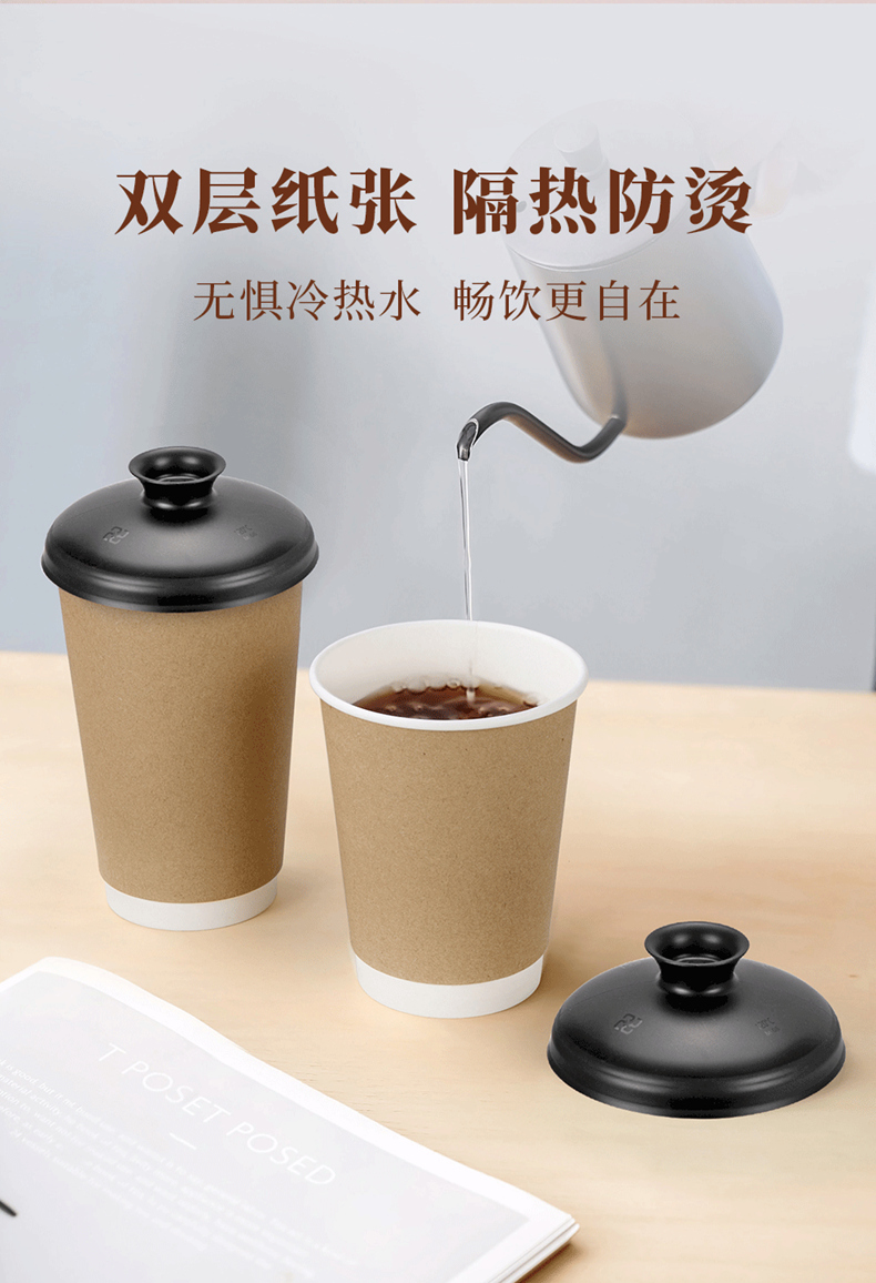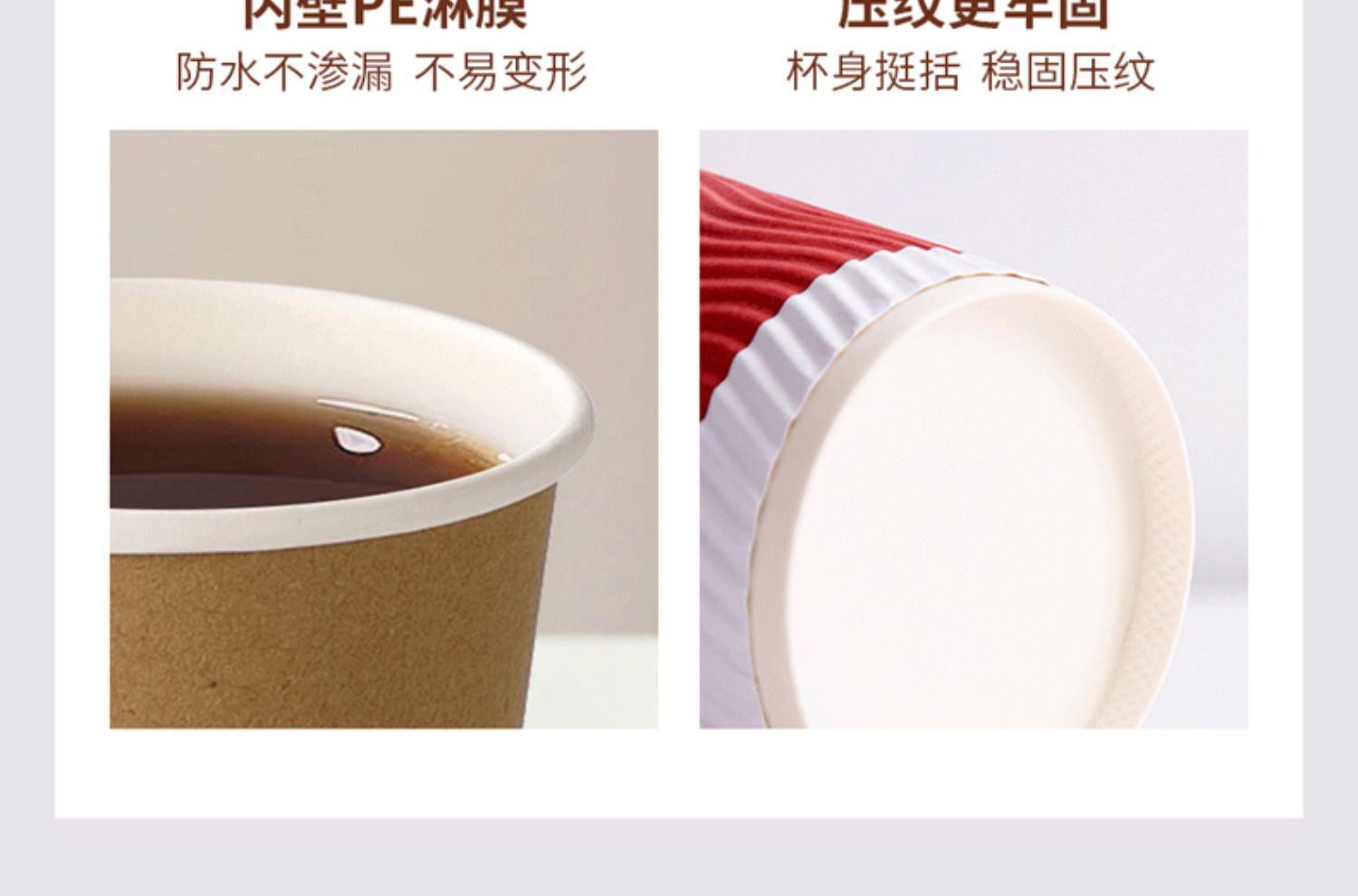 喇叭花咖啡纸杯一次性新中式双层瓦楞加厚鲜奶茶外卖杯子带茶杯盖