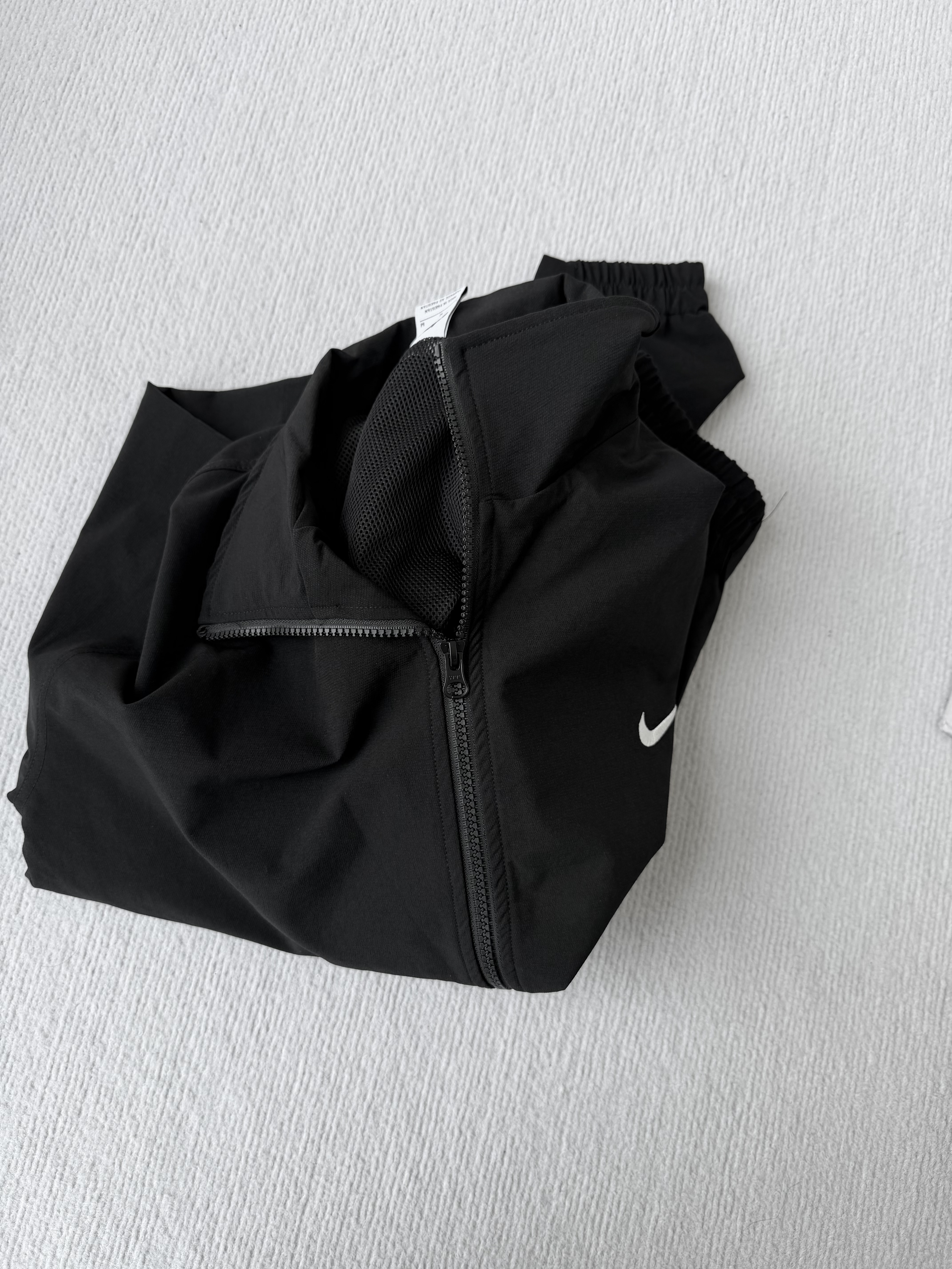• 设计:简约小勾刺绣Logo,隐藏式拉链,两侧插袋,松紧收口