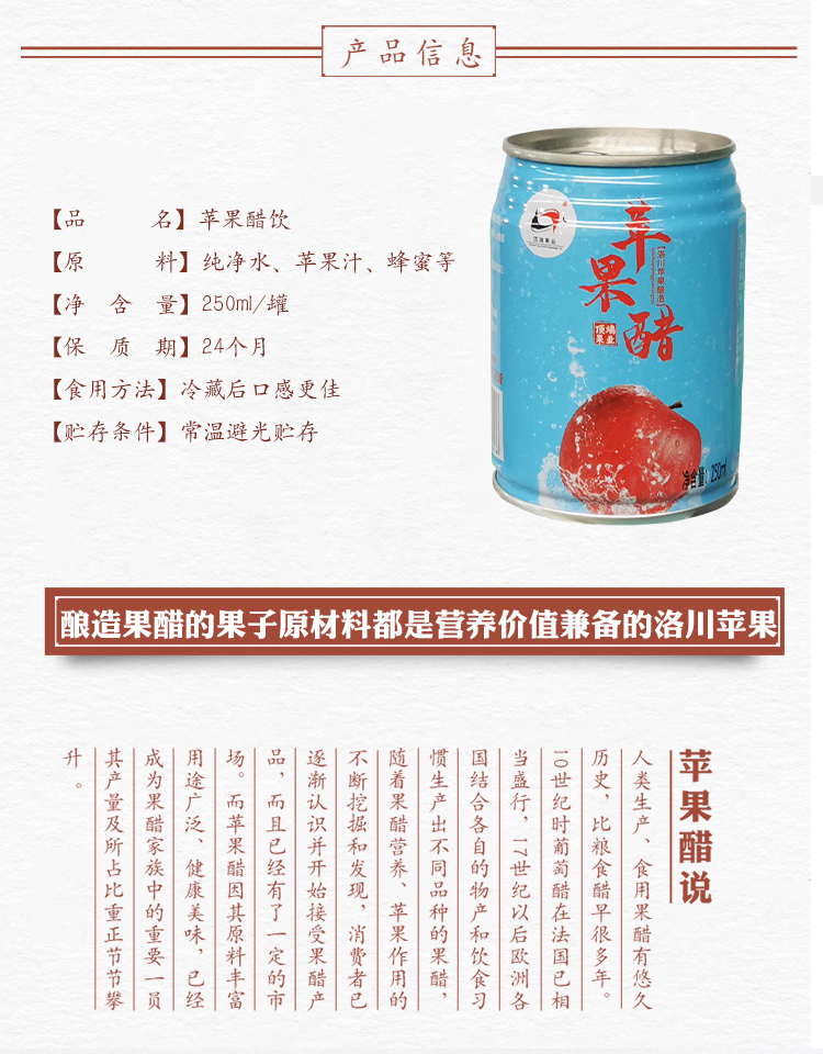 【苹果醋饮】顶端果业洛川苹果醋饮礼盒装8罐*250ml