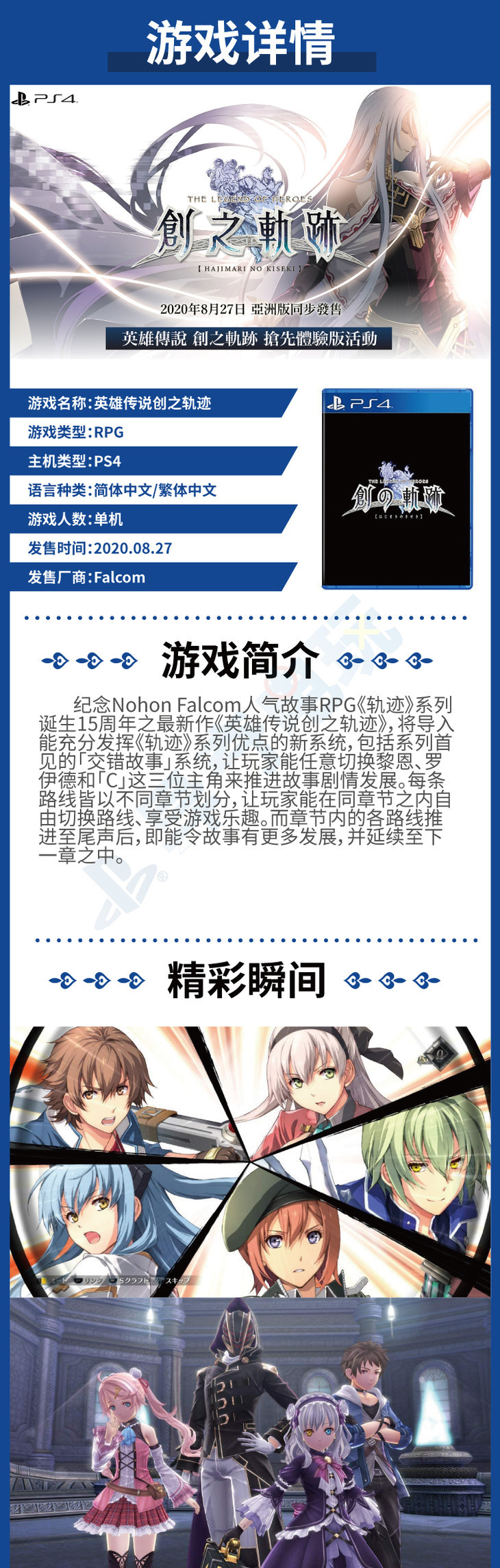 【畅玩卡可租】二手PS4游戏 创之轨迹 中文版
