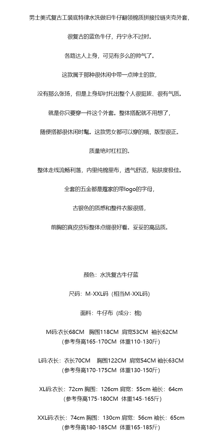 【maxwm1】男子复古工装水洗做旧牛仔翻领夹克/外套!!