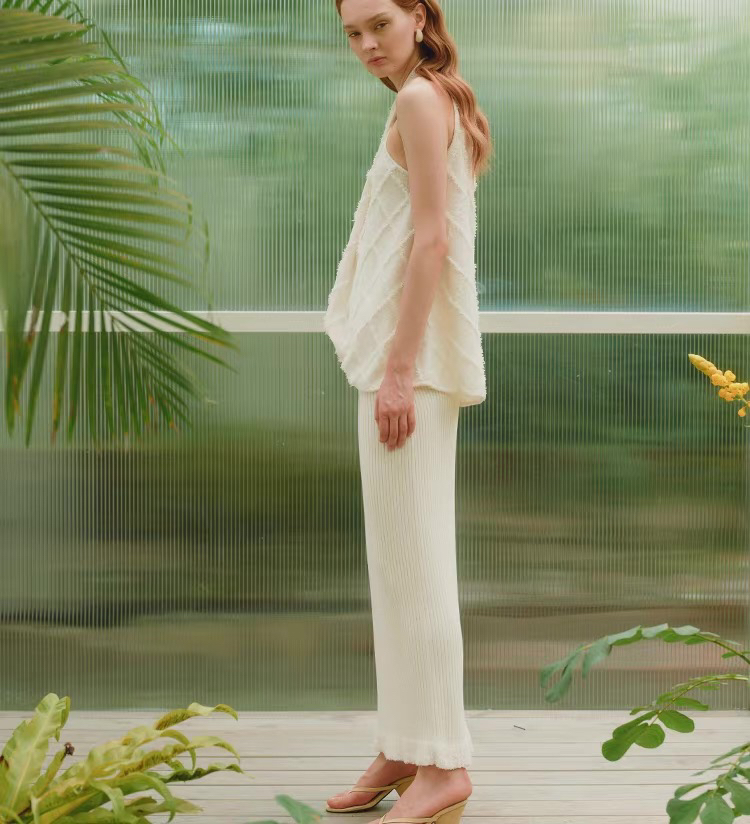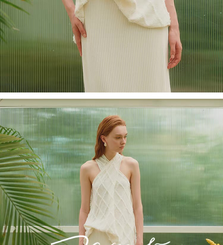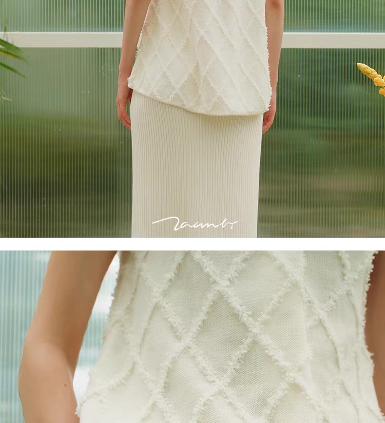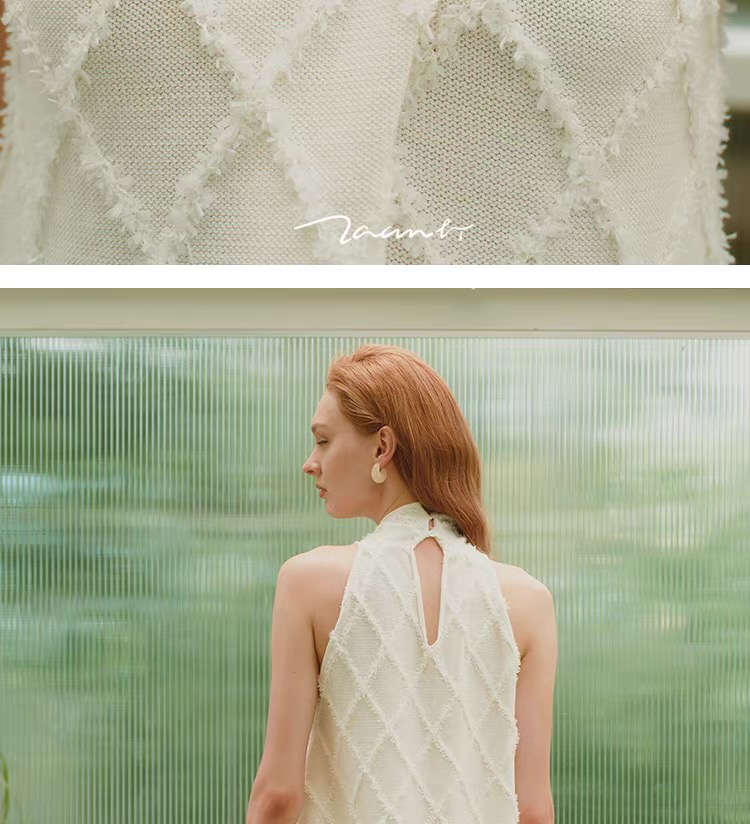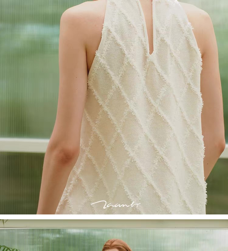 ZAANLI|ZNSS25013 蝴蝶纱菱格交叉挂脖针织背心 [ 白 ]