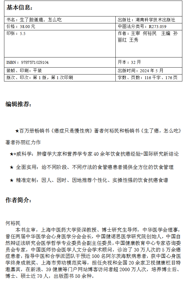 精准饮食抗癌智慧:生了胆道癌,怎么吃 畅销书著者何裕民孙丽红 *新力作 饮食防控科学