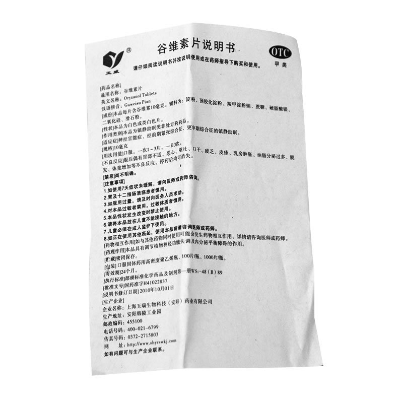 玉威 谷维素片 10mg*100片/瓶经前期紧张更年期综合症镇静助眠