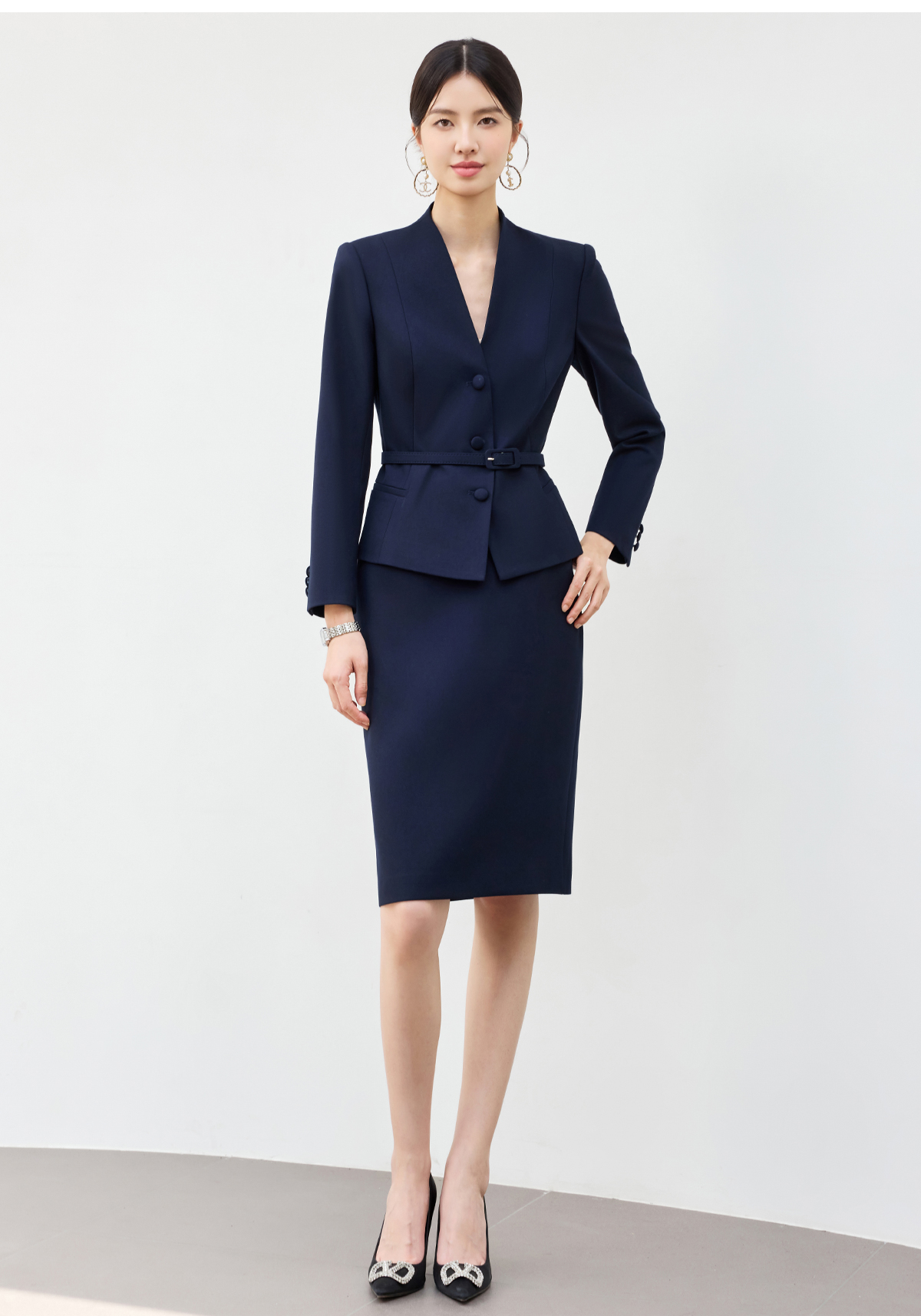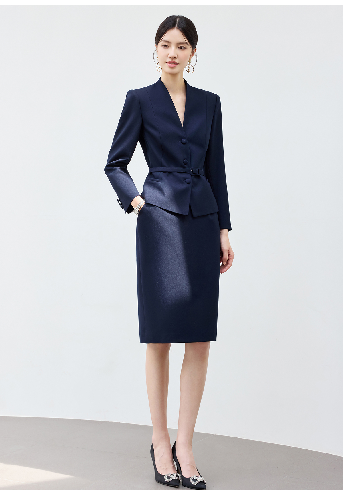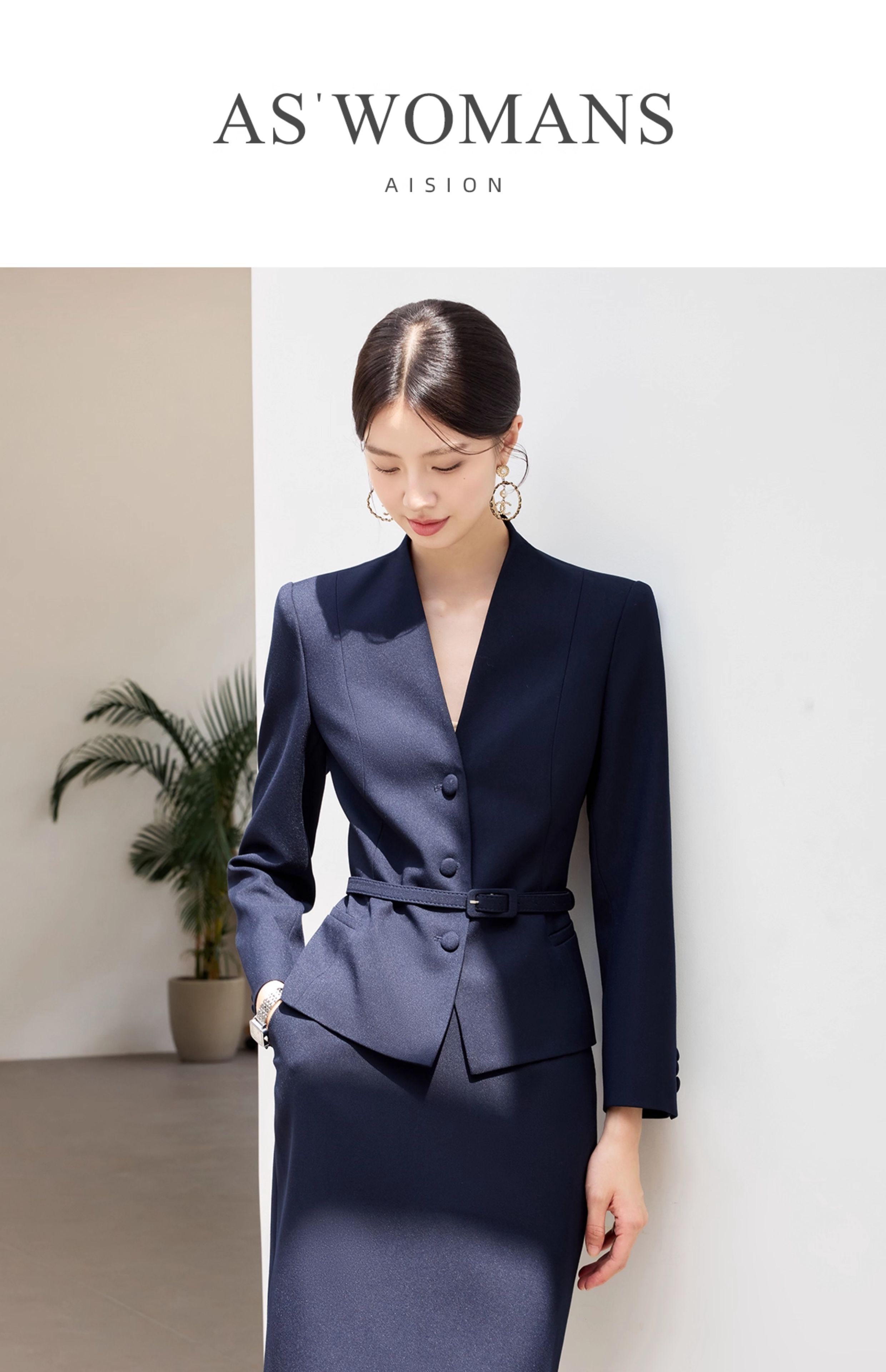 艾尚臣藏青色气质轻熟风职业西装套裙珠宝店酒店职收腰显瘦工作服