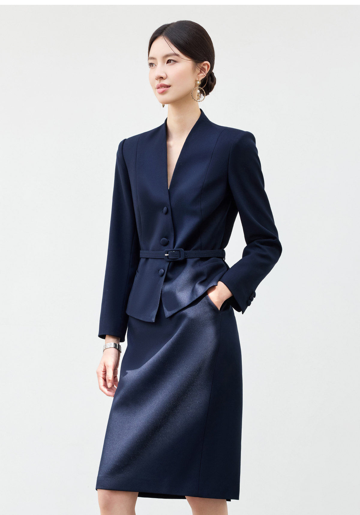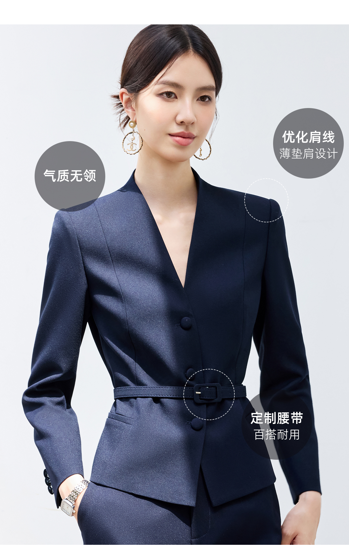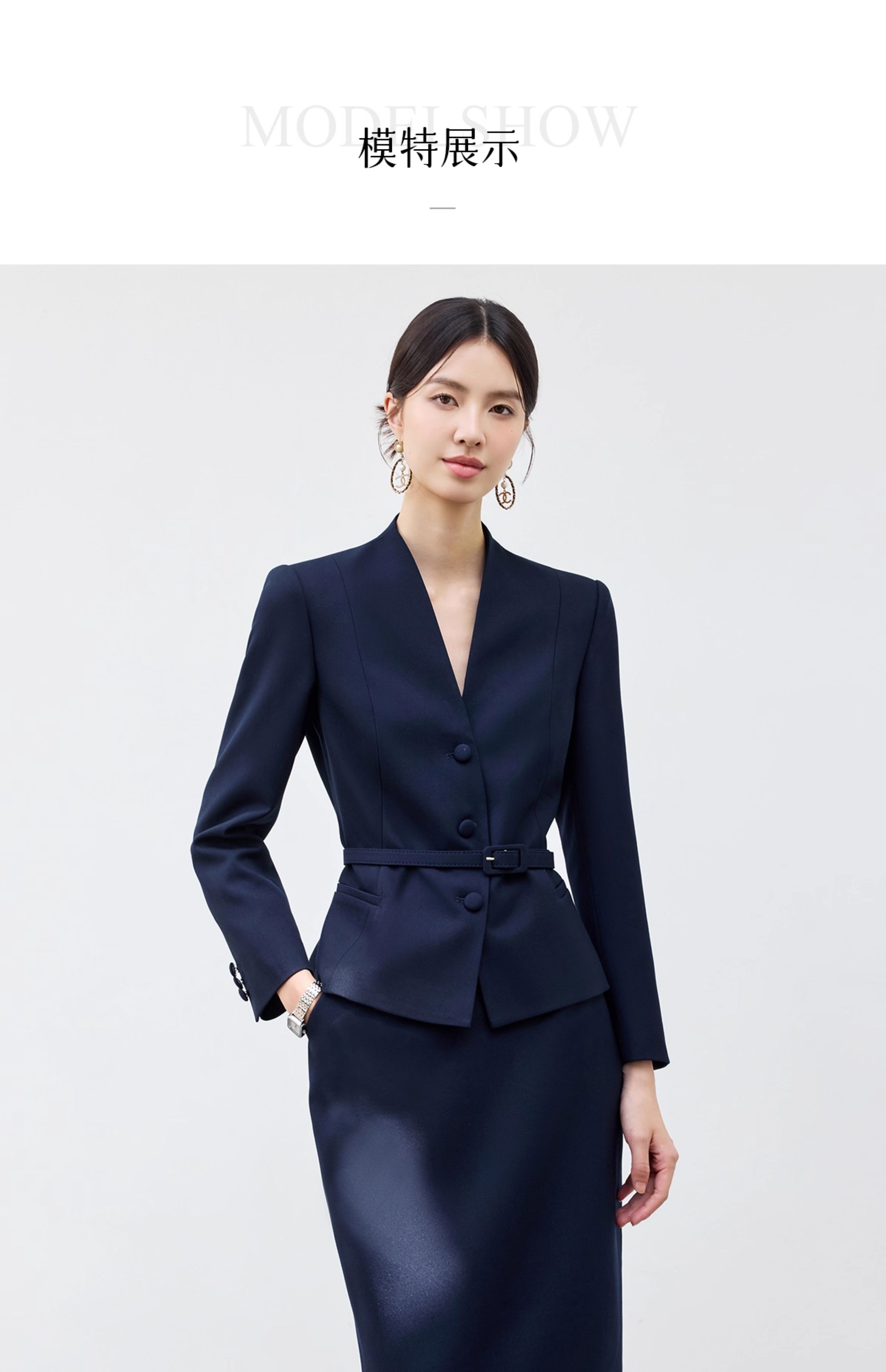 艾尚臣藏青色气质轻熟风职业西装套裙珠宝店酒店职收腰显瘦工作服