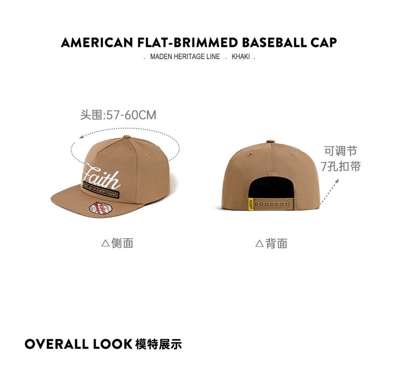 马登美式高街平檐棒球帽嘻哈风7扣带可调节便帽小众时尚遮阳帽夏