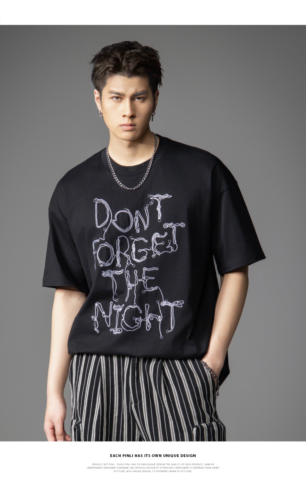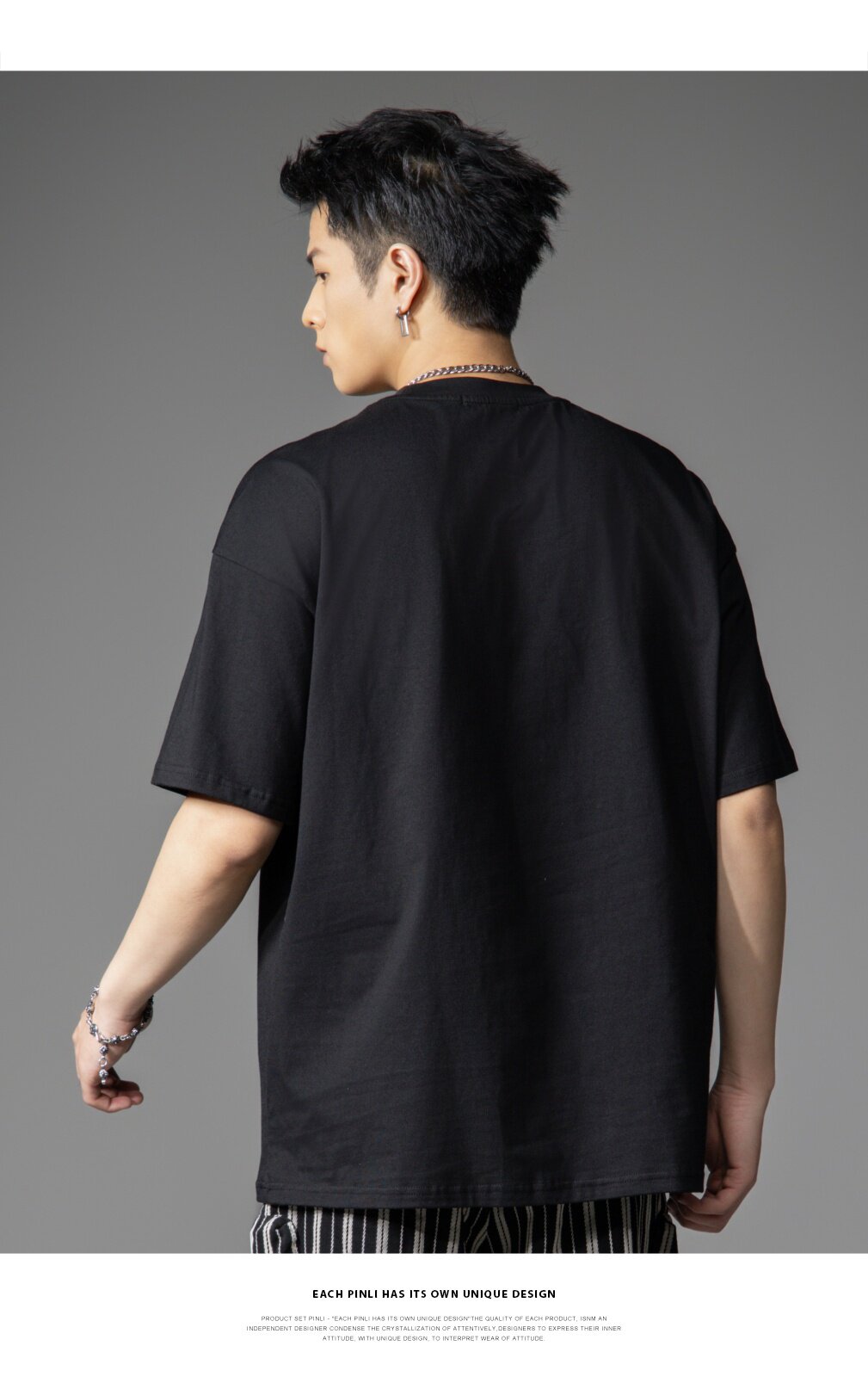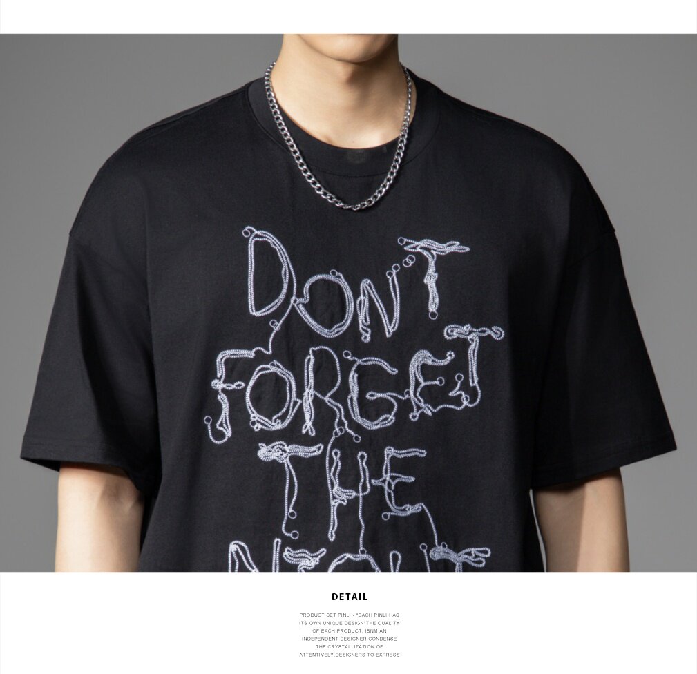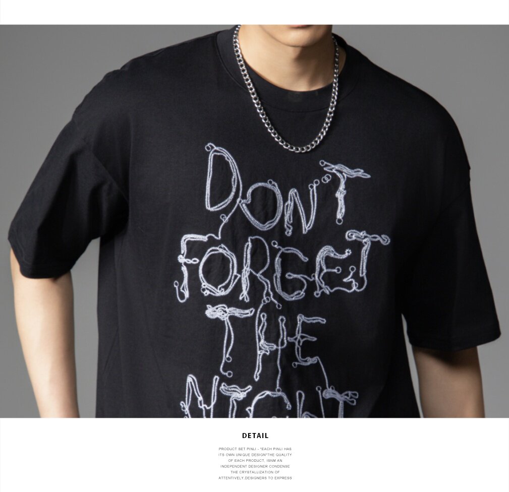 PINLI品立2026春季新款男士潮牌圆领落肩袖字母绣花短袖T恤上衣潮B262111010