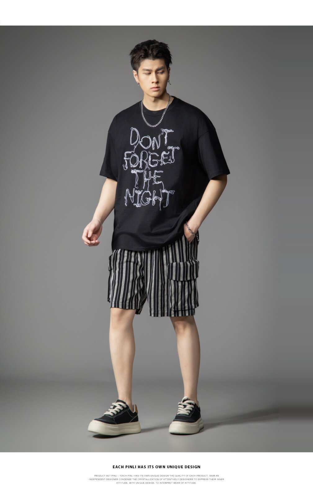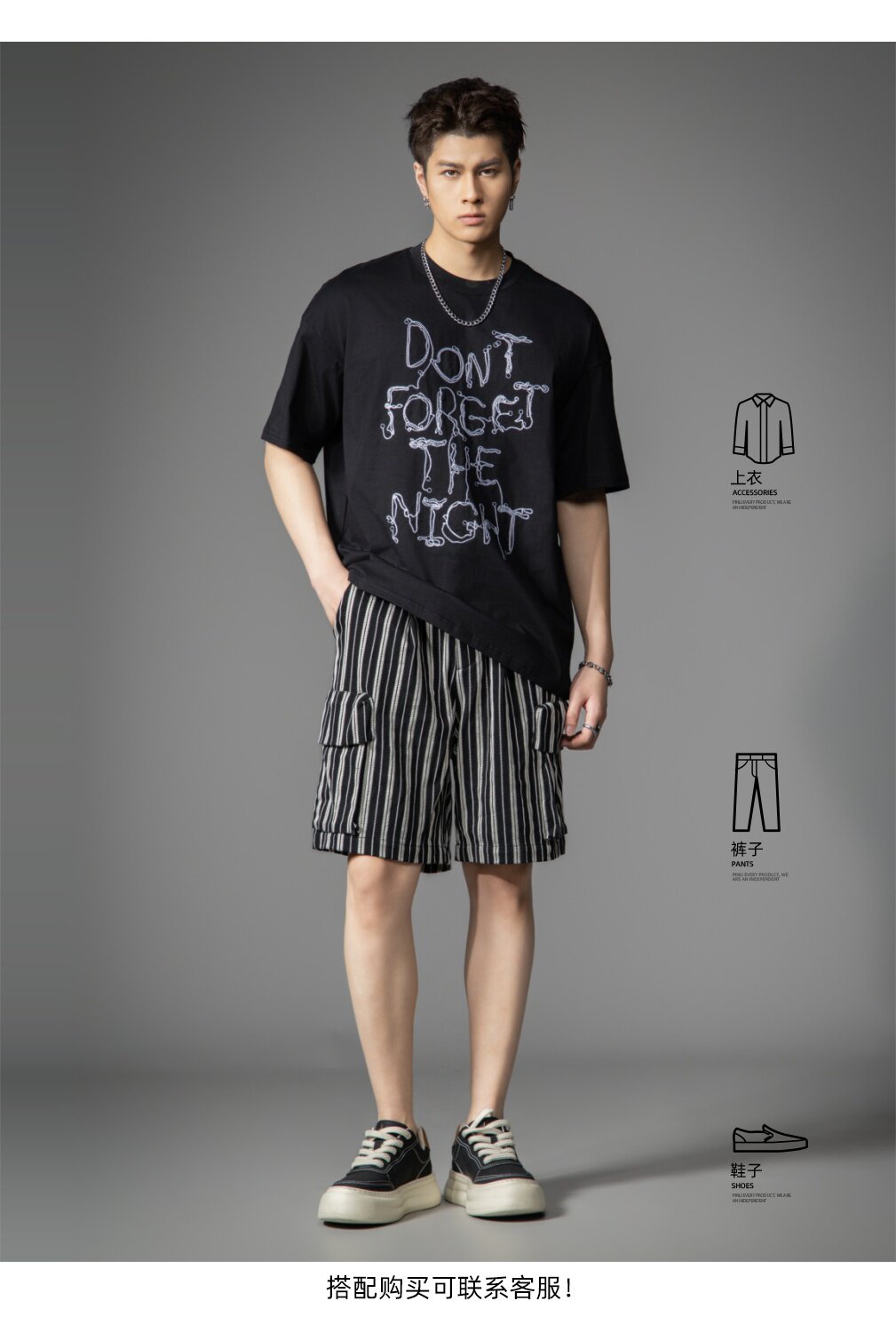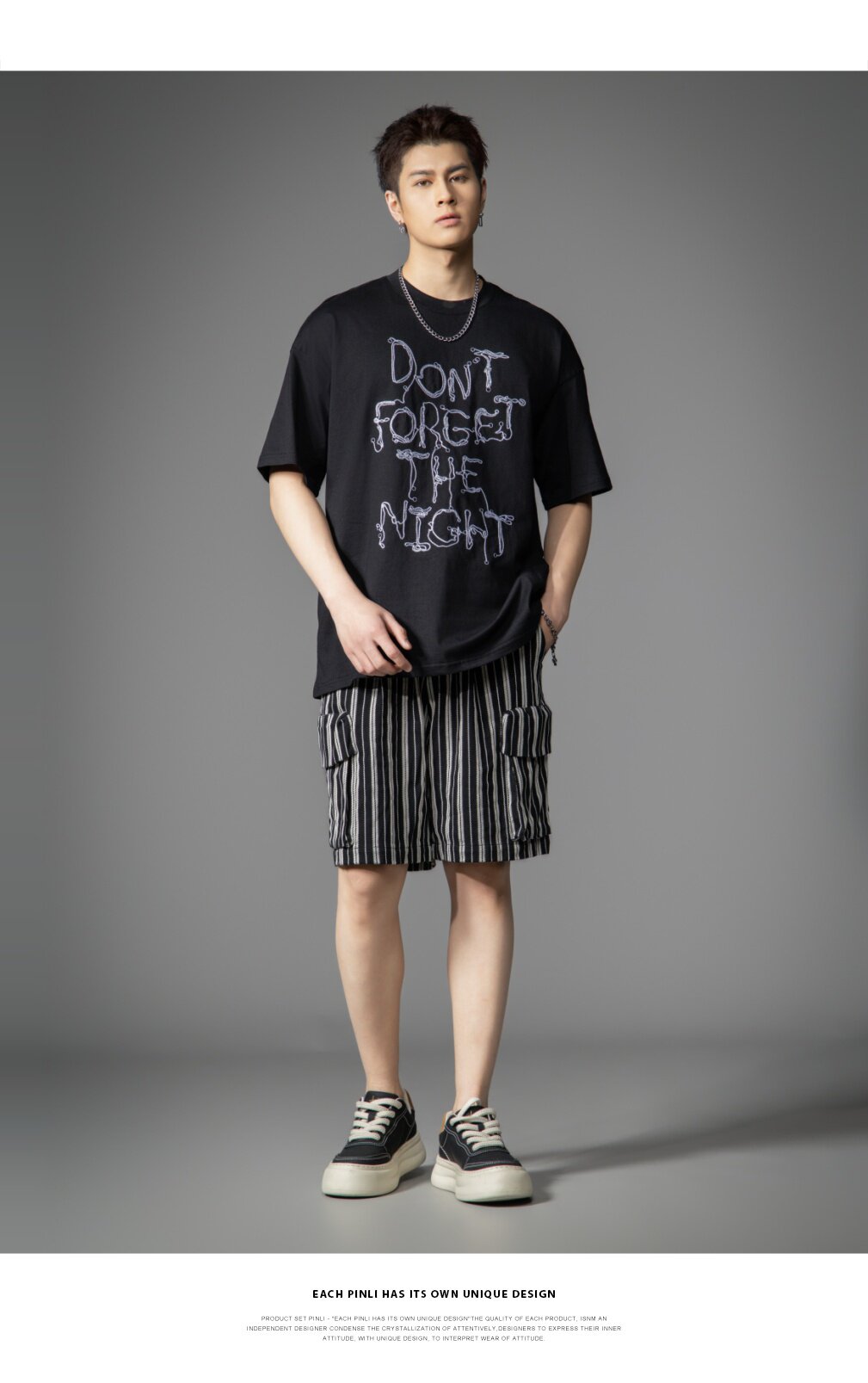PINLI品立2026春季新款男士潮牌圆领落肩袖字母绣花短袖T恤上衣潮B262111010