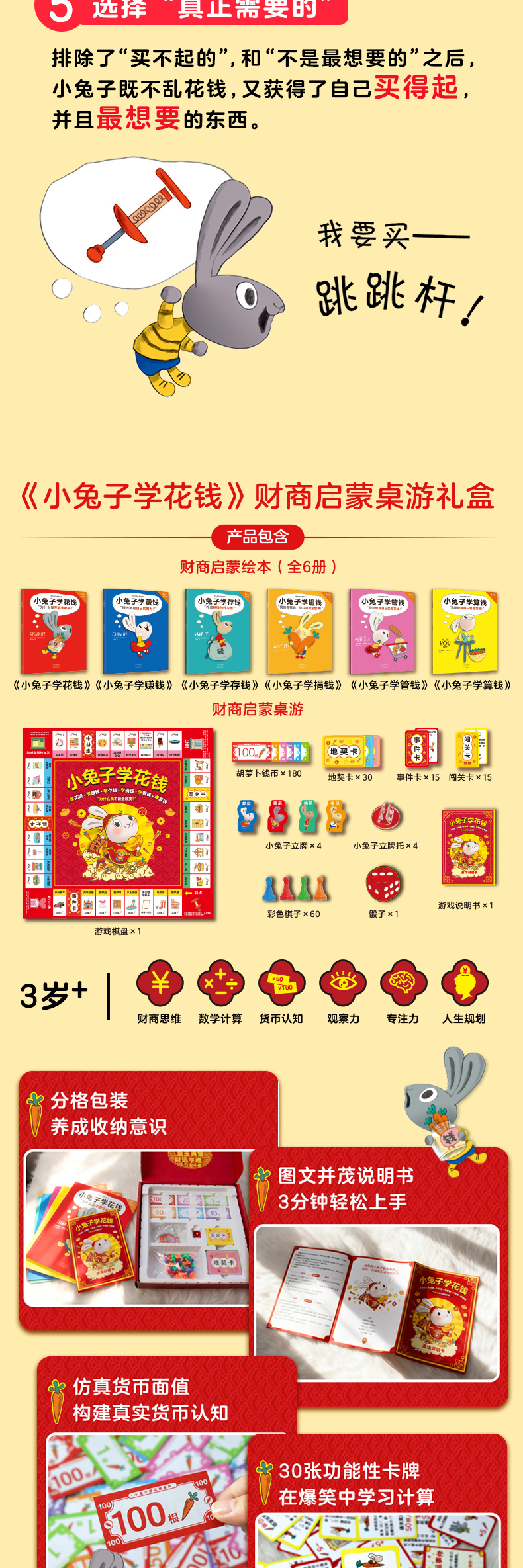 【3-7岁】给孩子的财商启蒙:小兔子学花钱(全6册,财商桌游礼盒)