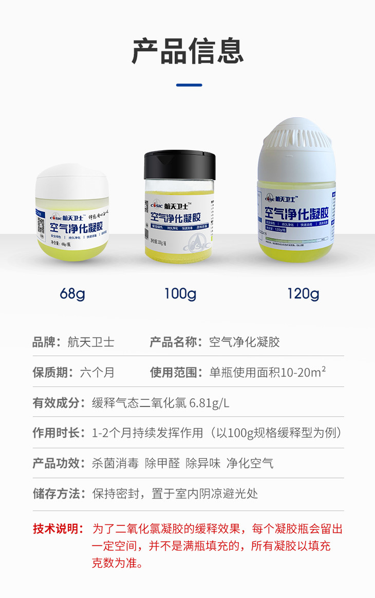 【除醛除味 安全消毒】航天卫士空气净化凝胶二氧化氯消毒清新剂 除甲醛异味凝胶