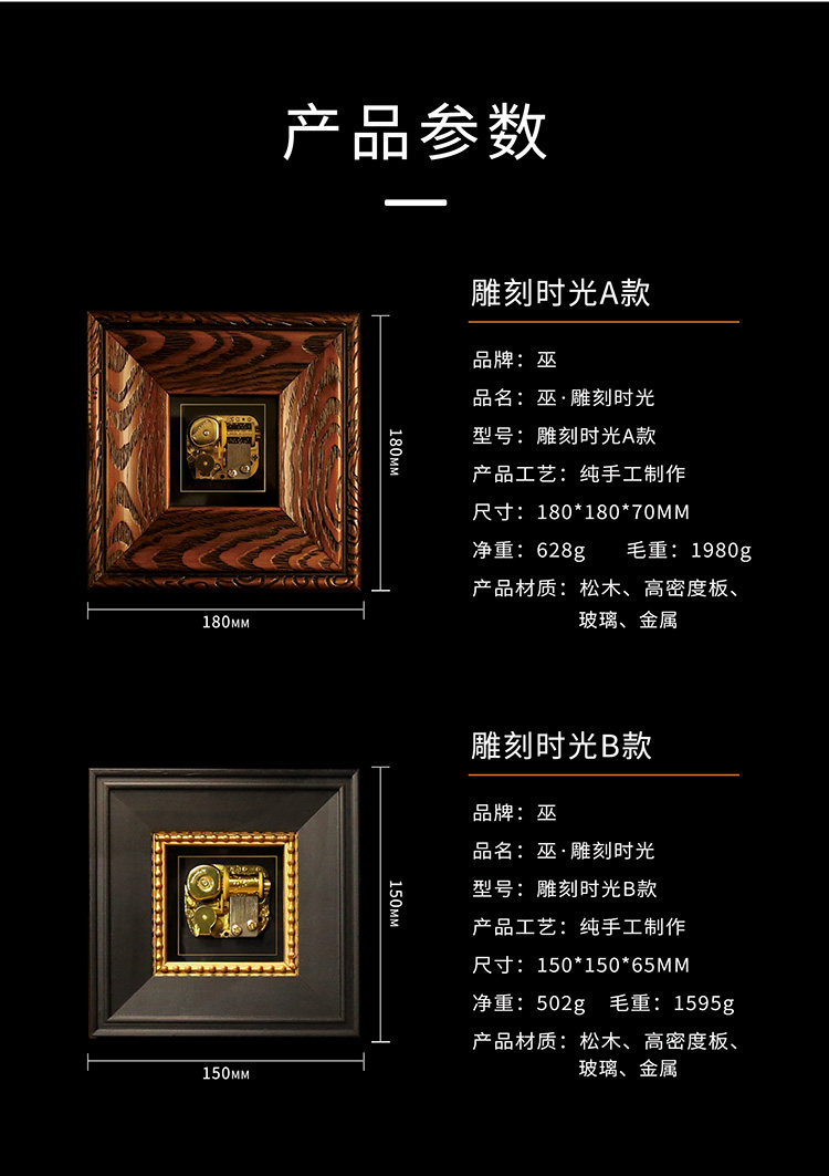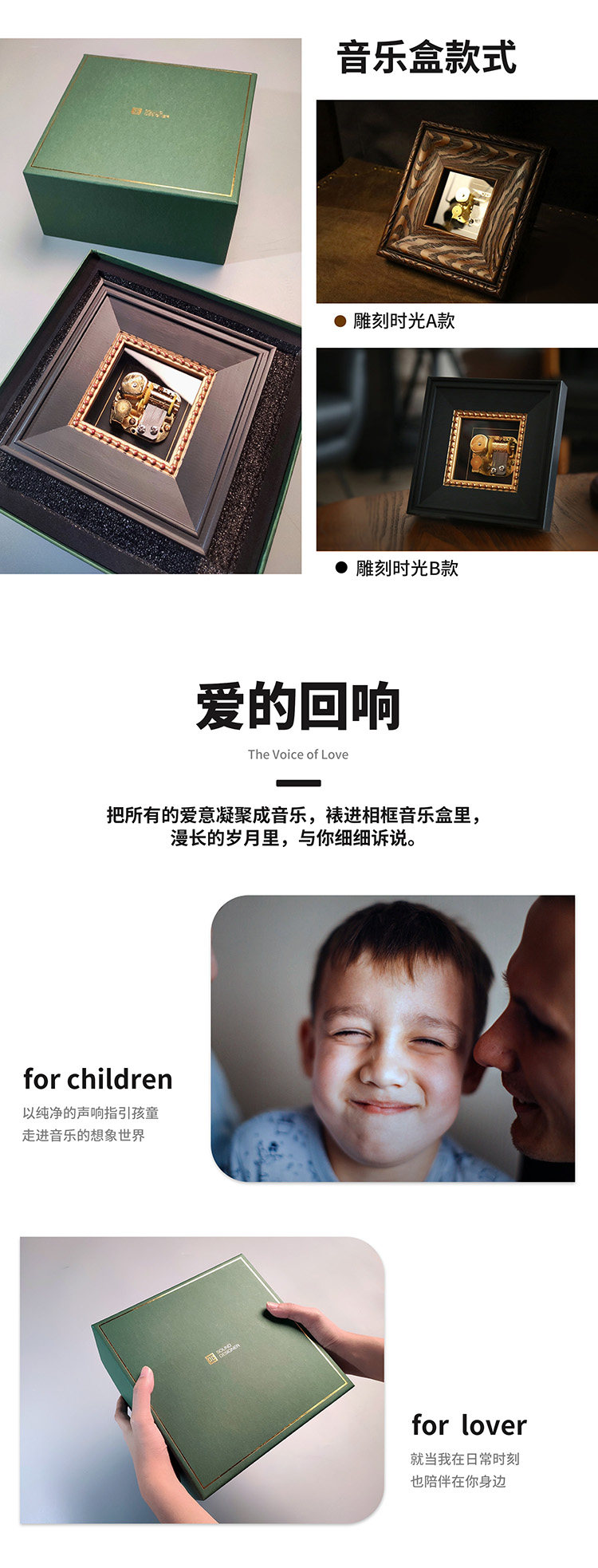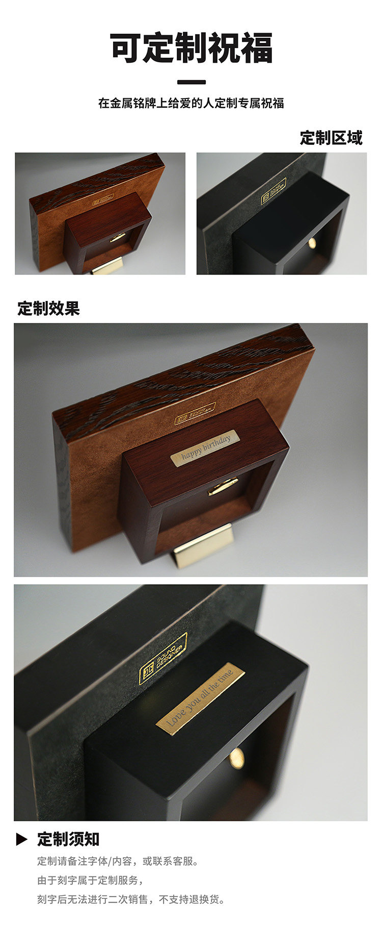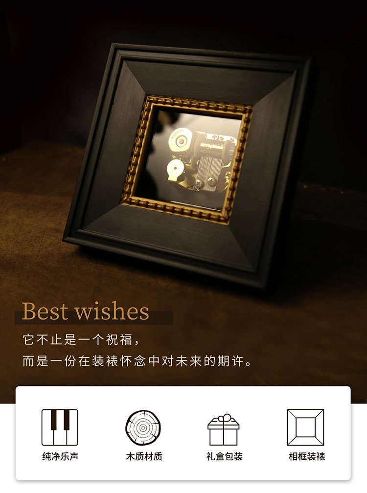 巫雕刻时光相框式音乐盒 木质八音盒结婚生日礼物送女友可定制