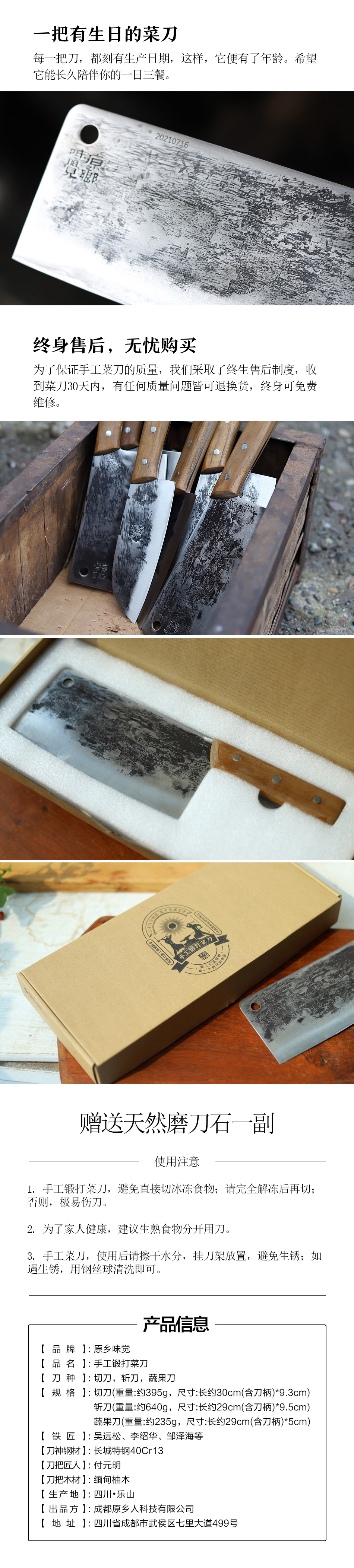 手工锻打菜刀 | 来自美食之都,中国乐山,全手工打造,坚韧锋利,终身售后。