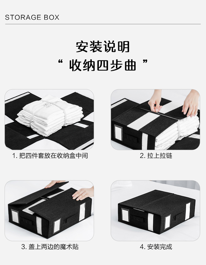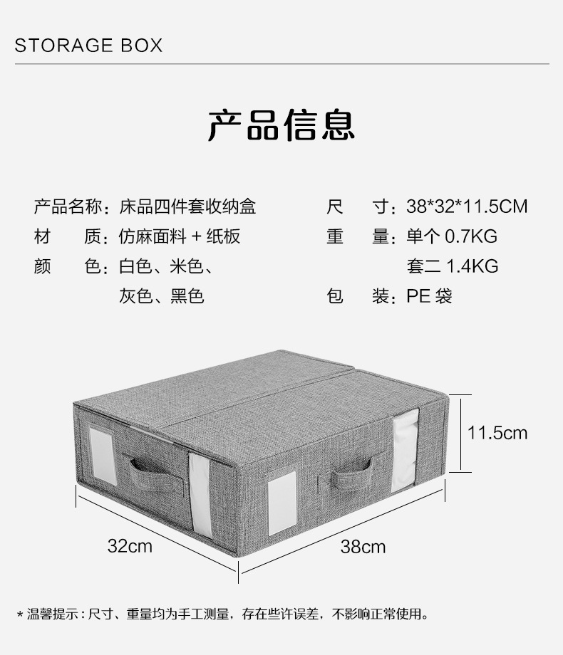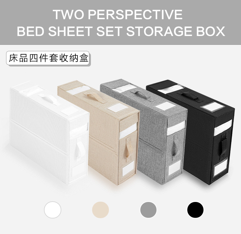 【四件套收纳盒!美观实用】床单套装收纳盒布艺,可视窗拉链折叠毛毯整理盒衣柜床品收纳,此盒集多功能收纳、易于识别于一身,拥有宽敞大容量让你尽情收纳