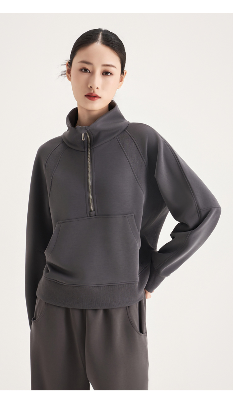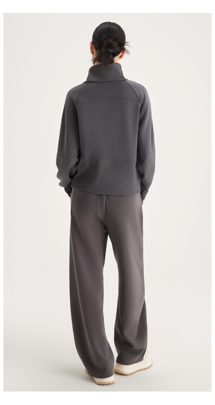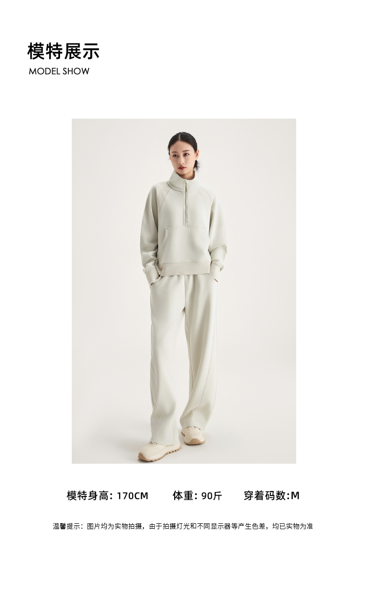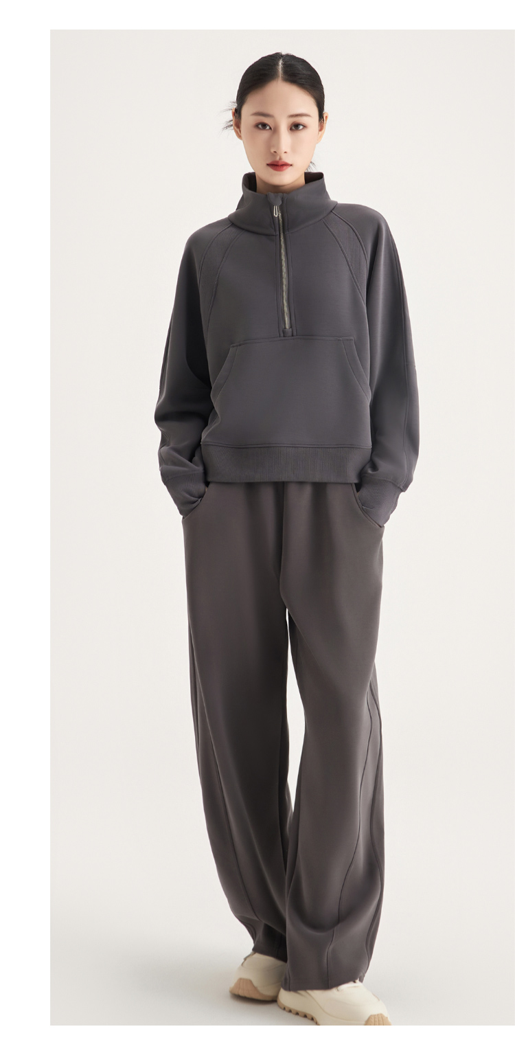 weyo女款百搭砂洗莫代尔空气层休闲弯刀长裤半拉链卫衣880074-880075