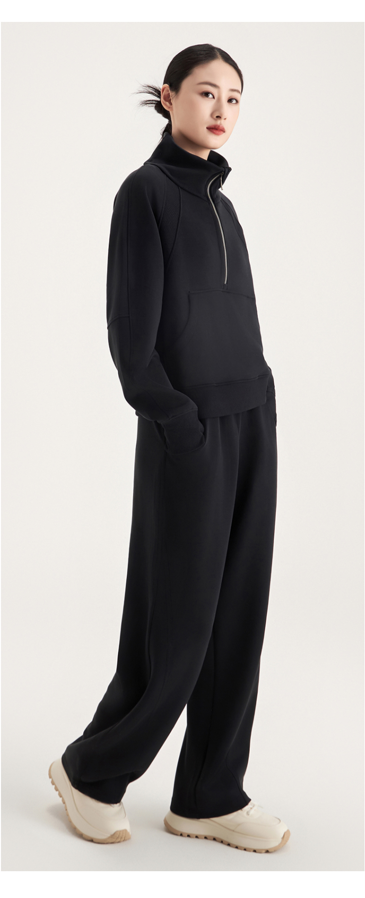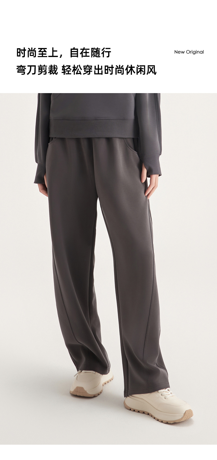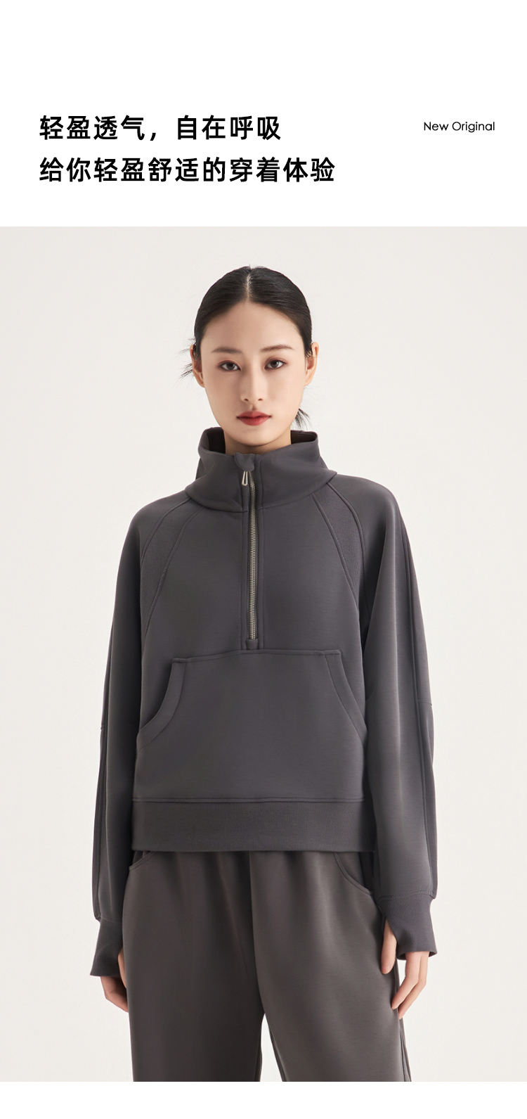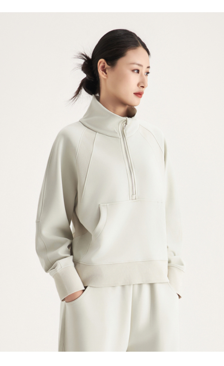 weyo女款百搭砂洗莫代尔空气层休闲弯刀长裤半拉链卫衣880074-880075