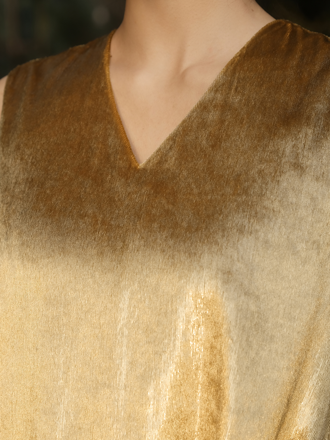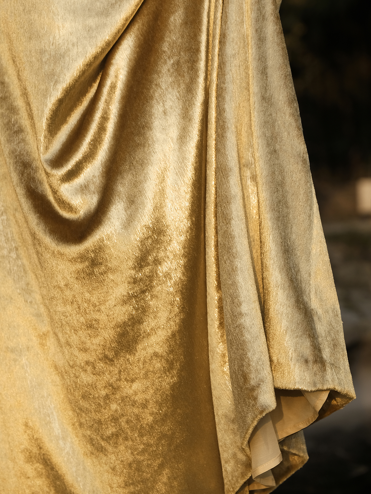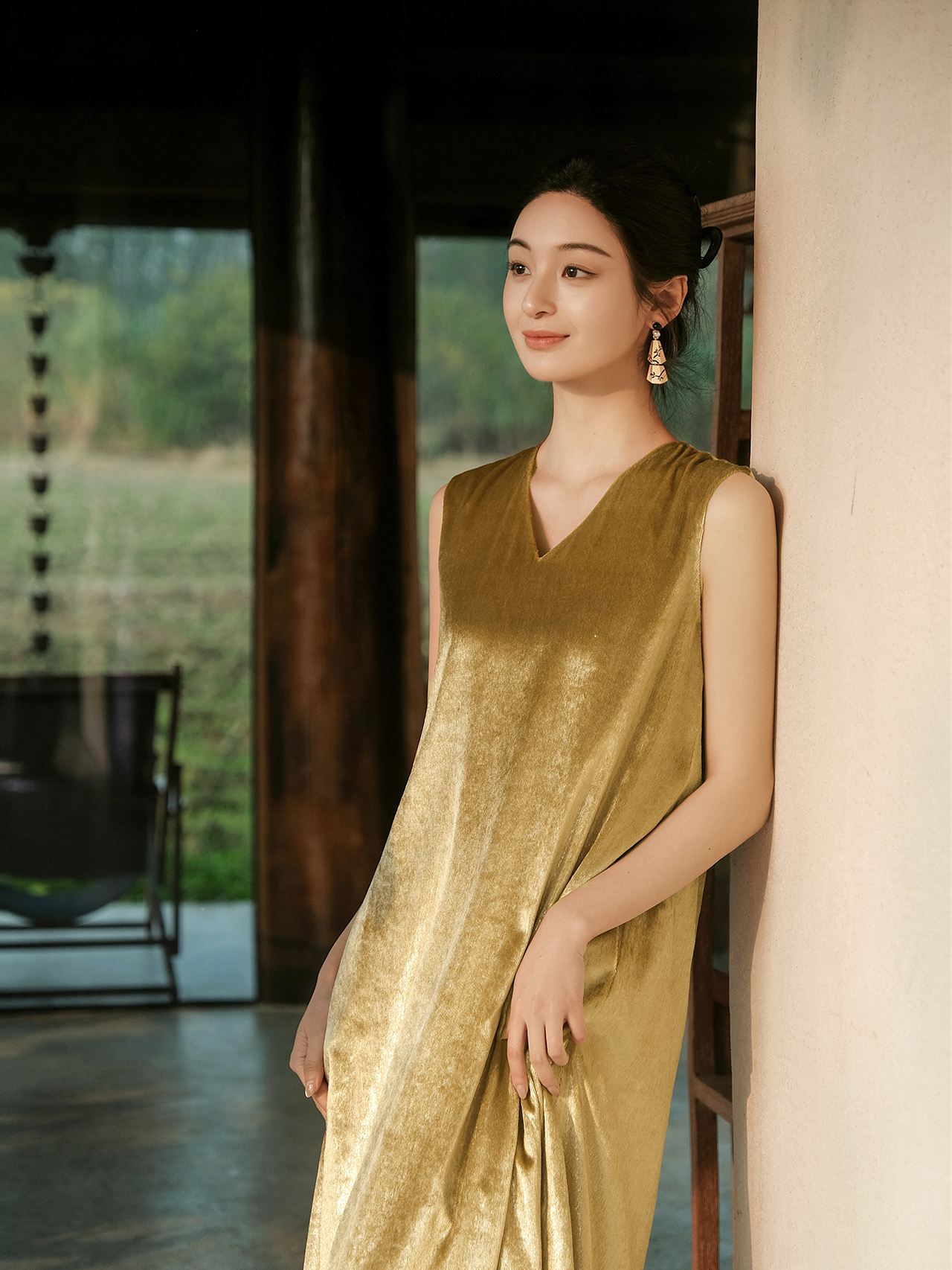 廷前观棠 |檀金-金色亮丝丝绒长裙