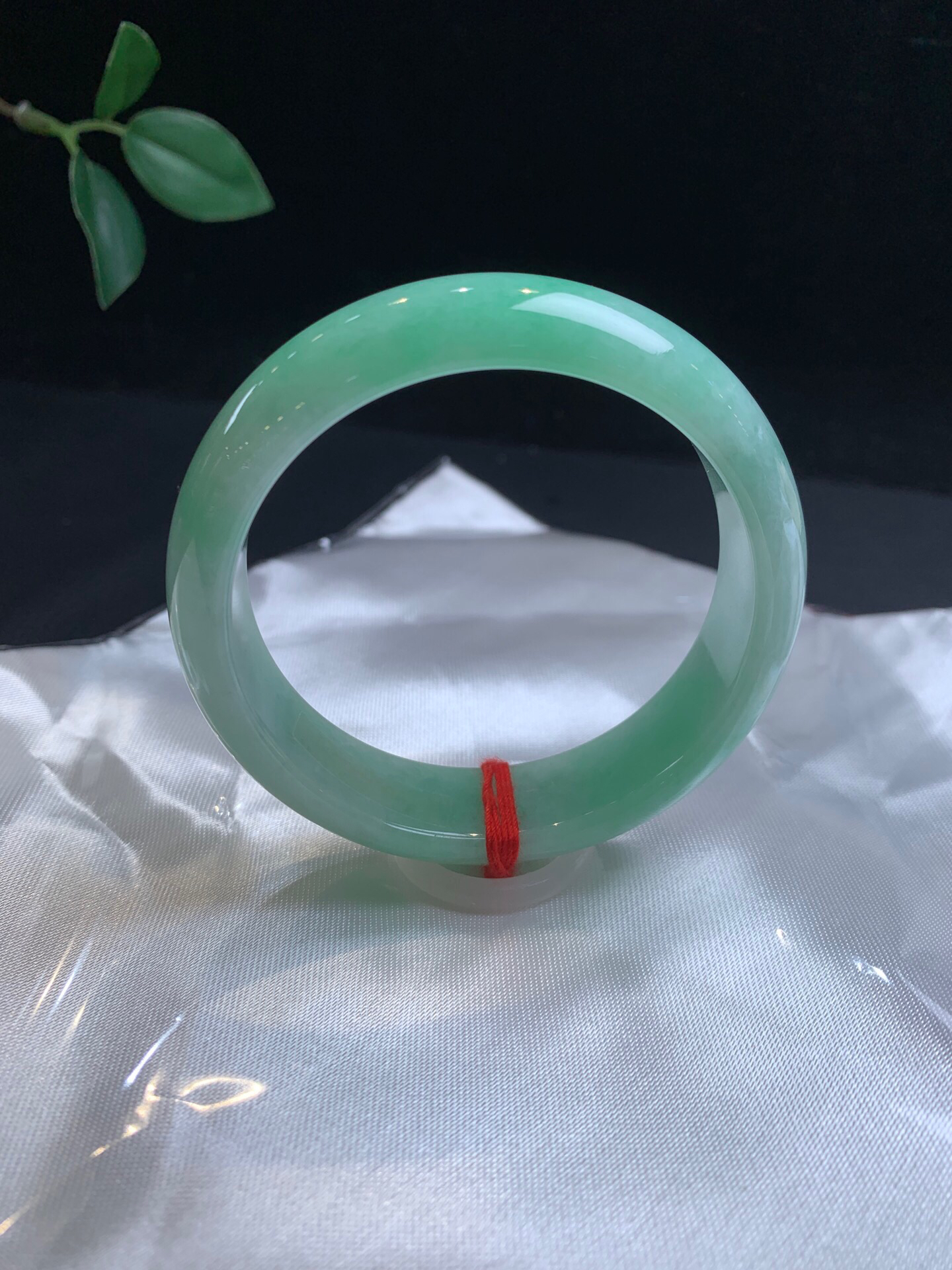 611903,55果绿底宽版手镯,15.5-7.6mm,🈵圈几乎都带果绿底色 版型好,干净清爽,佩戴效果漂亮。💰23500 #优石客珠宝