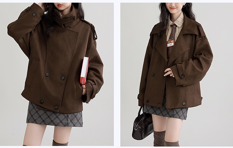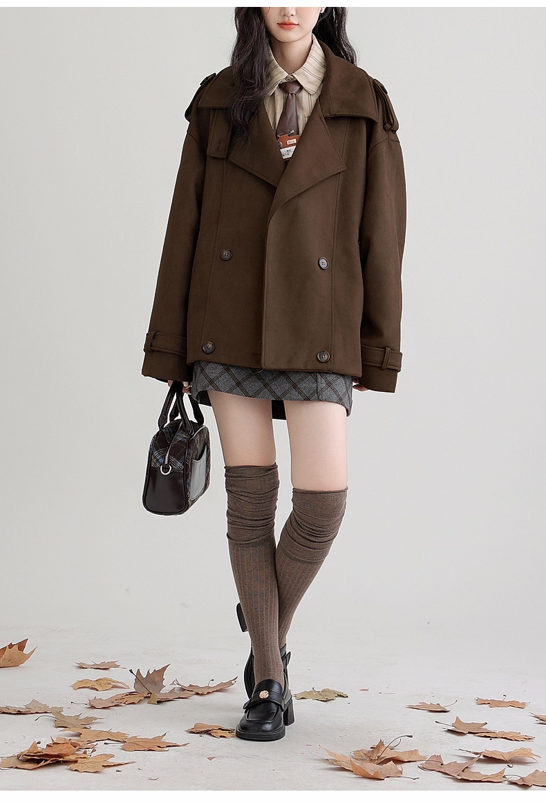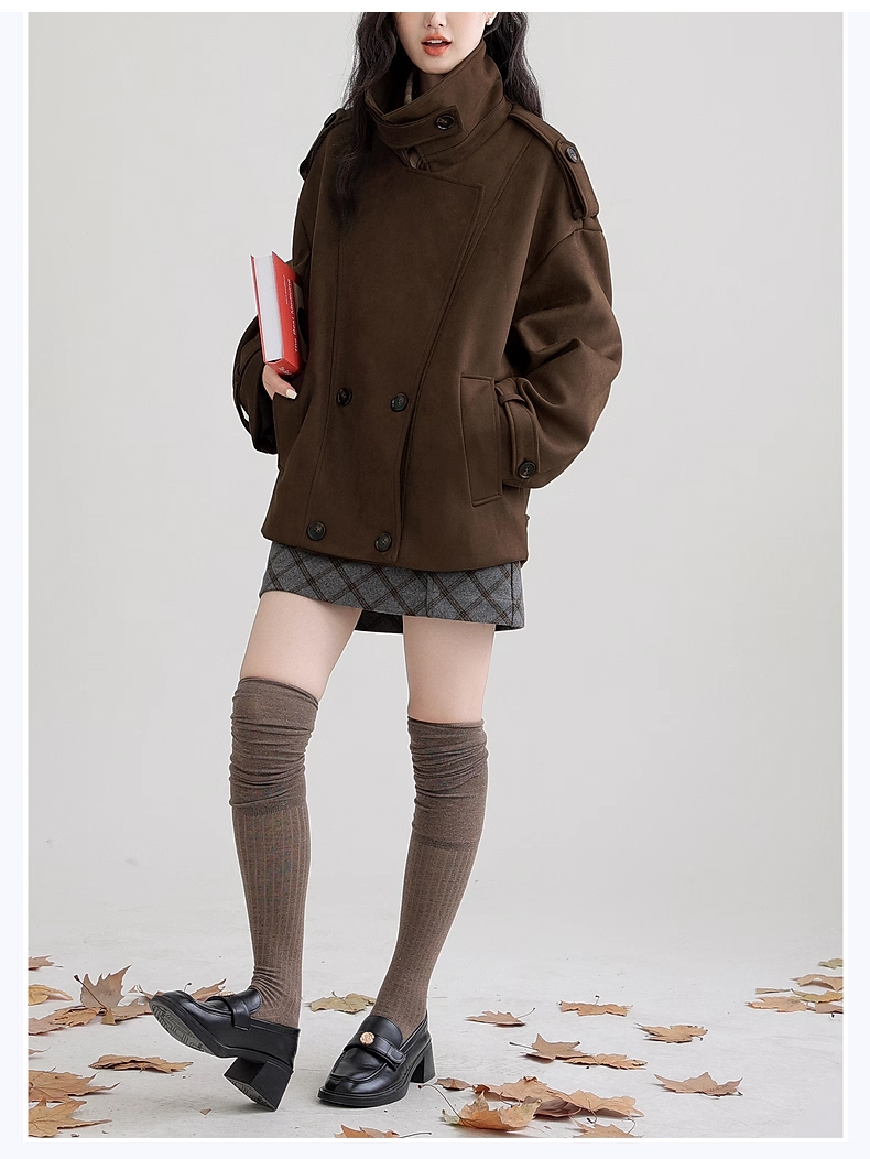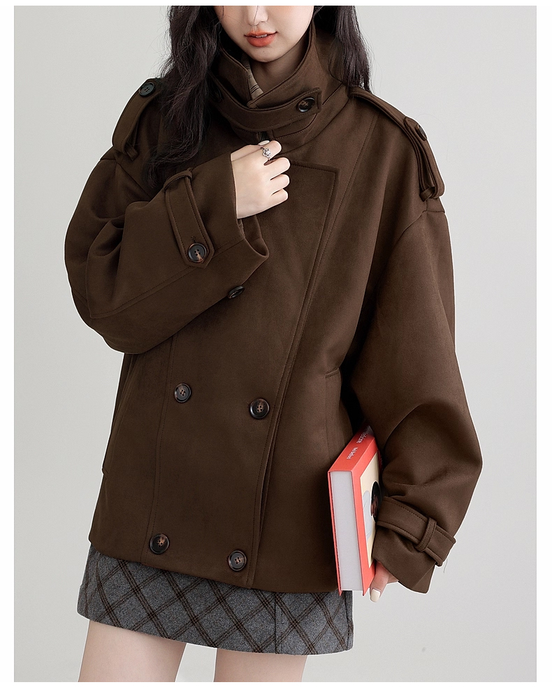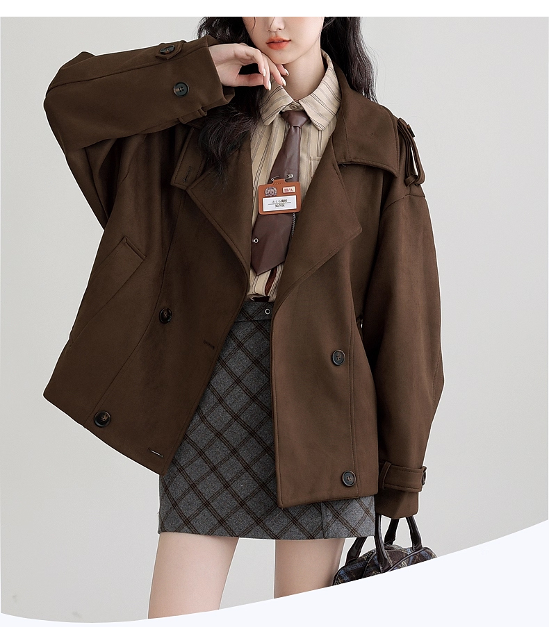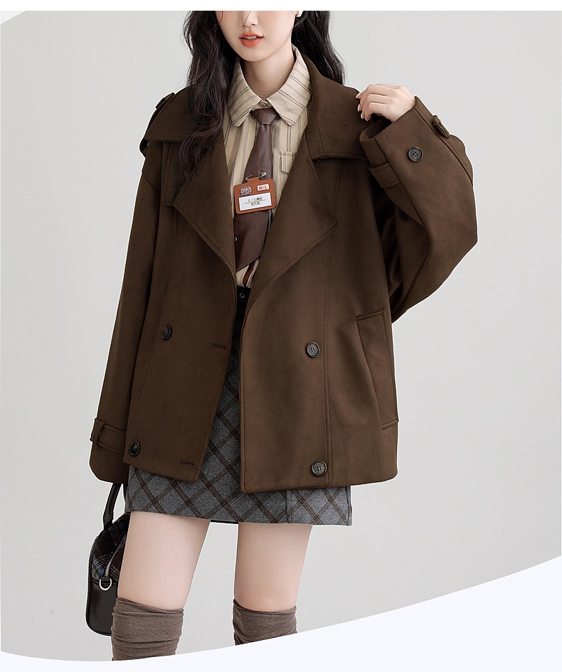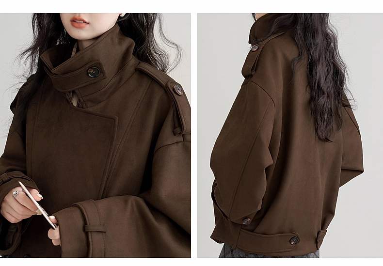 裁缝学苑AH83新款仿麂皮绒风衣纸样外套女翻领宽松高级感大衣打版裁剪
