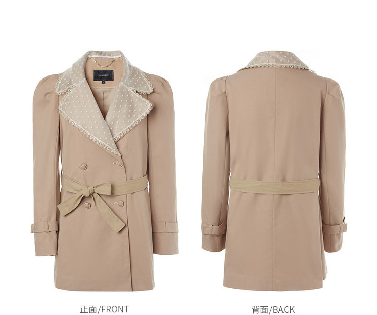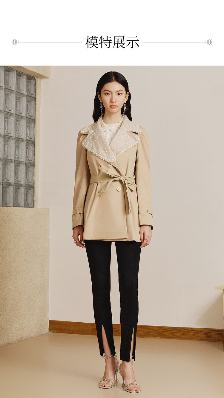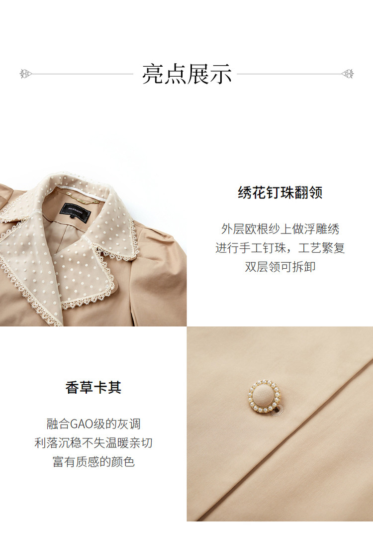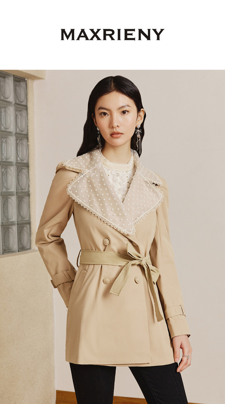 MAXRIENY极简通勤风钉珠蕾丝大翻领风衣2023春季新款大衣女中长款MS88WB004X10