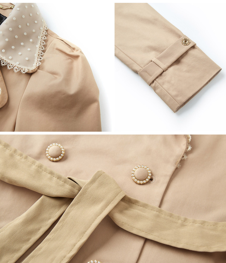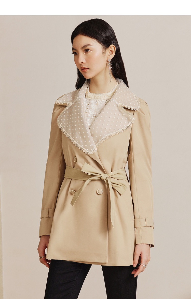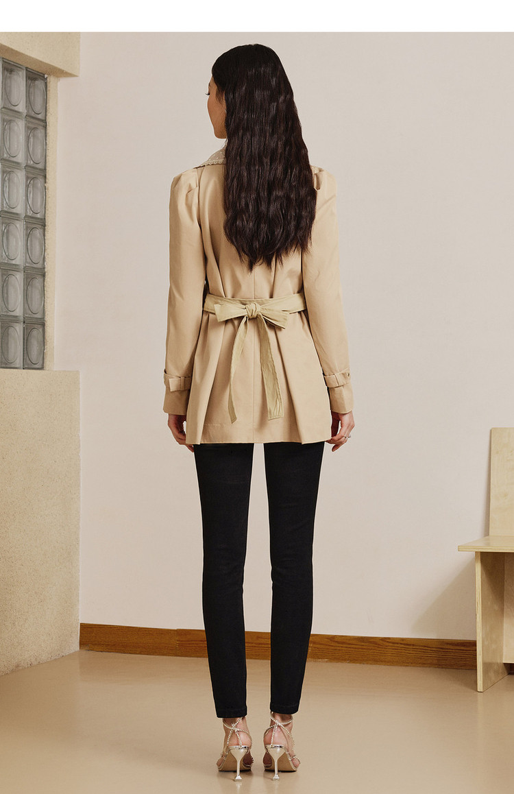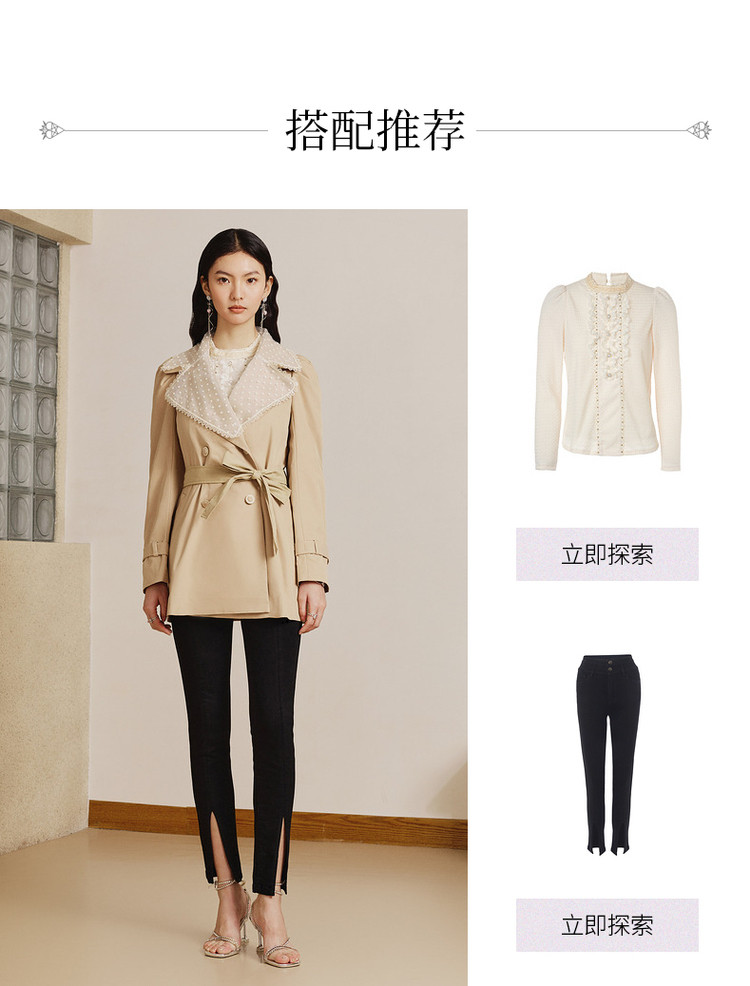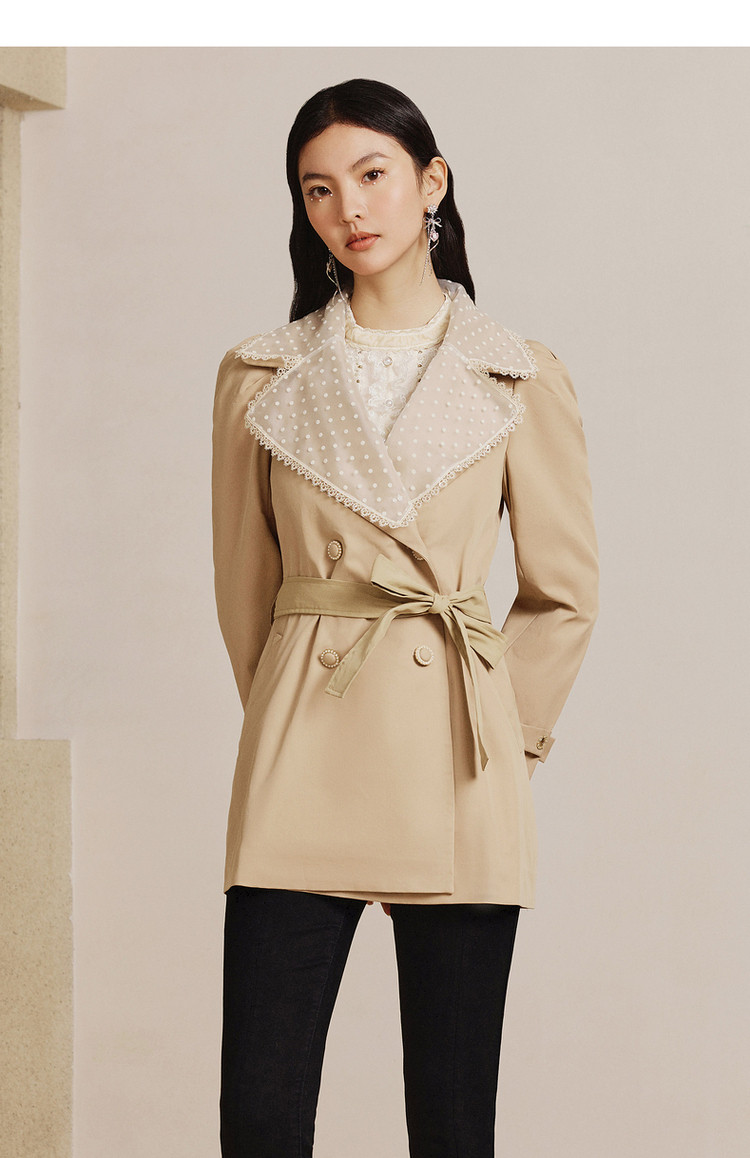 MAXRIENY极简通勤风钉珠蕾丝大翻领风衣2023春季新款大衣女中长款MS88WB004X10