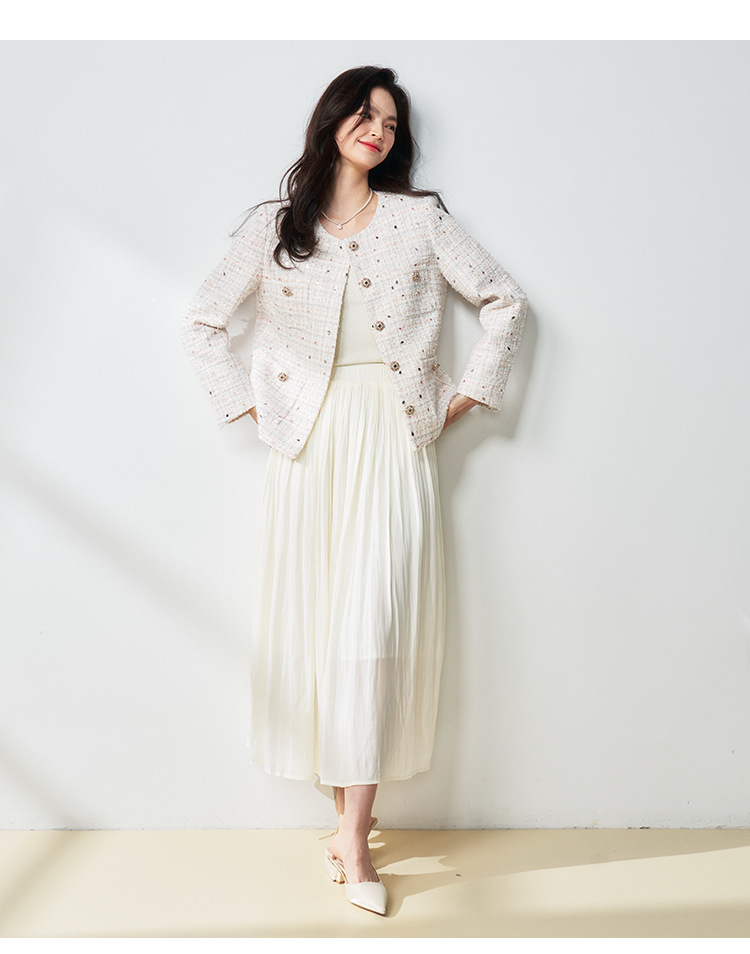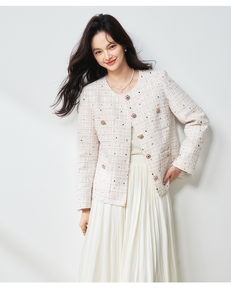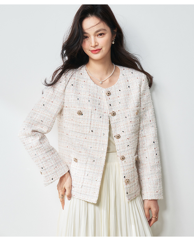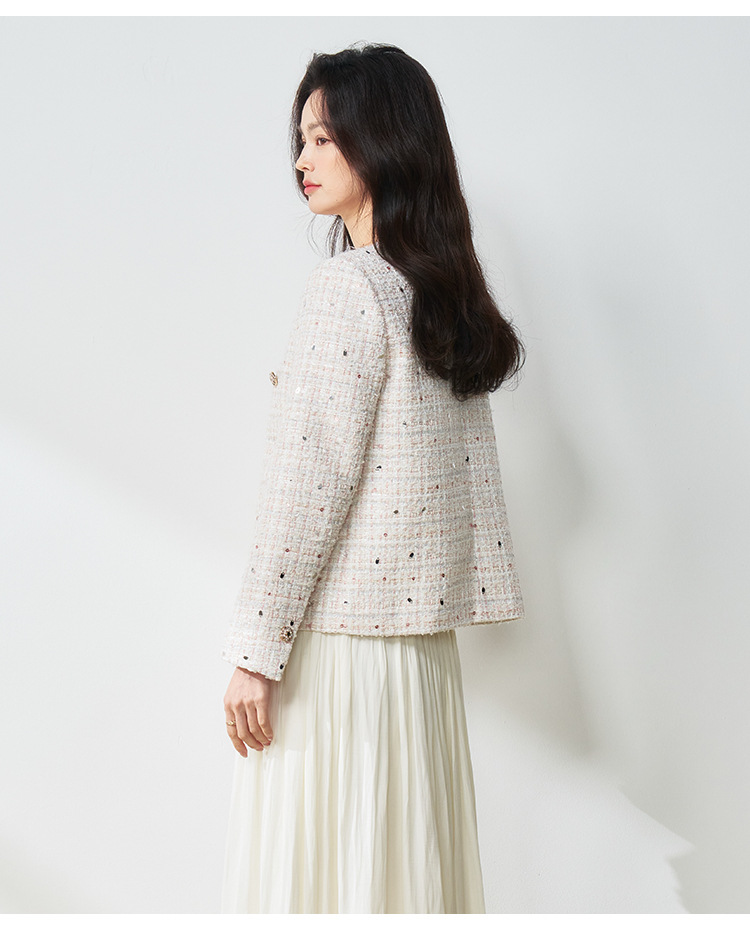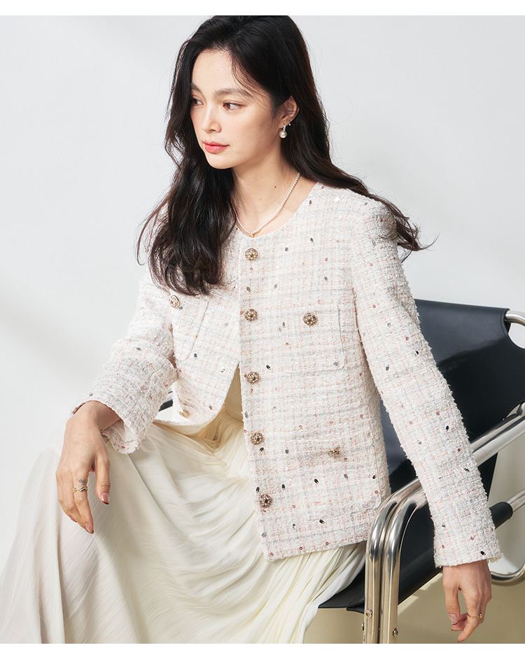 【高货sh】全新升级【铂金会员367/天猫489/差价122】(12411) 洛诗琳亮片纱蝴蝶纱混纺小香风外套2025春季百搭编织外套