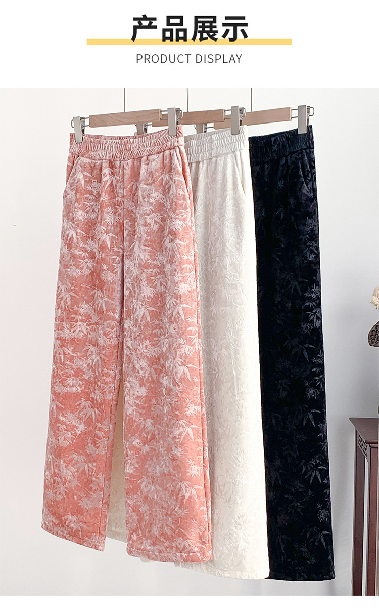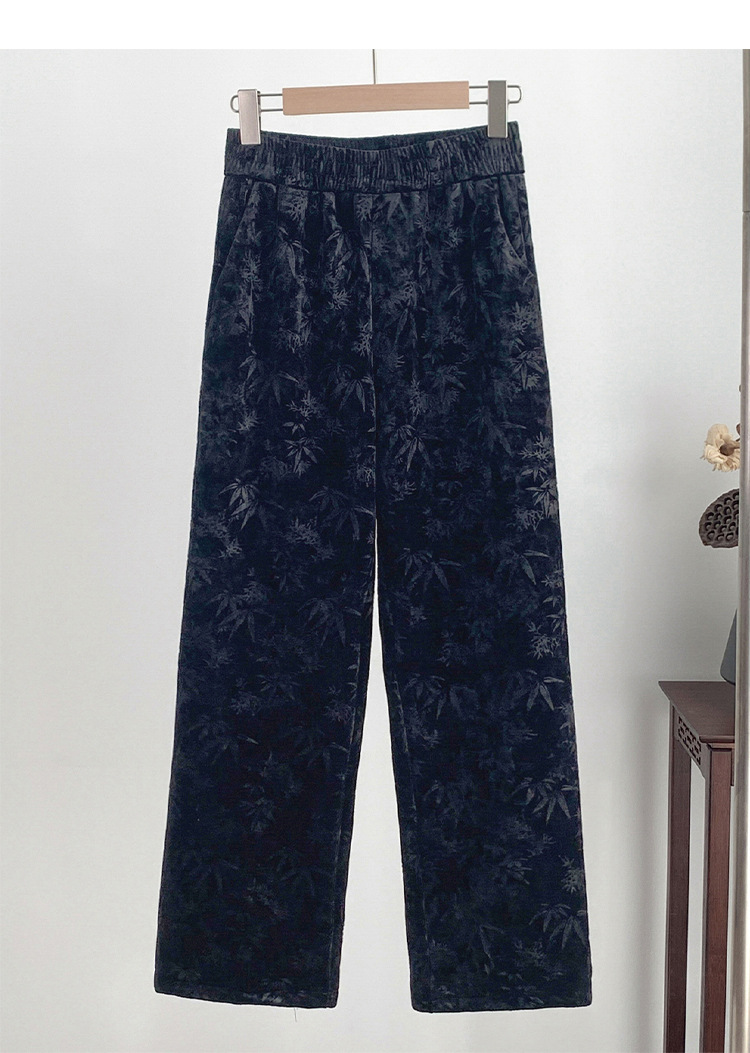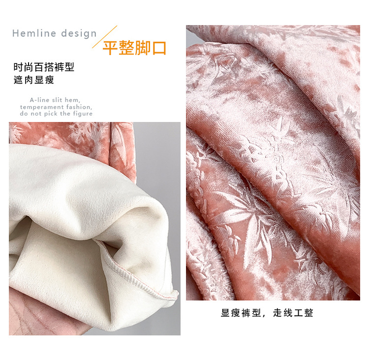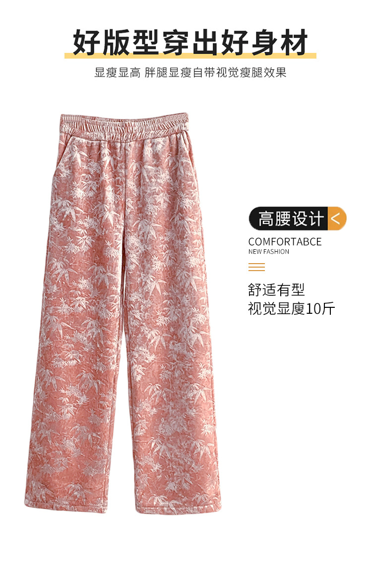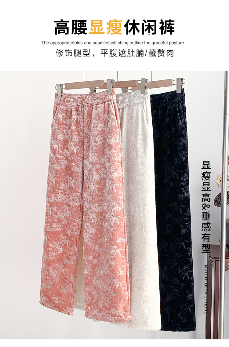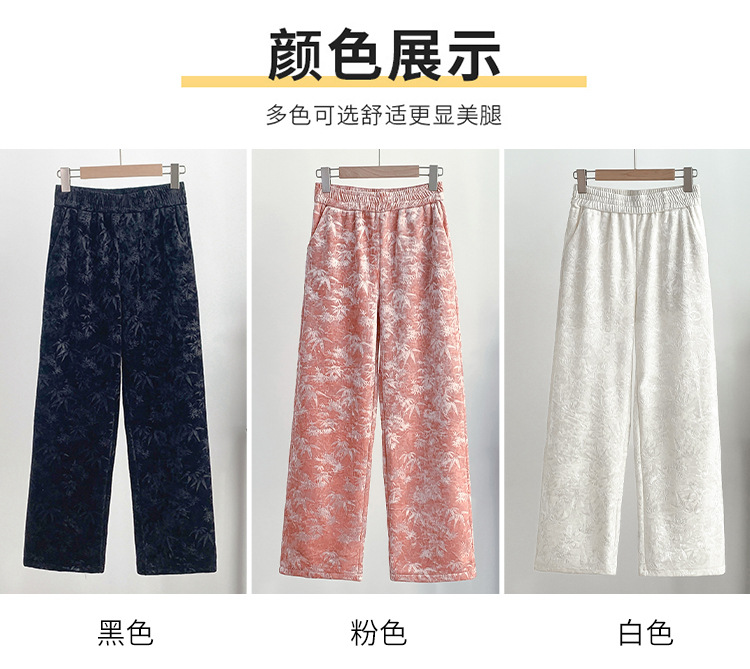 WY9816#新款冬季保暖裤钻石绒竹叶压花加绒加厚直筒裤简约百搭休闲裤女裤