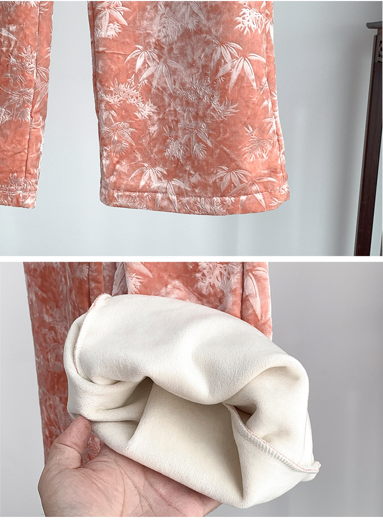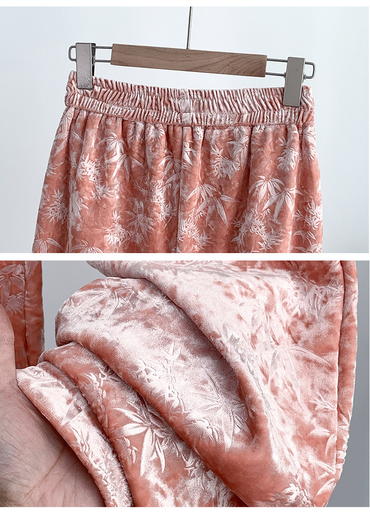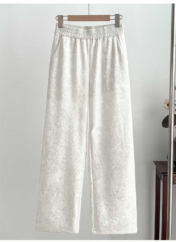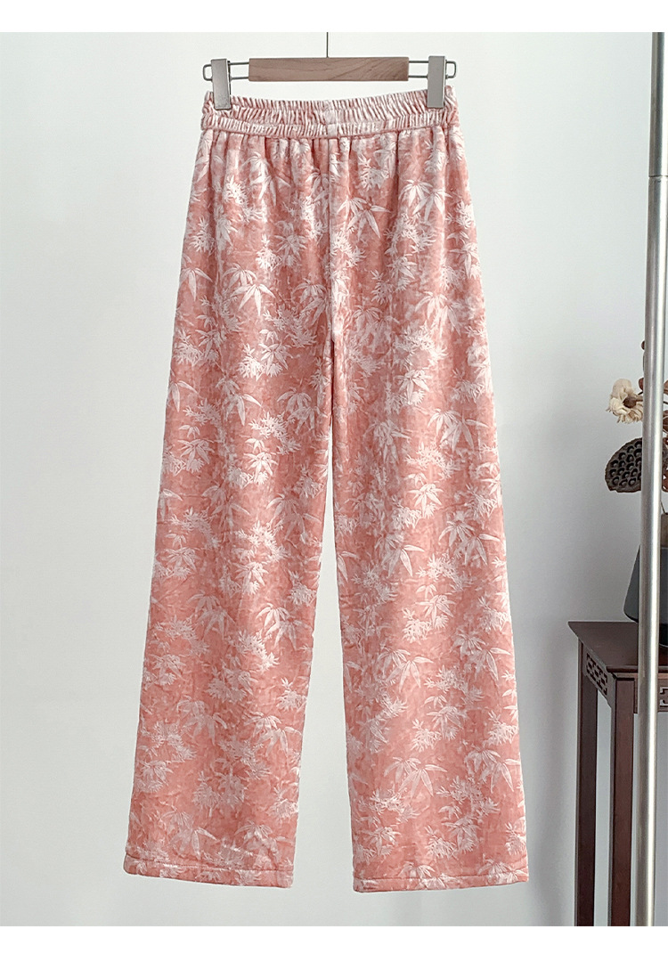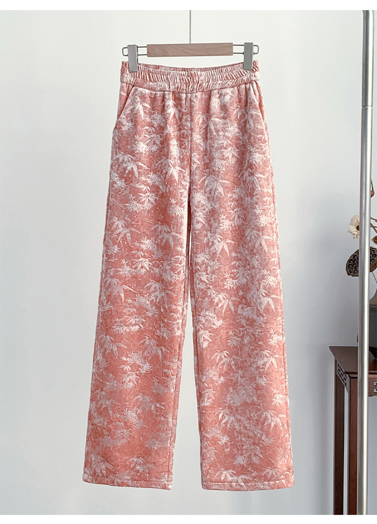 WY9816#新款冬季保暖裤钻石绒竹叶压花加绒加厚直筒裤简约百搭休闲裤女裤