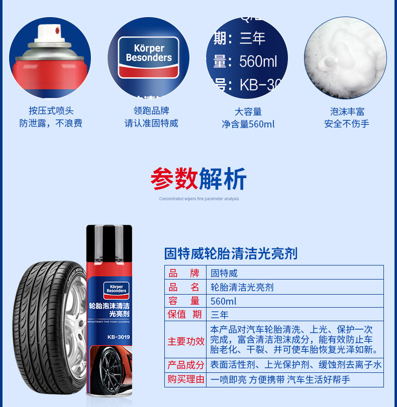 「固特威」轮胎泡沫清洁光亮剂