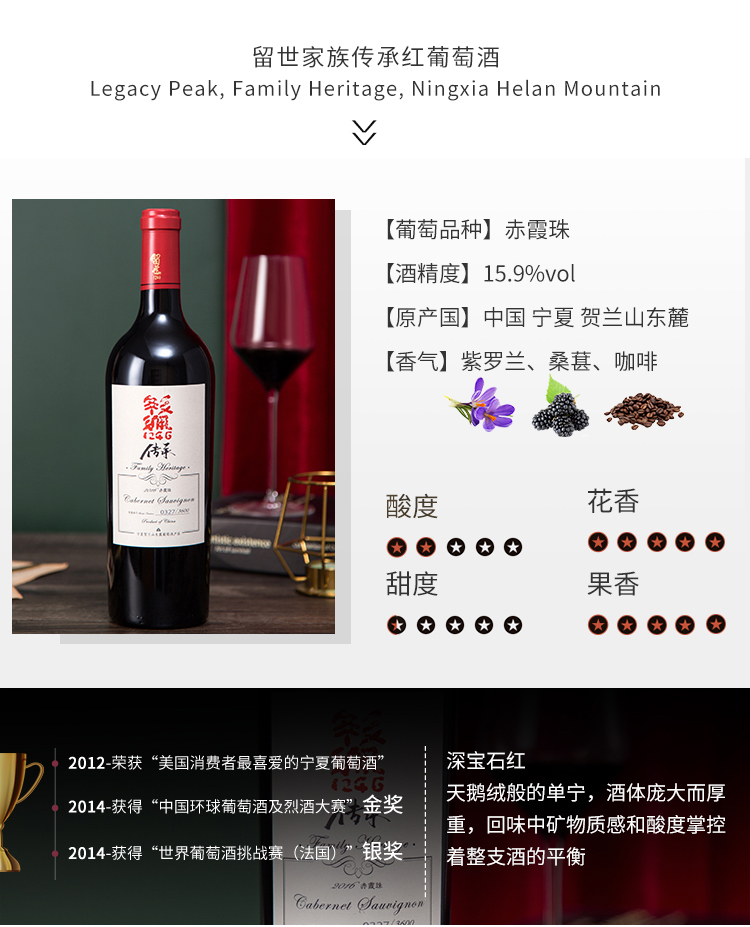 宁夏留世家族传承赤霞珠红葡萄酒 2021