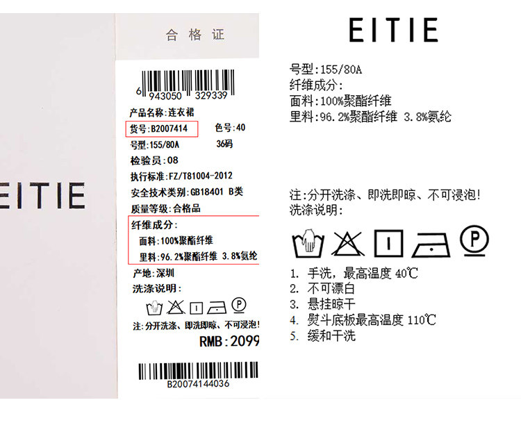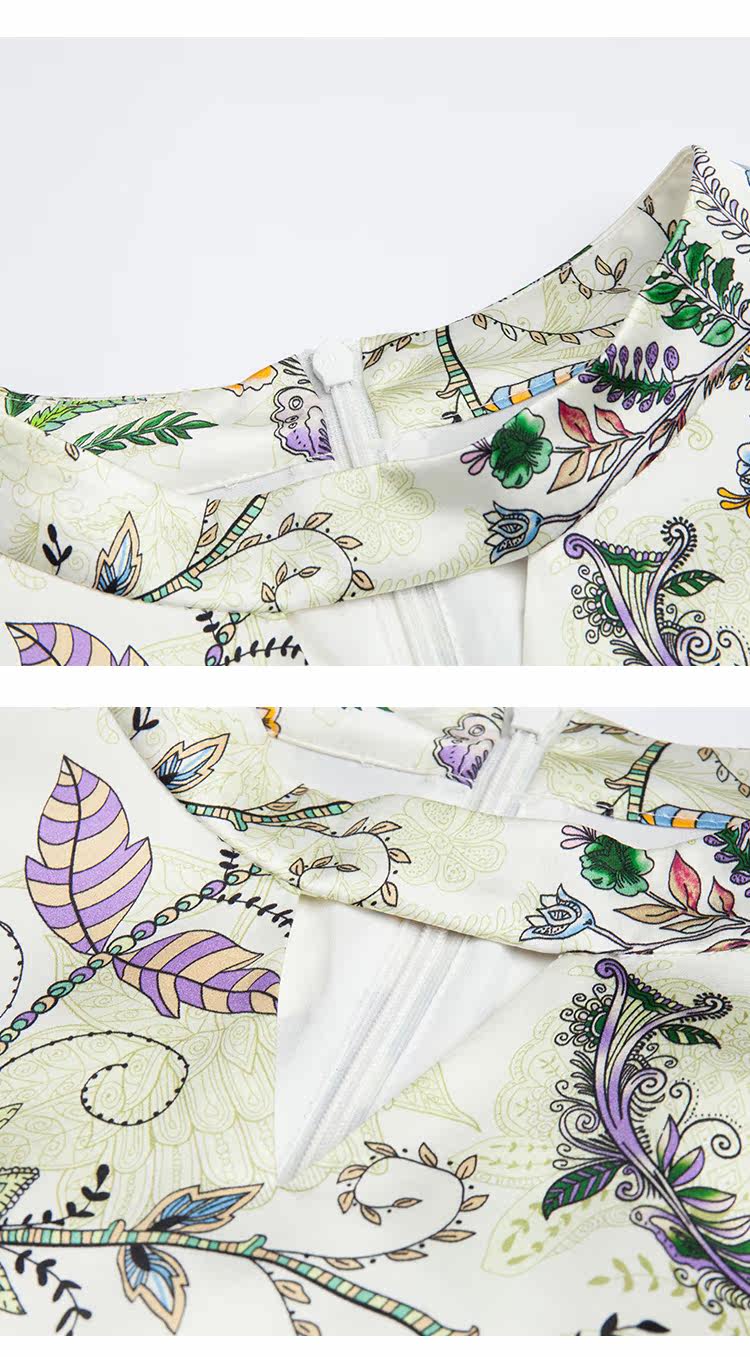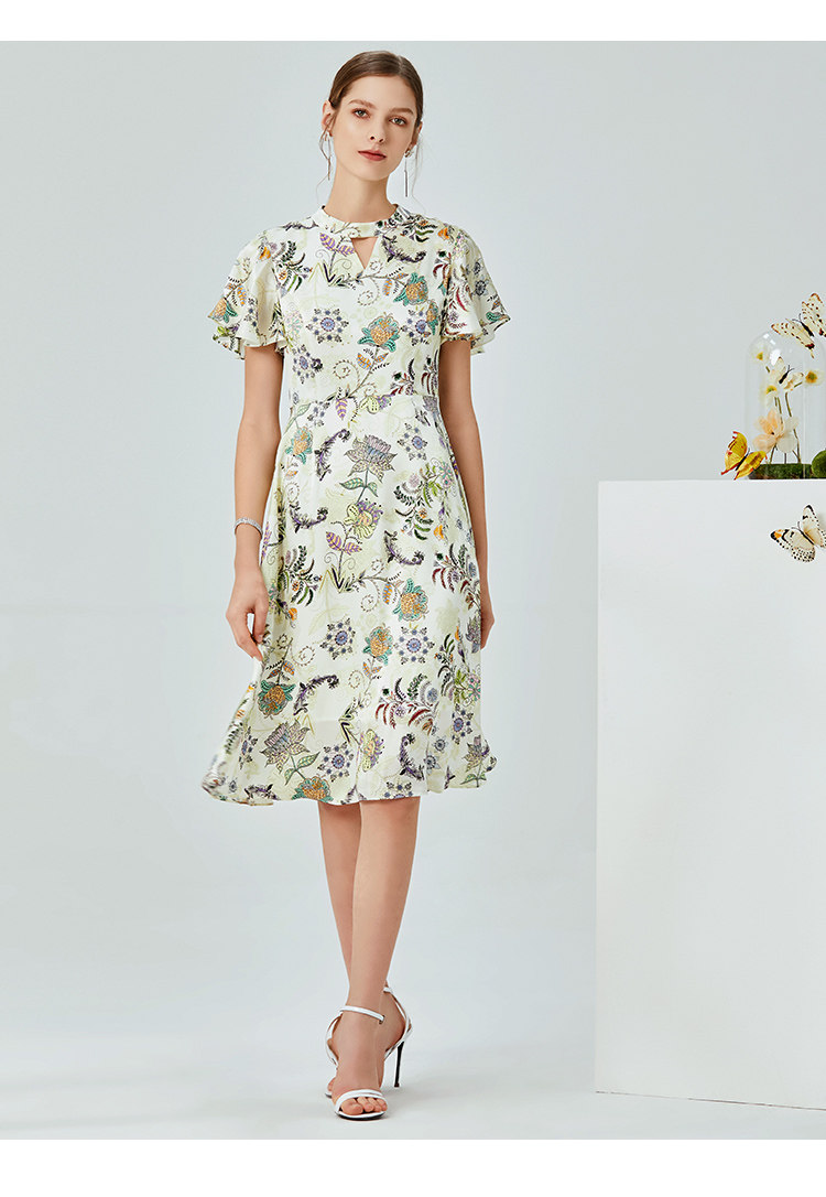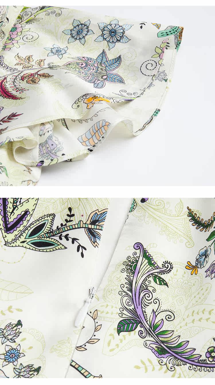 EITIE爱特爱夏季新款时尚清新飞飞袖V领收腰A摆印花连衣裙女B2007414