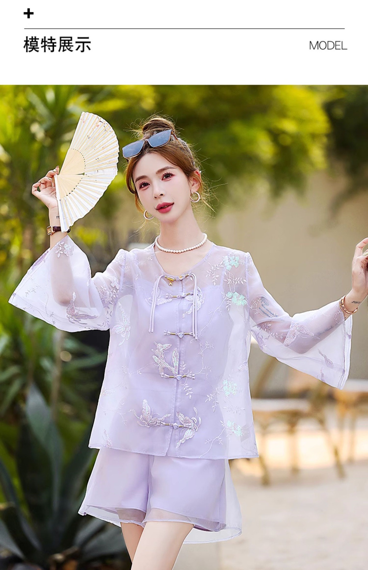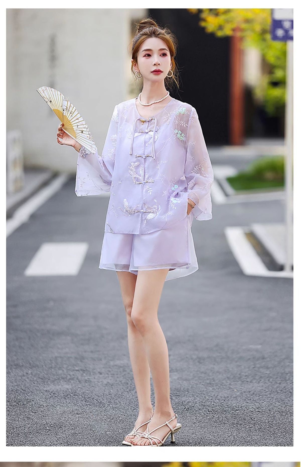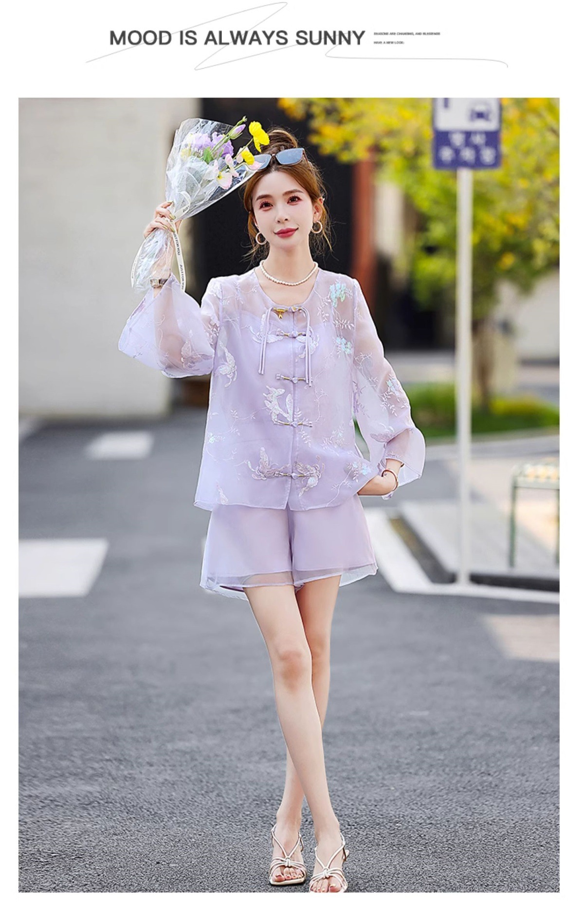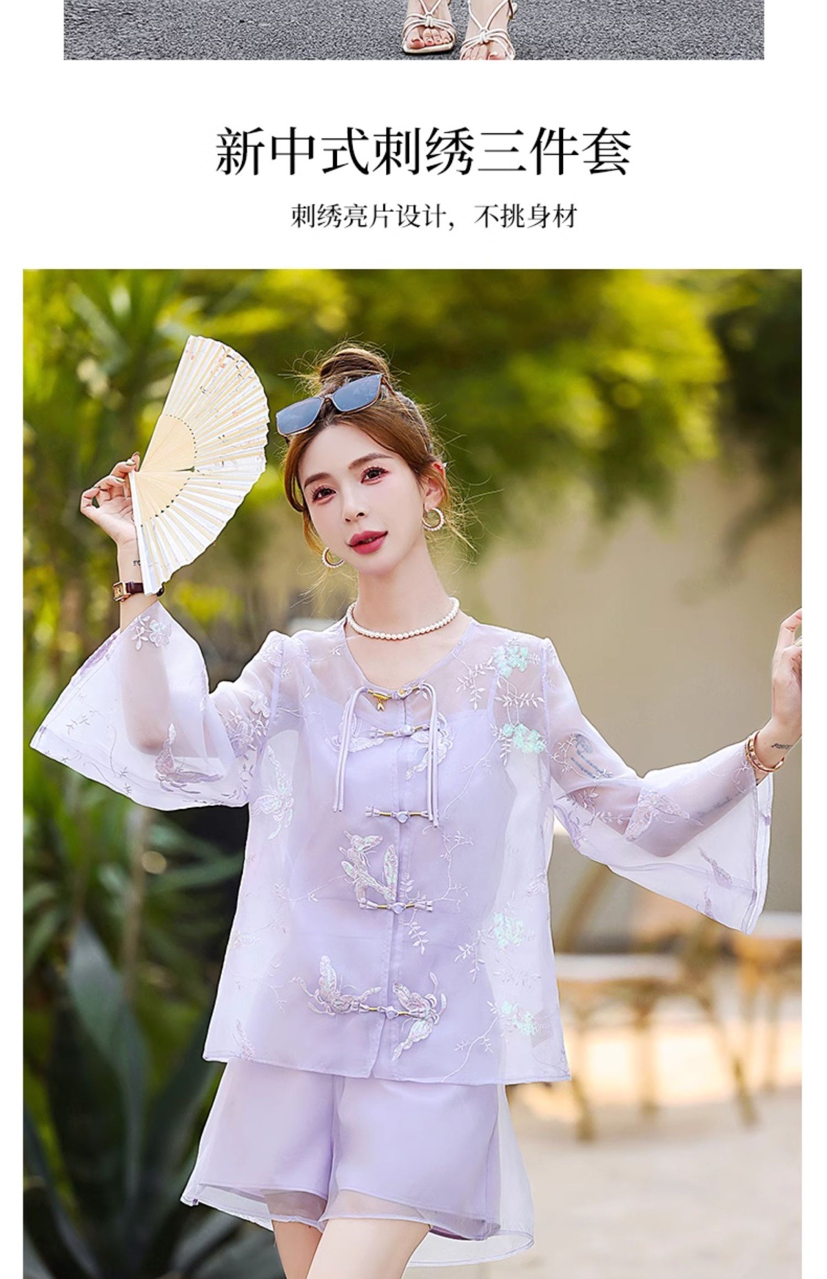 新中式国风套装,复古刺绣盘扣上衣短裤子两件套HR-GYGM2510