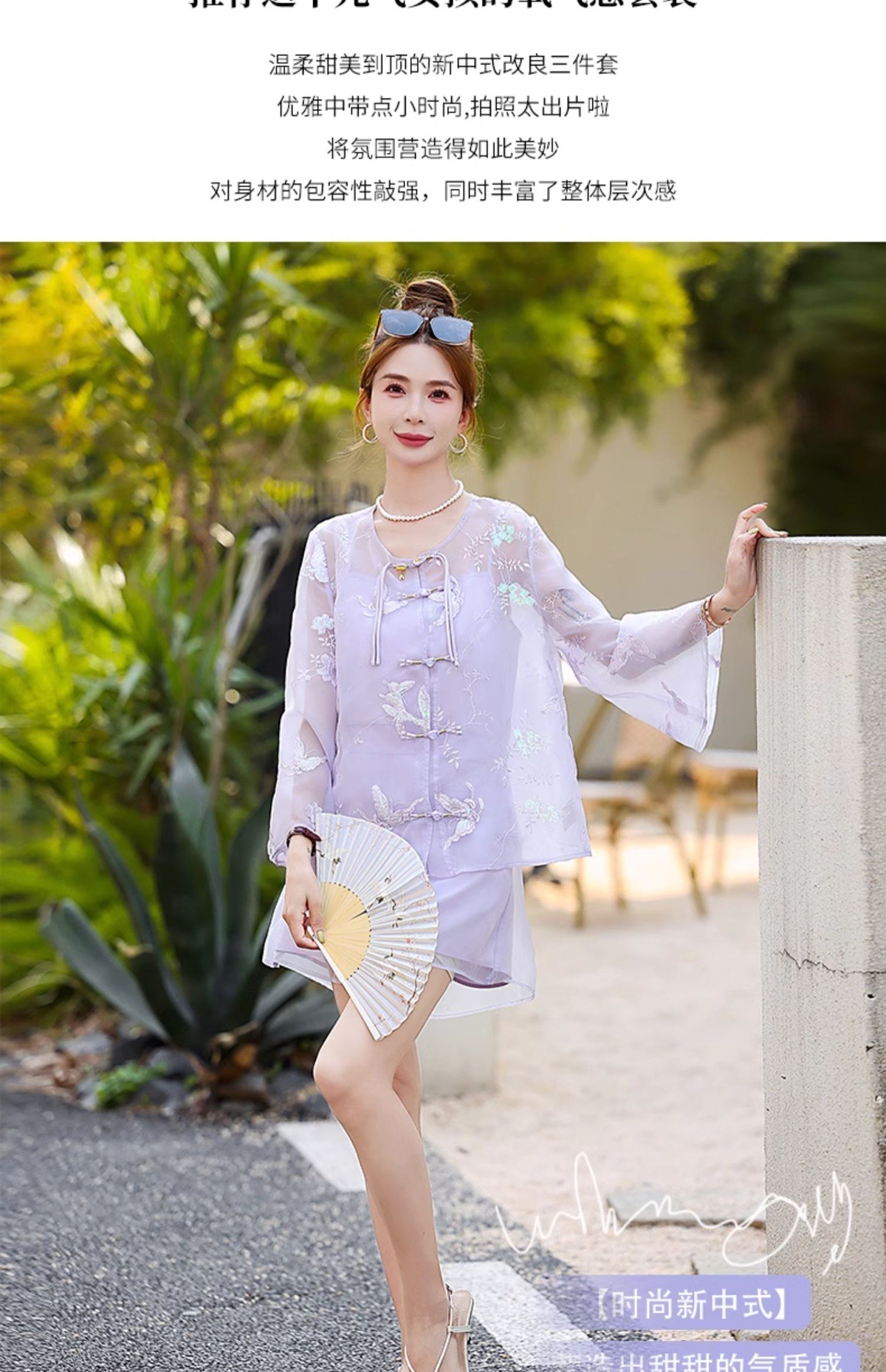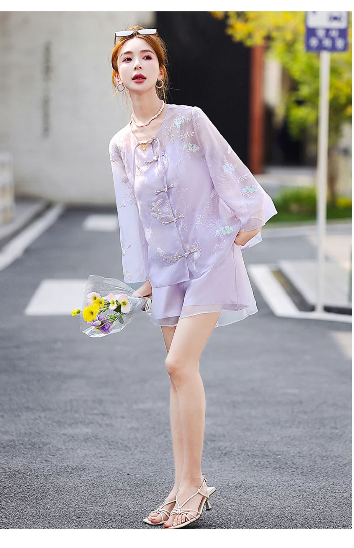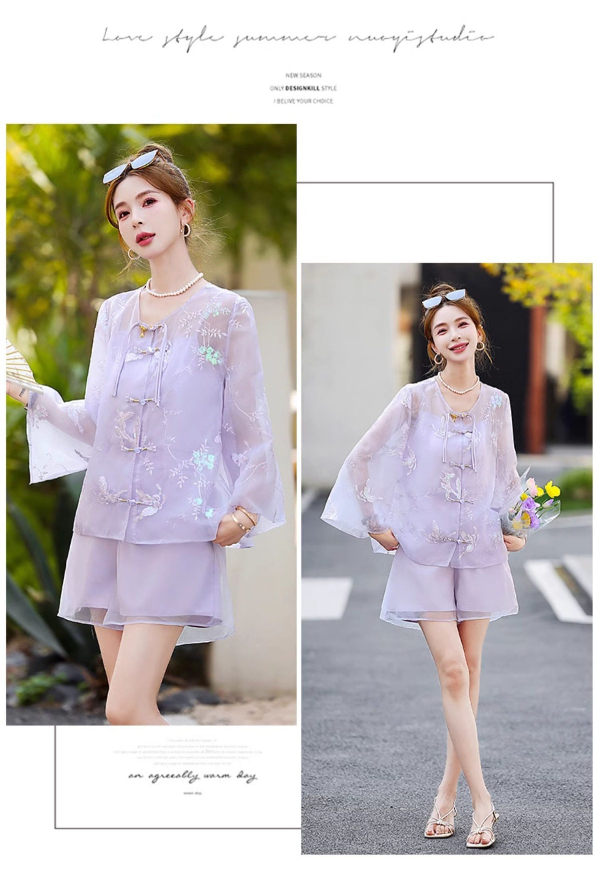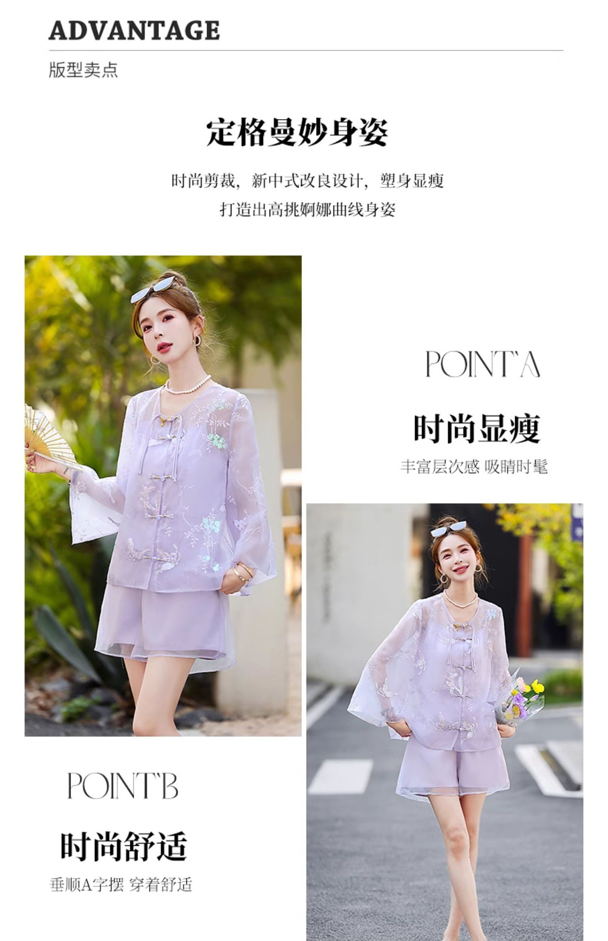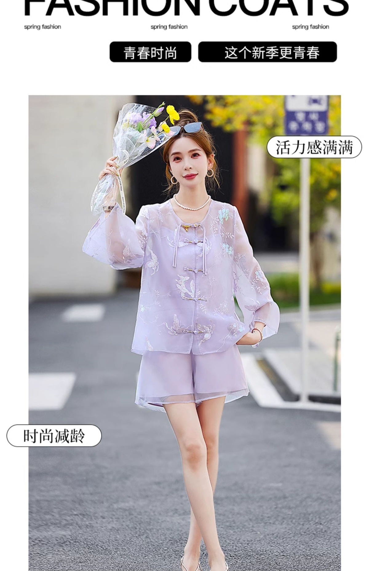 新中式国风套装,复古刺绣盘扣上衣短裤子两件套HR-GYGM2510