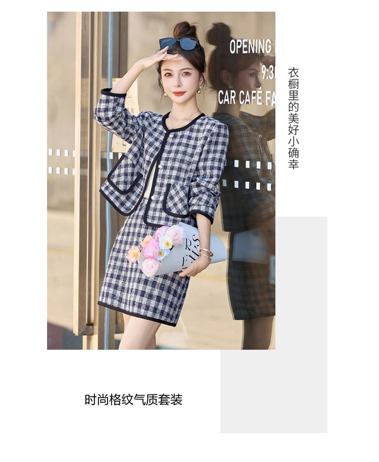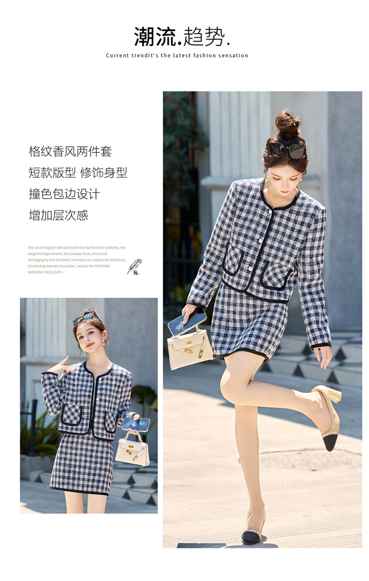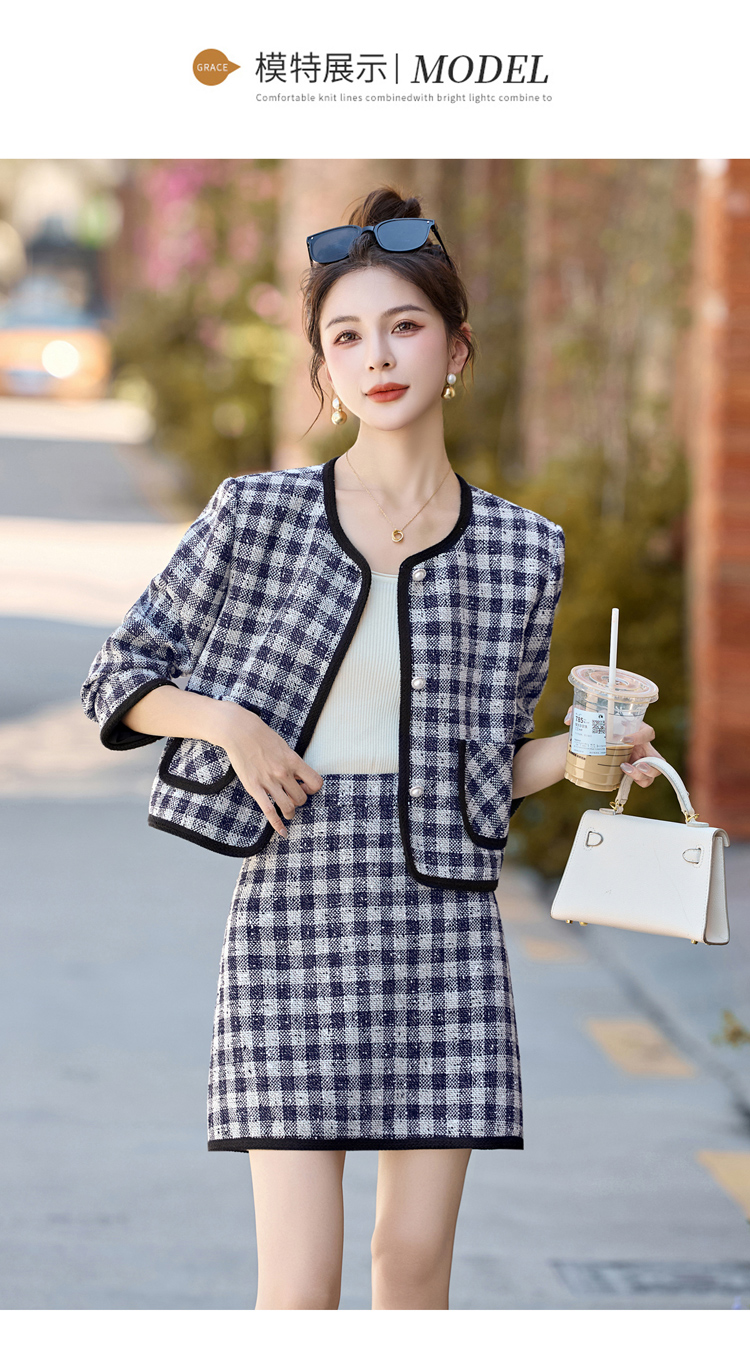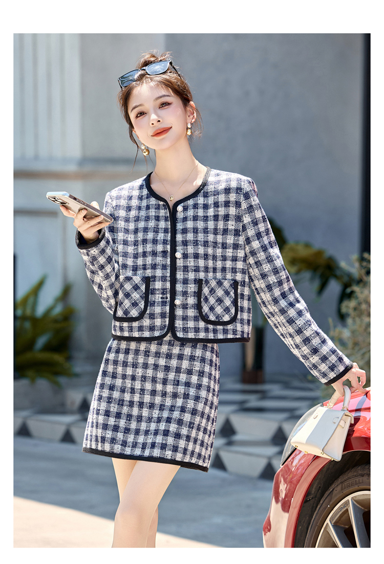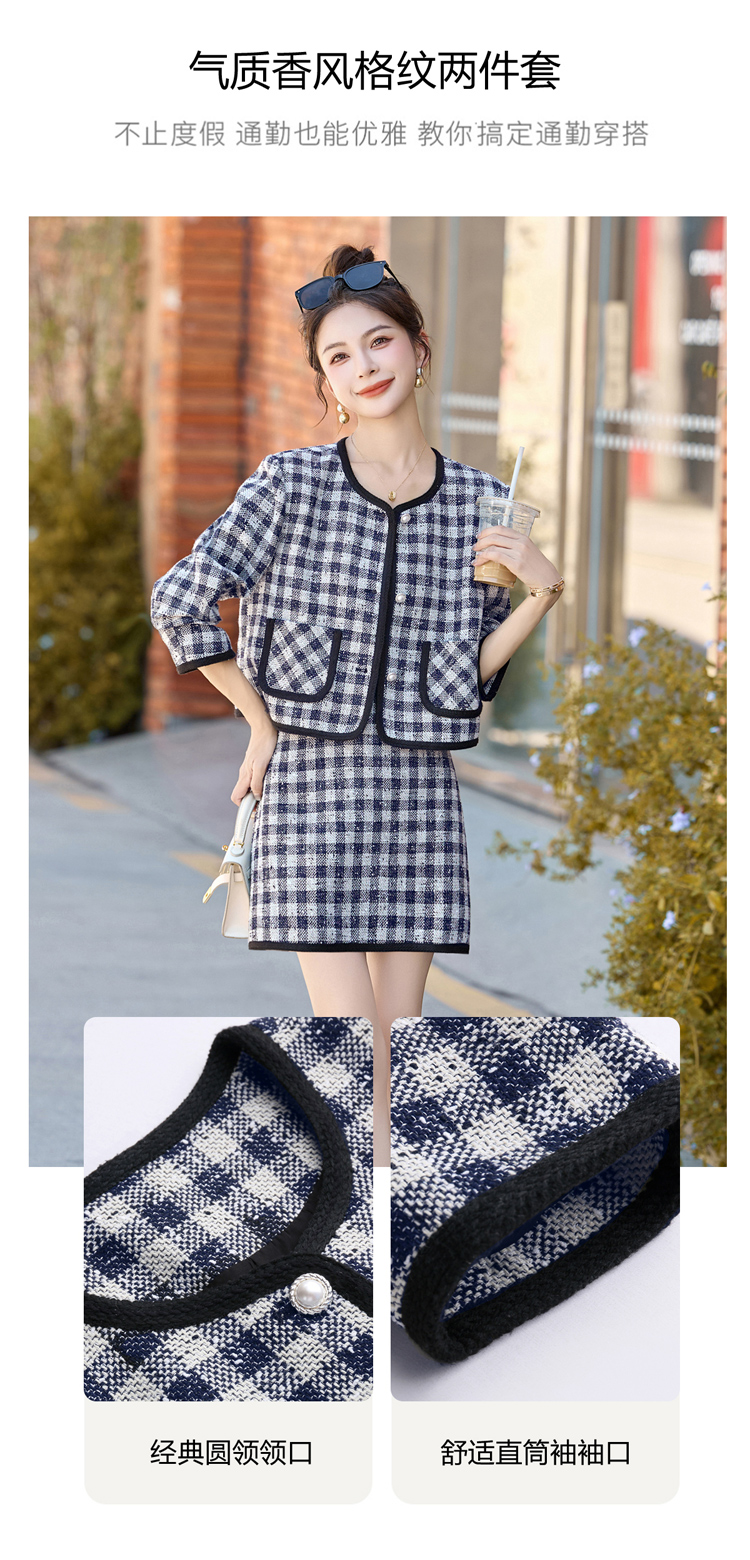 时尚洋气小香风格子外套+半身裙两件套装HR-YJLY8612
