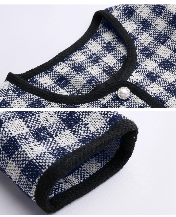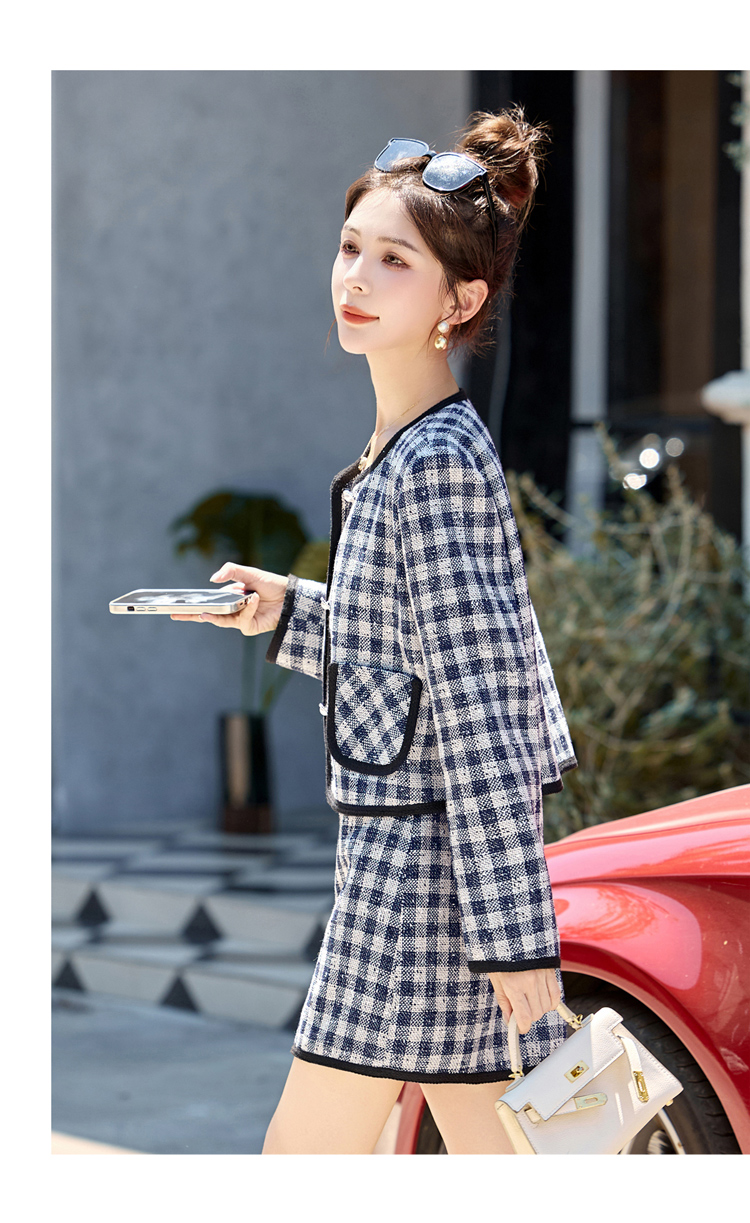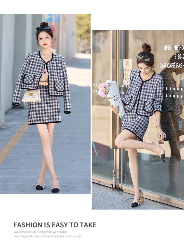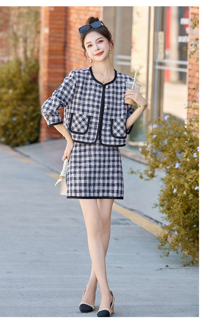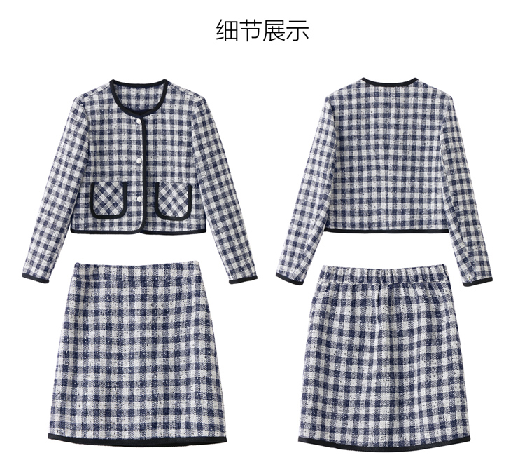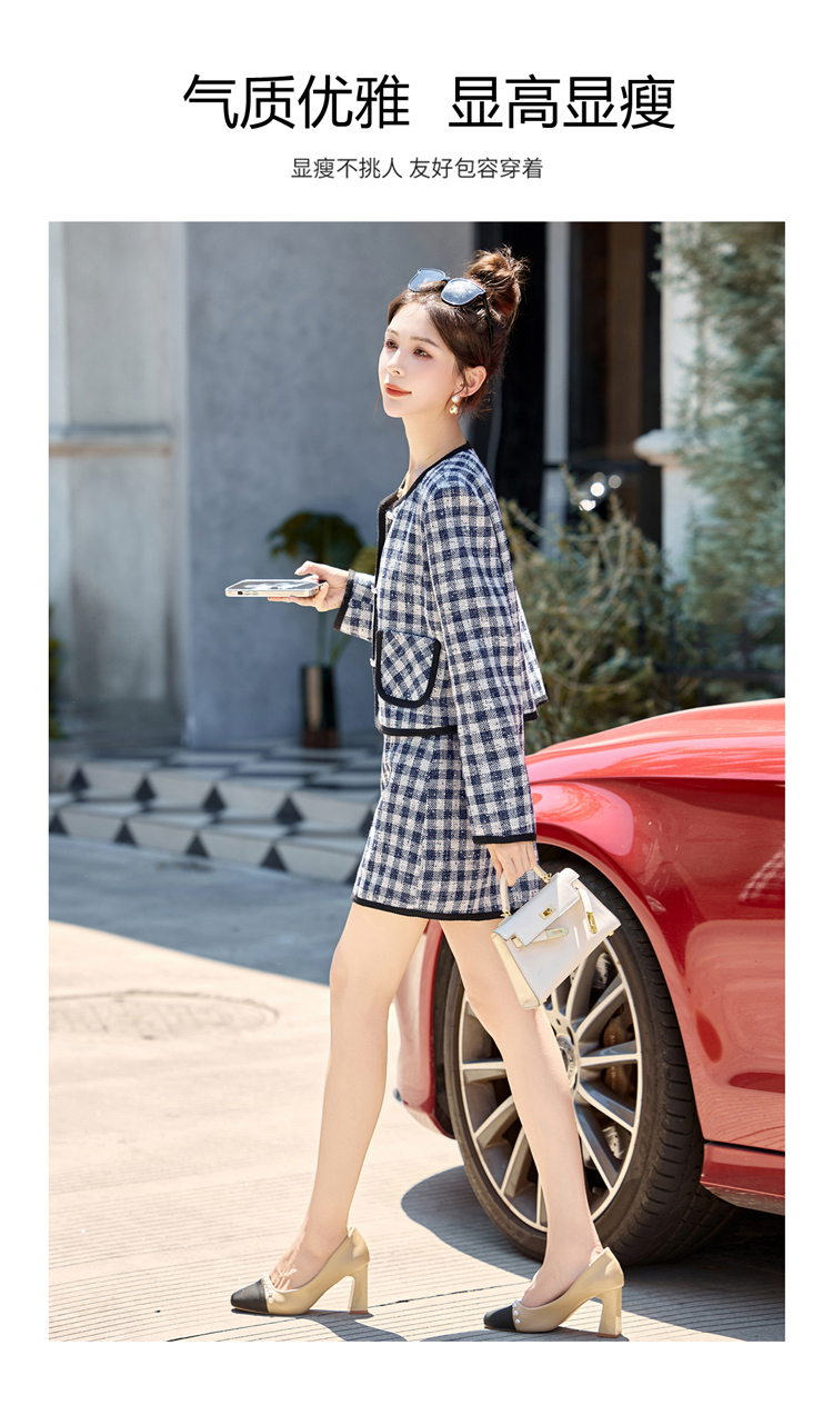 时尚洋气小香风格子外套+半身裙两件套装HR-YJLY8612
