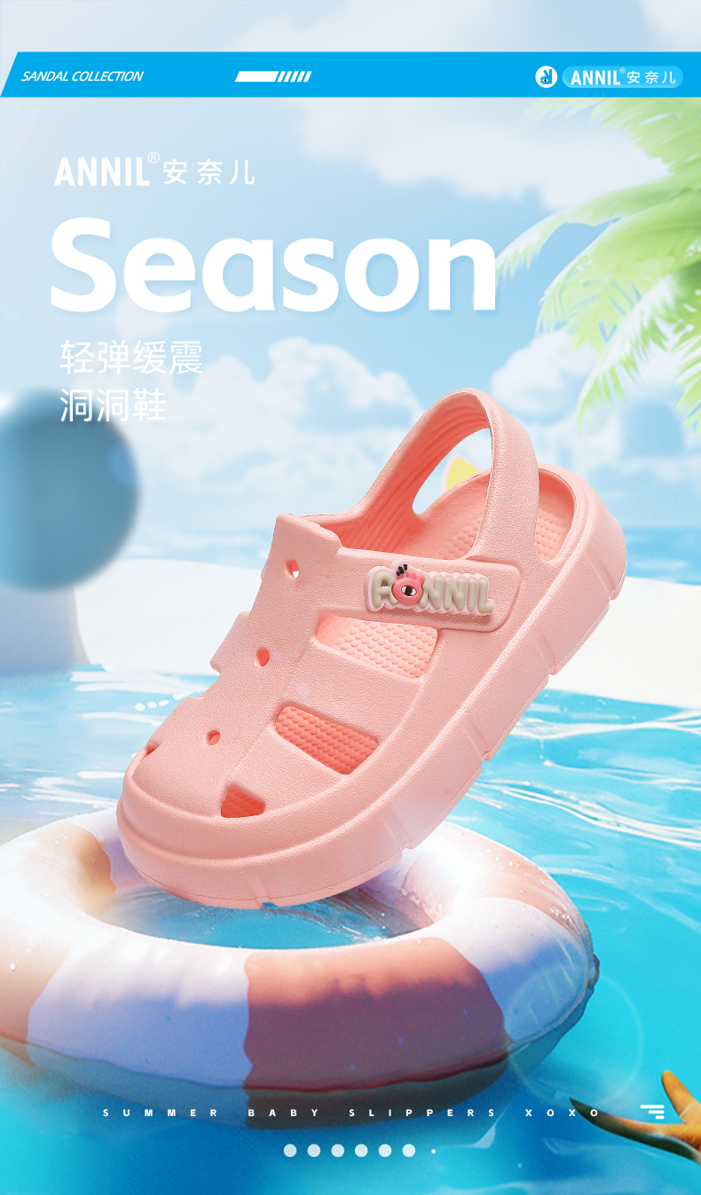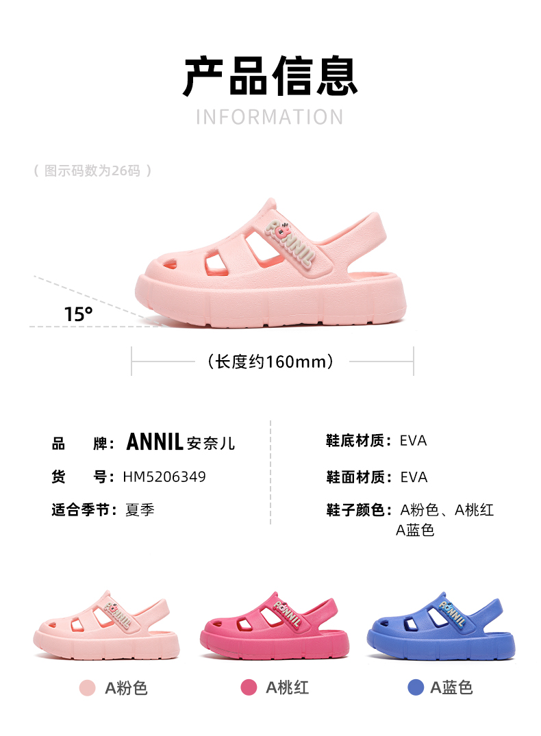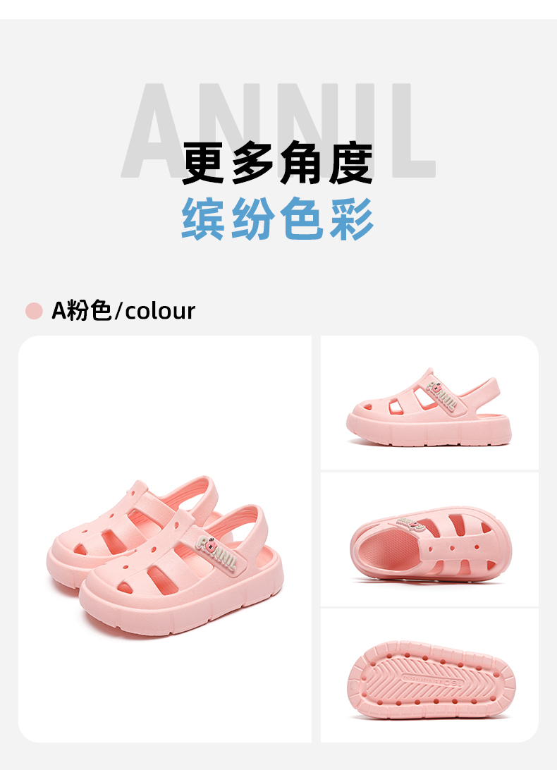 ANNIL/安奈儿男女童夏季透气休闲潮流包头洞洞平底厚底防滑软底凉鞋2025夏款HM5206349