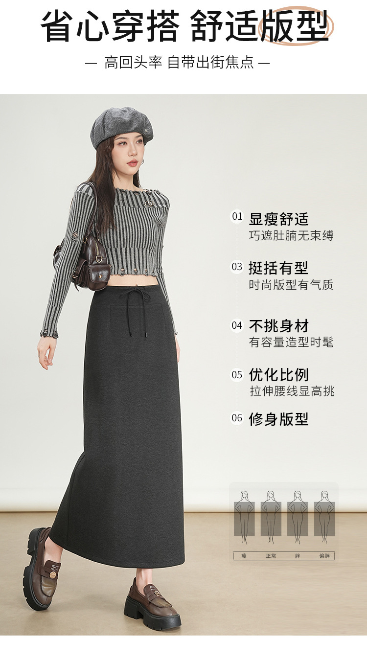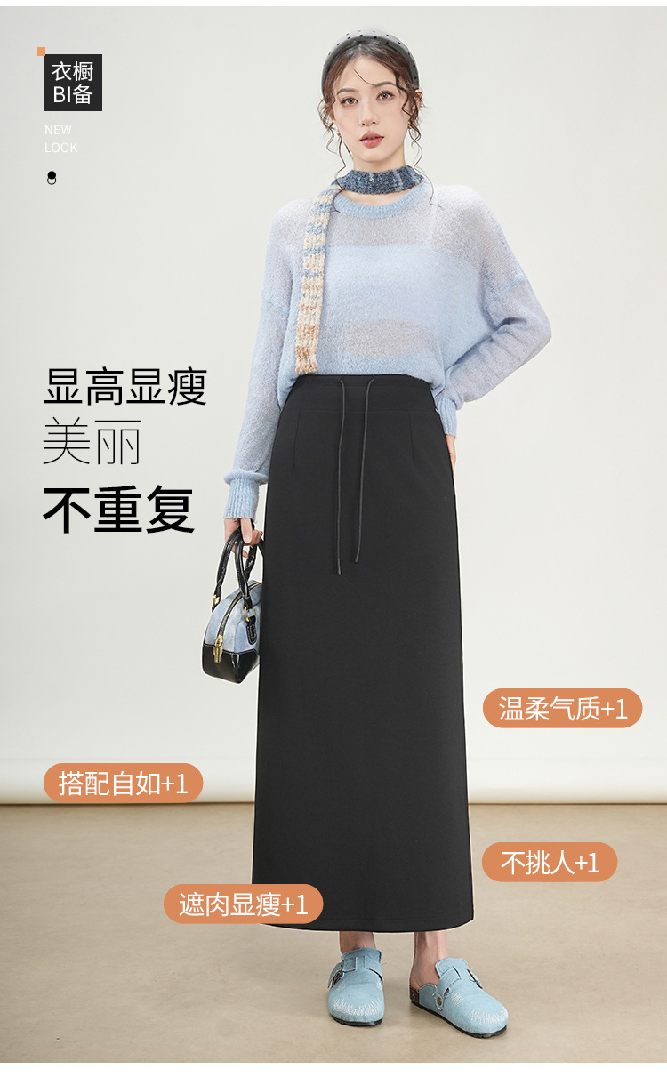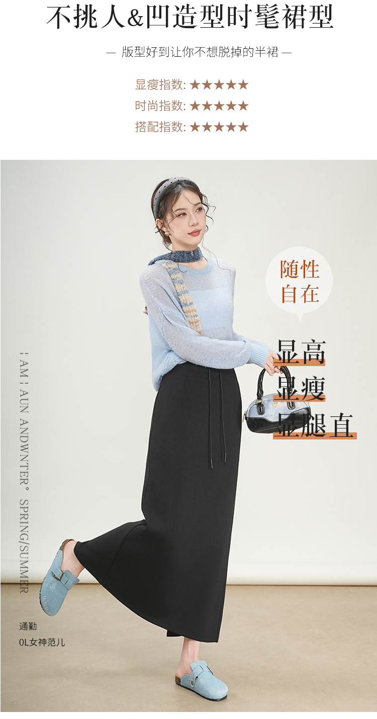 QYM 95851-Y休闲直筒半身裙包臀裙开衩一步裙