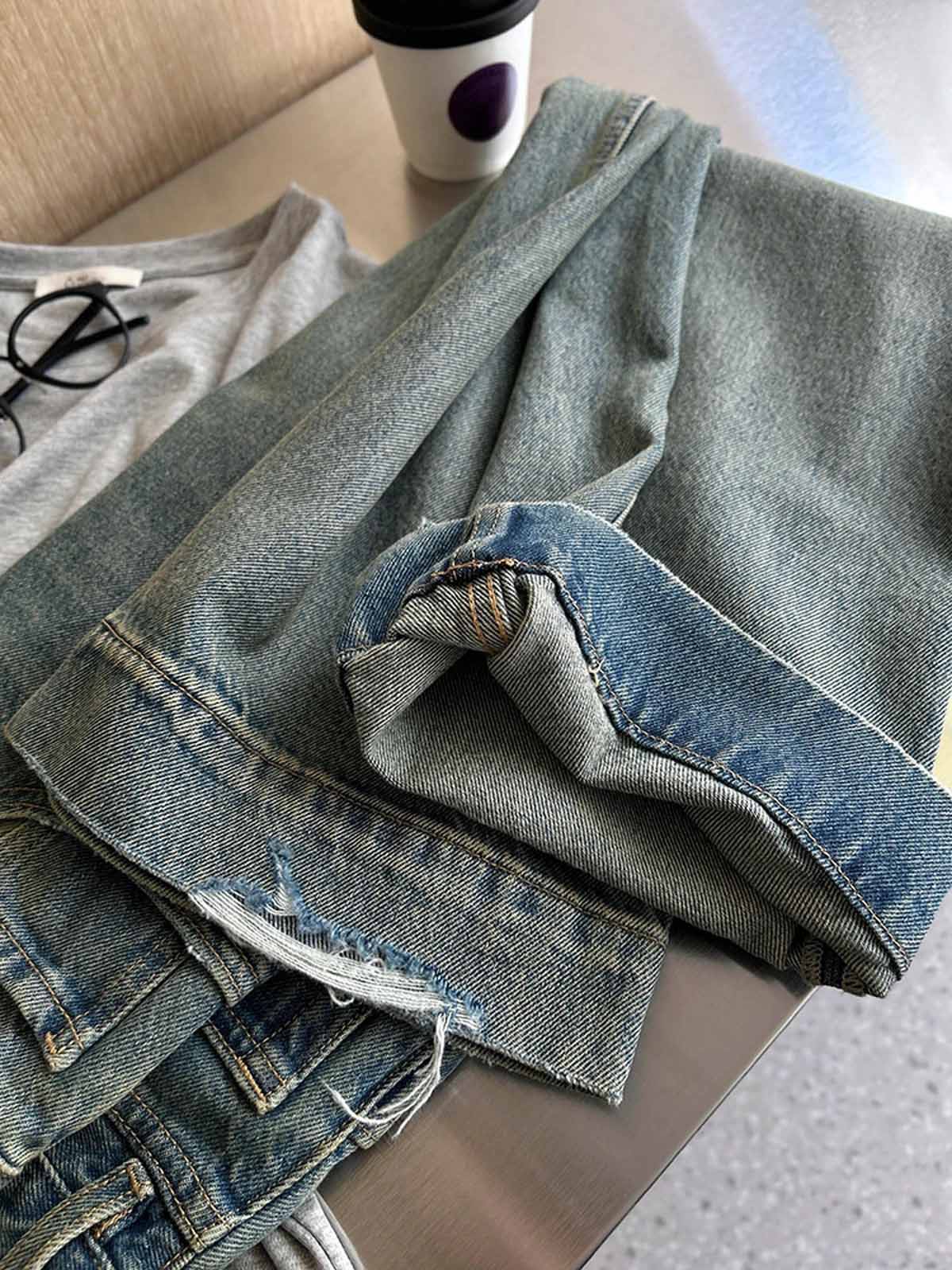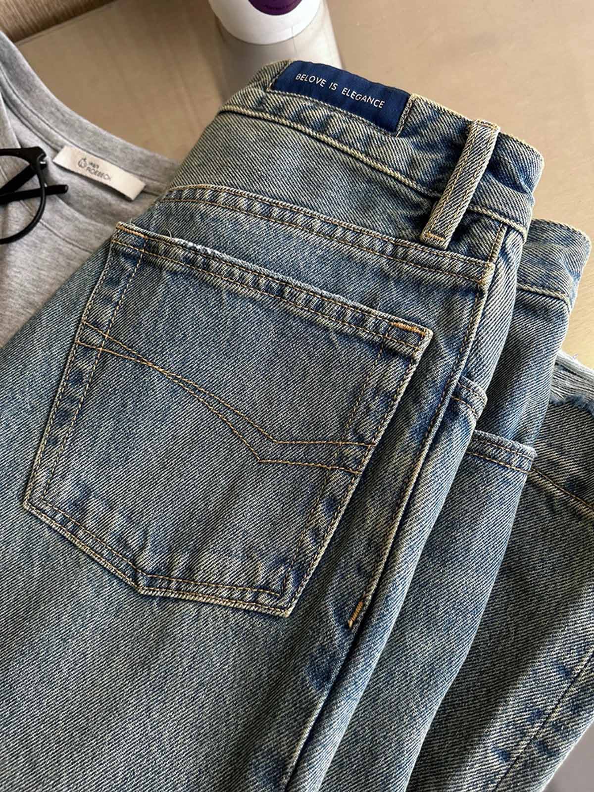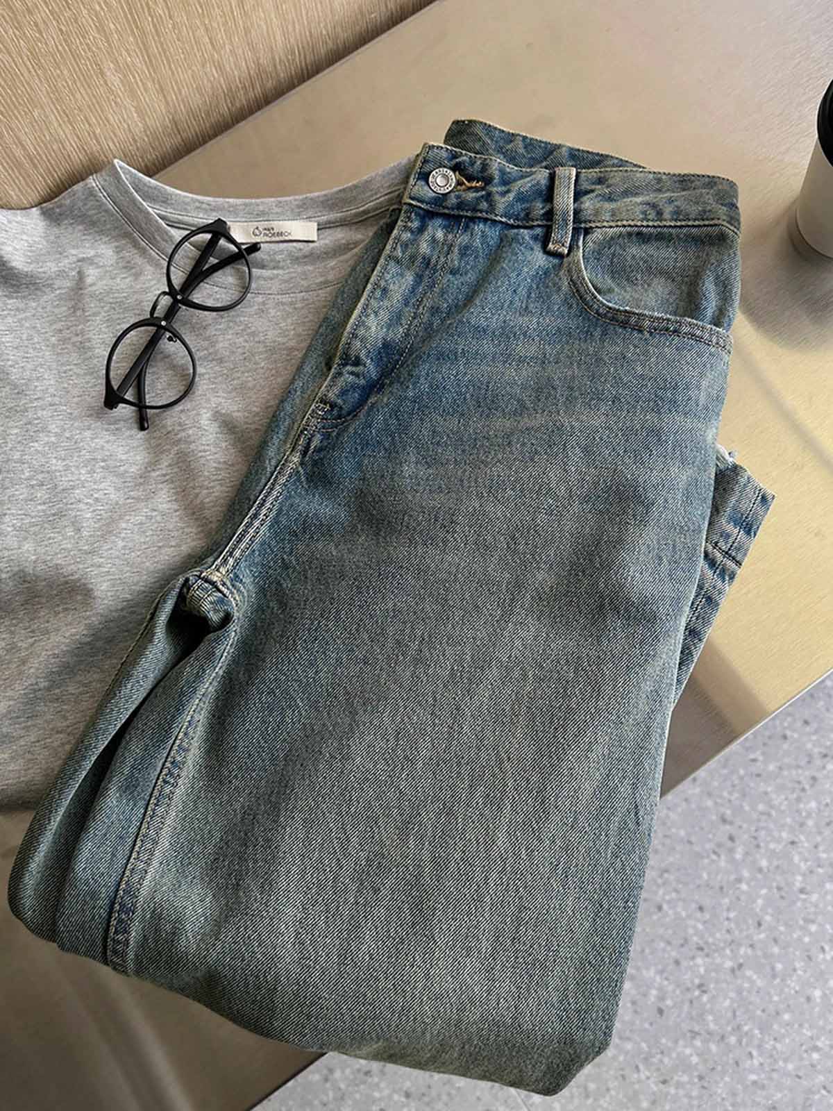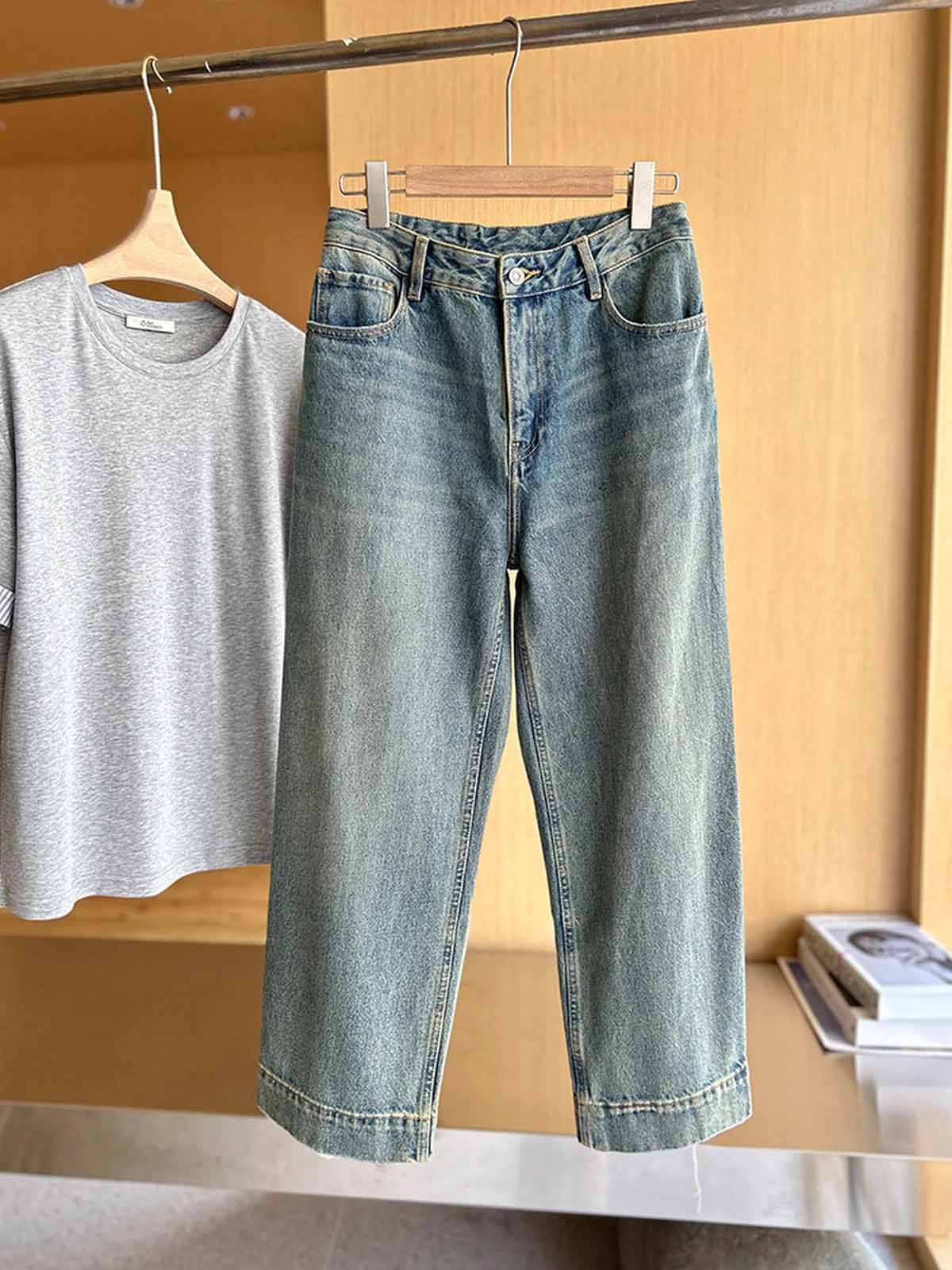 顺丰包邮洛诗琳35431早春新款纯棉做旧高腰直筒牛仔裤女016