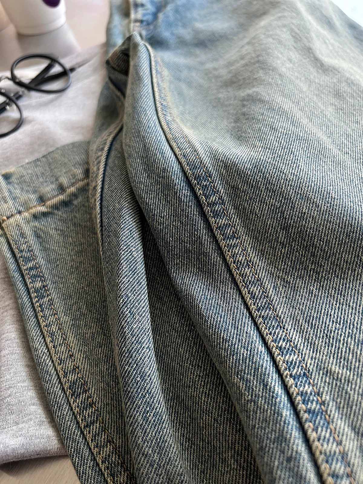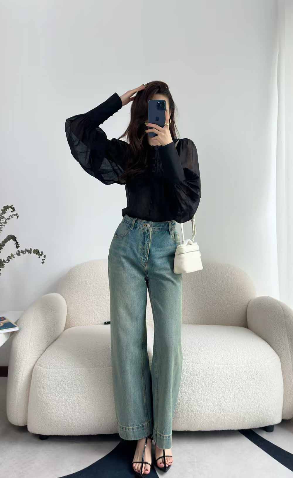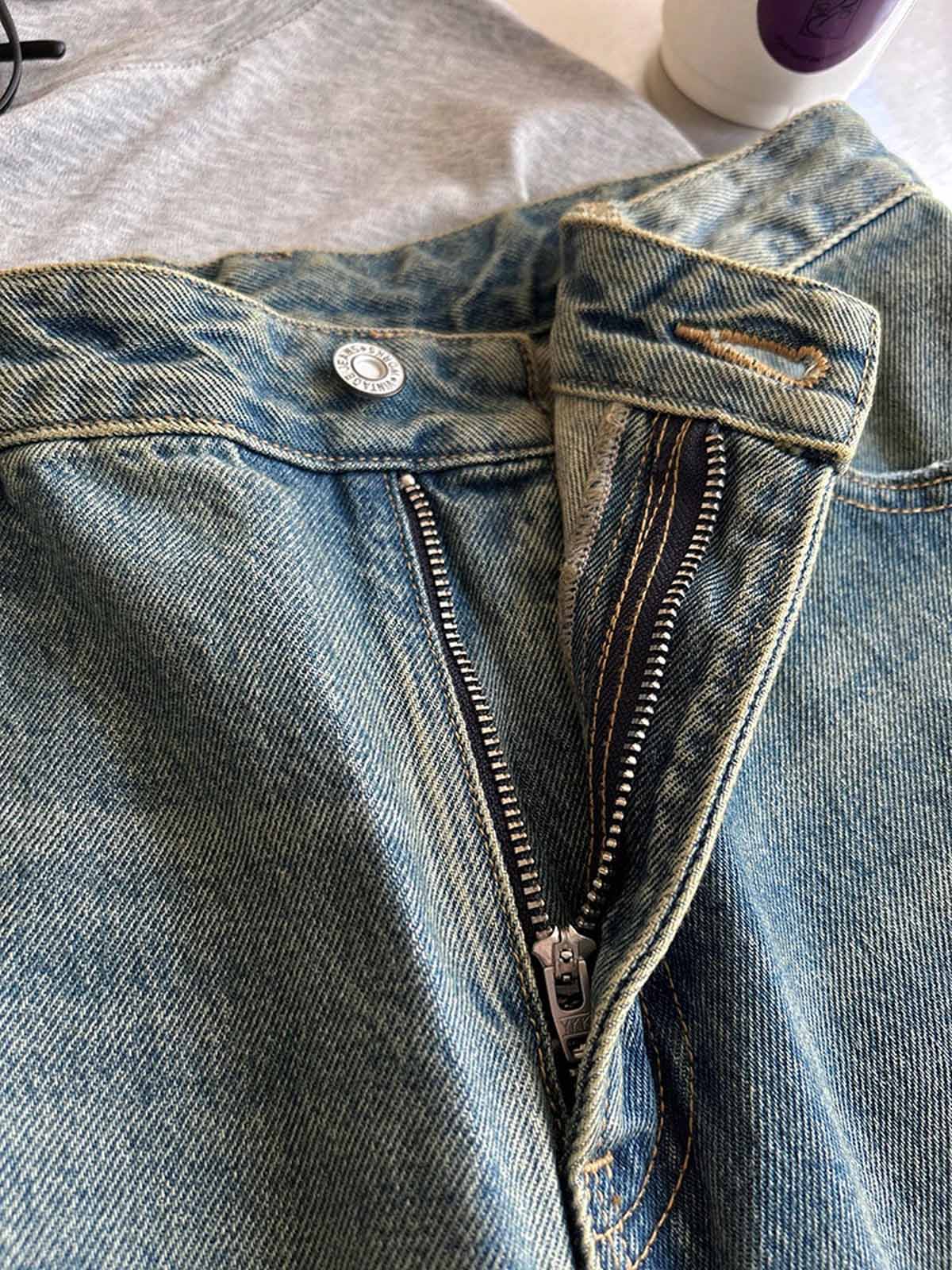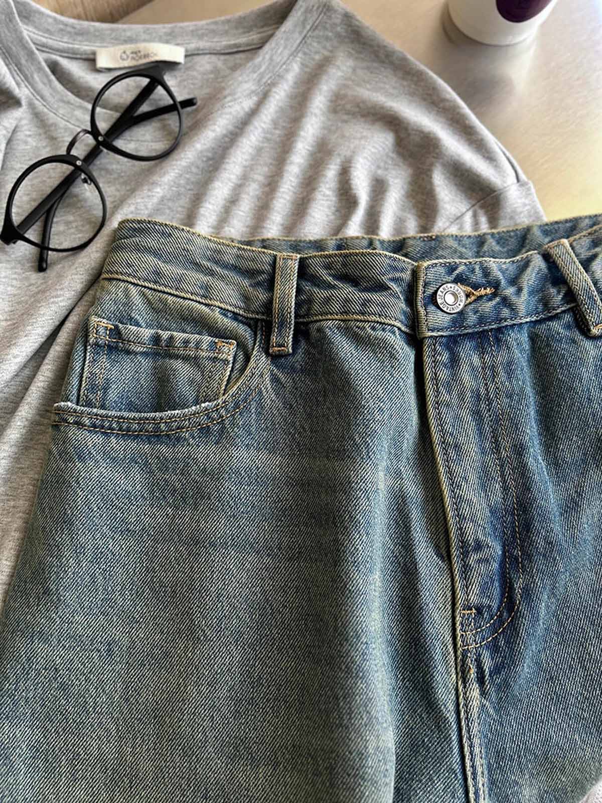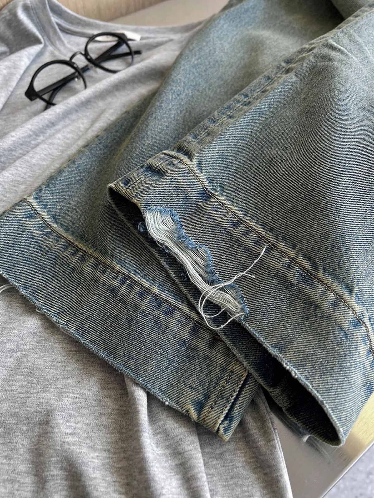 顺丰包邮洛诗琳35431早春新款纯棉做旧高腰直筒牛仔裤女016
