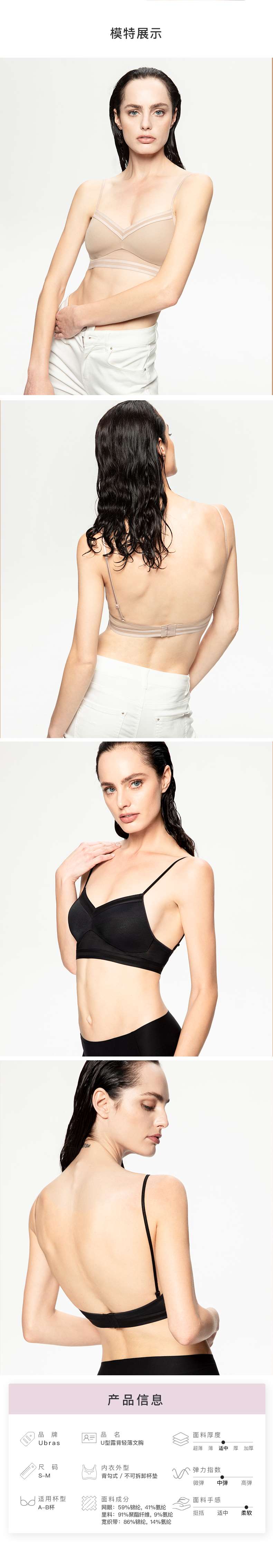 UbrasU型露背轻薄文胸网纱透气内衣女无钢圈小胸聚拢女士胸罩