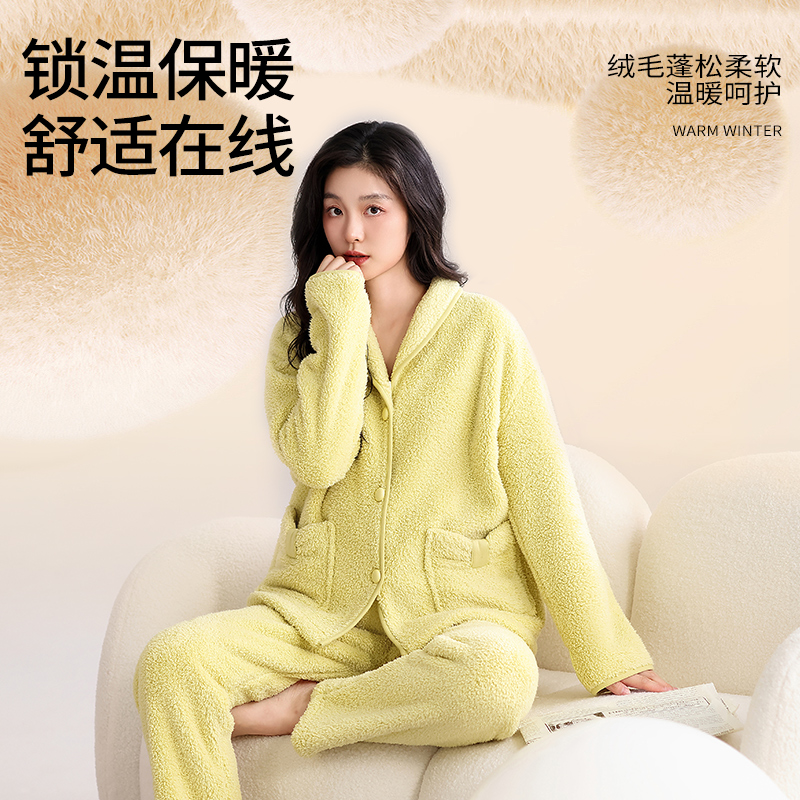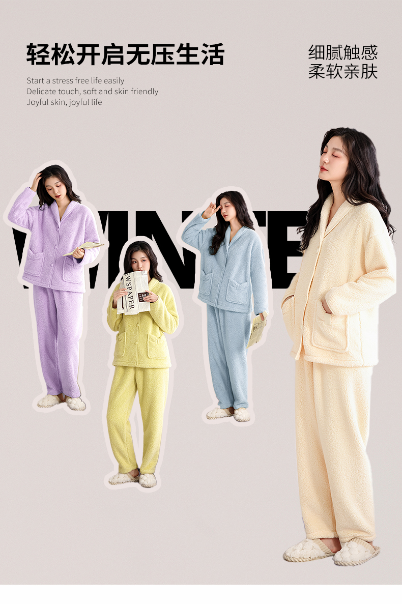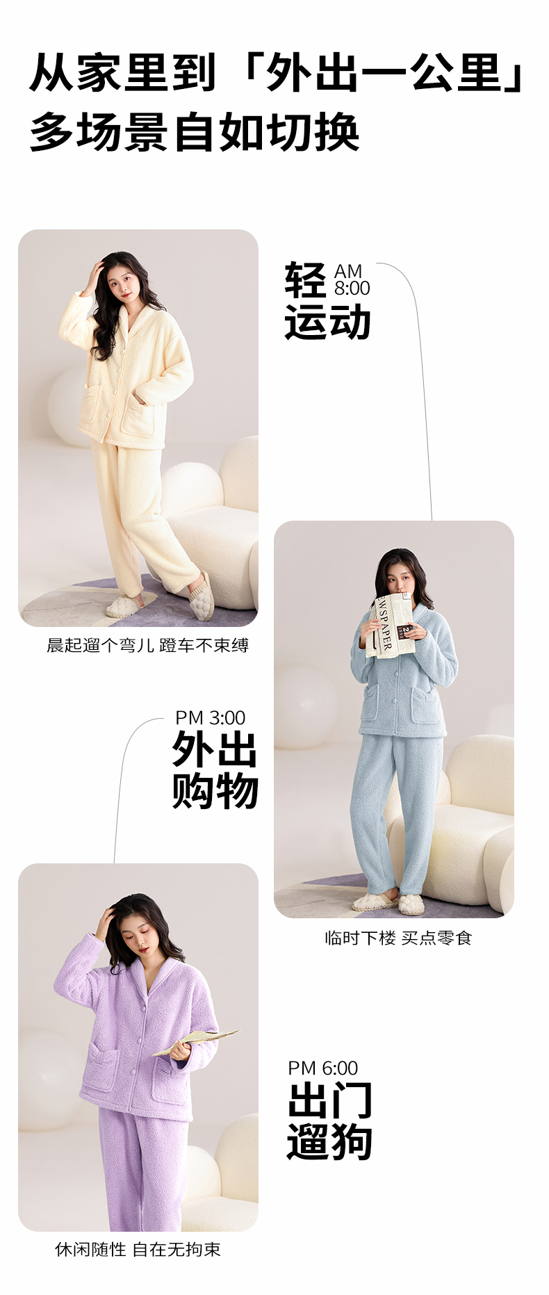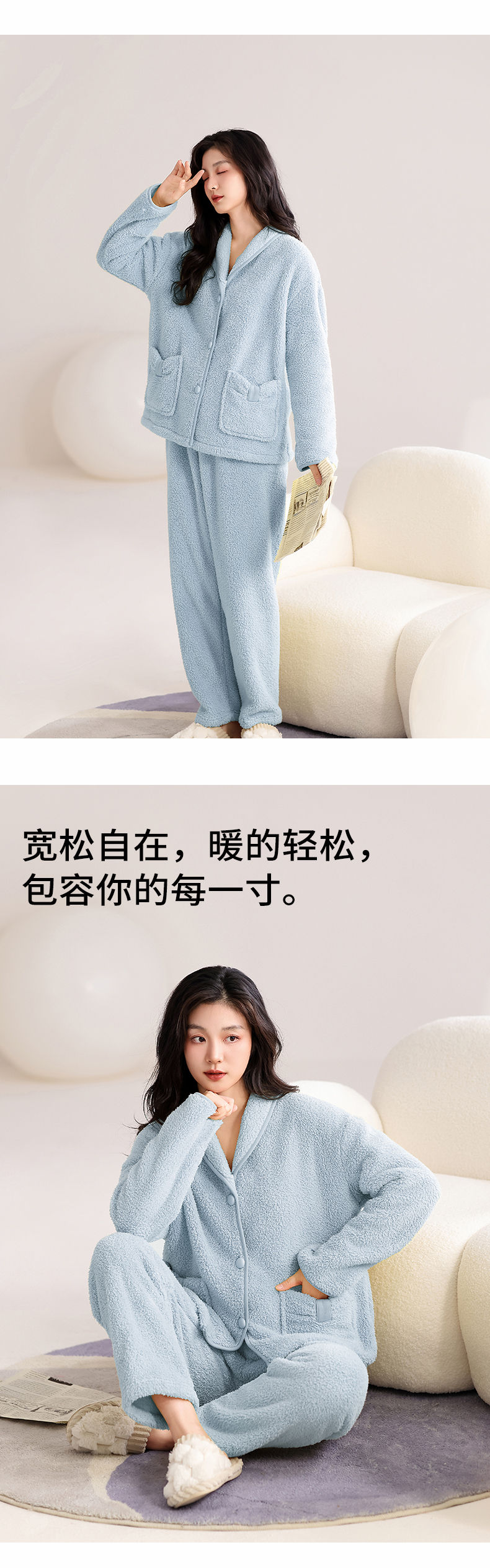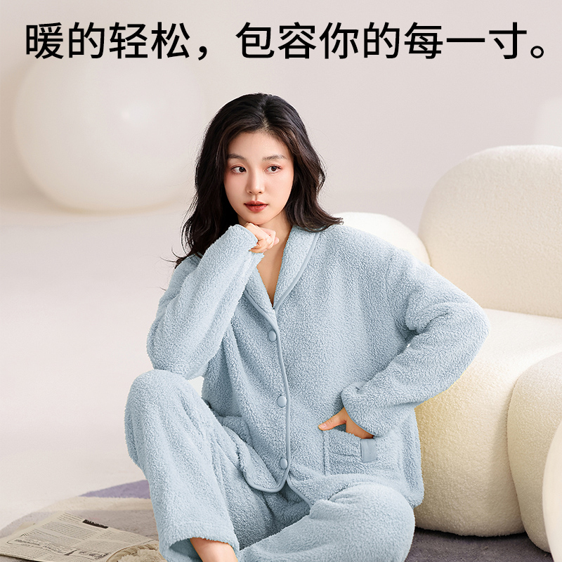 秋冬季2024年新款加厚加绒双面绒家居服家套装 内层仿羊羔绒蓄温保暖一件专门为寒冷天气设计的双面绒家居服(付款七天内发货)