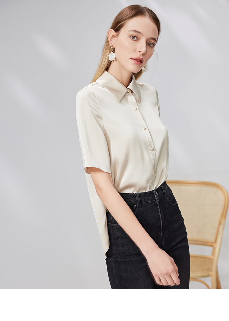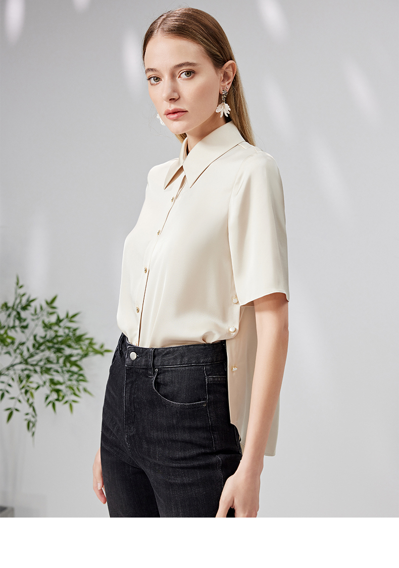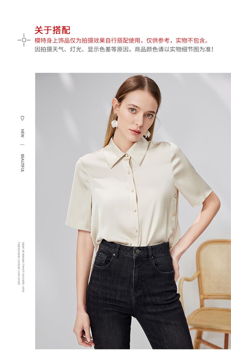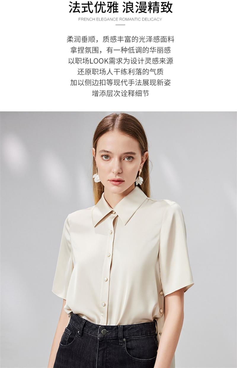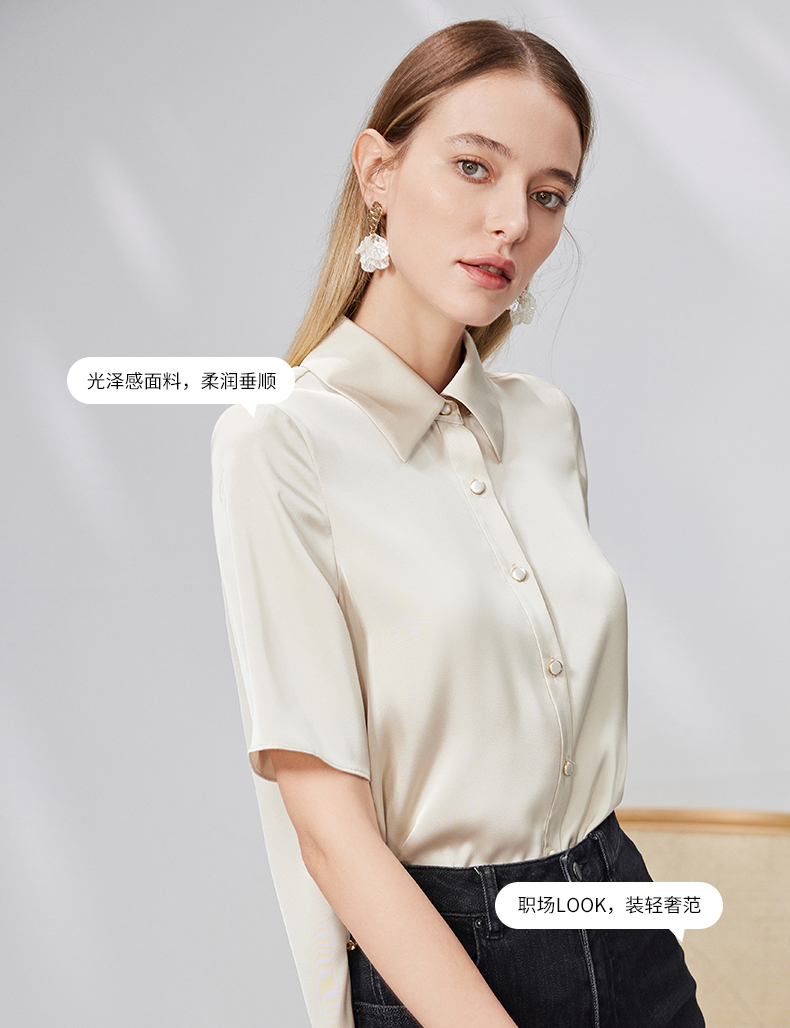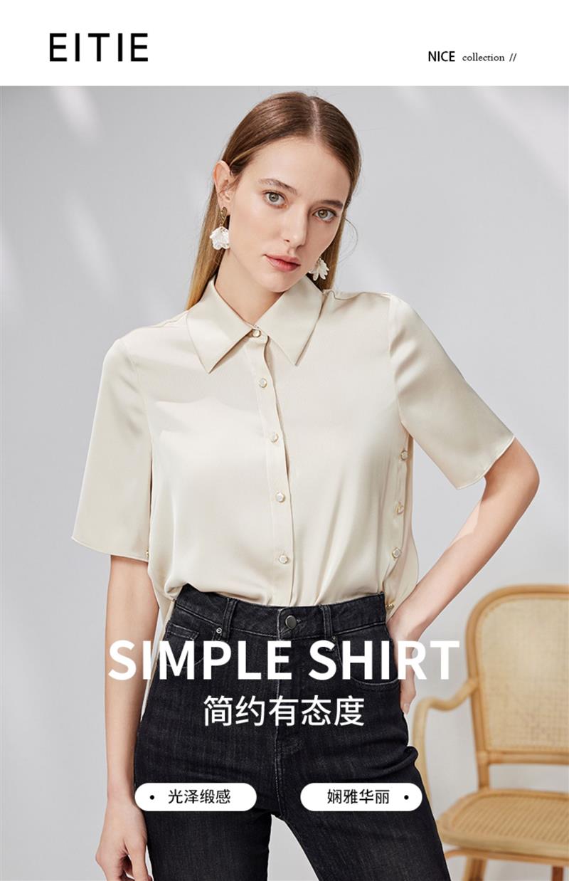 EITIE爱特爱宽松直筒显瘦通勤垂坠短袖衬衫简约百搭夏新款B13130
