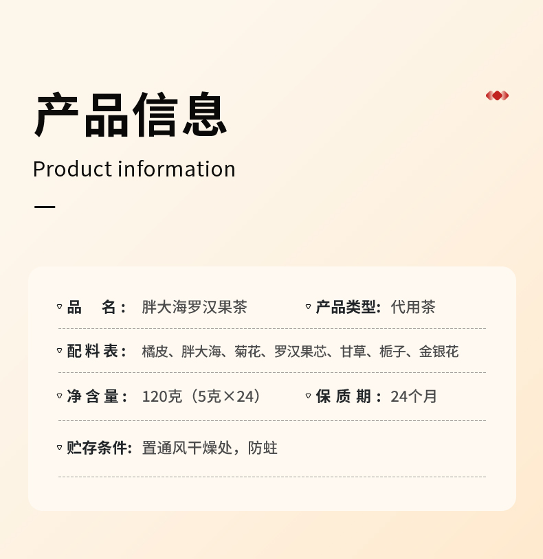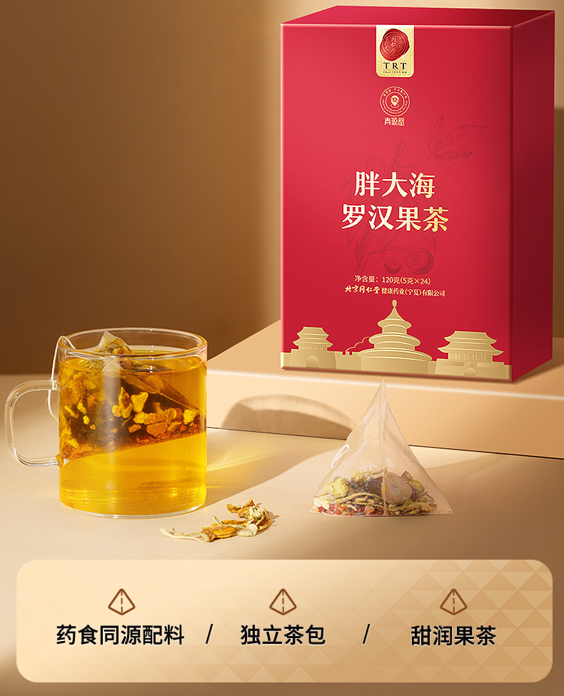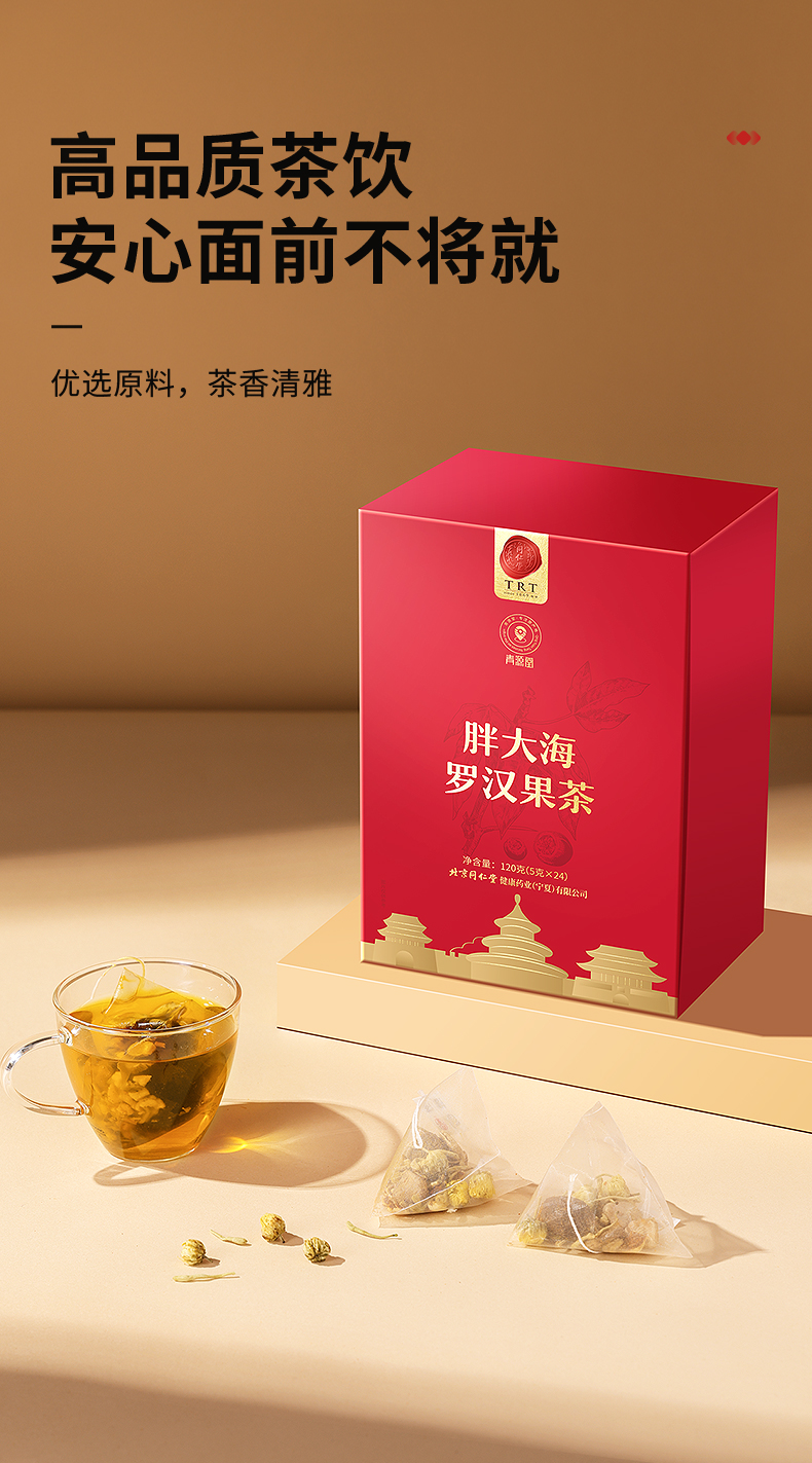 【正宗同仁堂品牌】北京同仁堂 青源堂 胖大海罗汉果茶120克 独立茶包 甜润果茶SY
