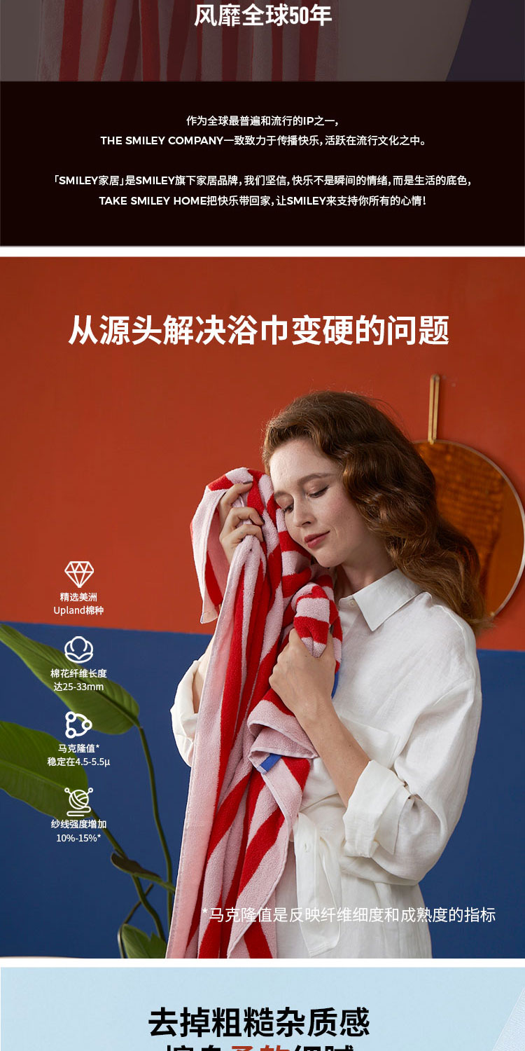 Smiley home 复古条纹浴巾美棉纯棉440g高克重【本商品不支持用券】